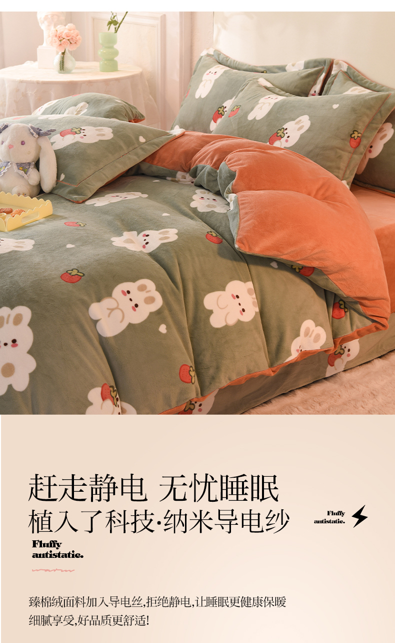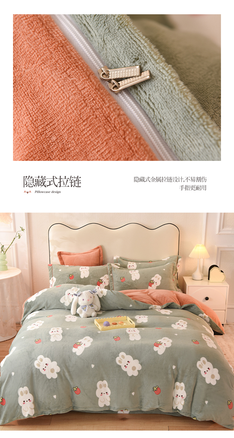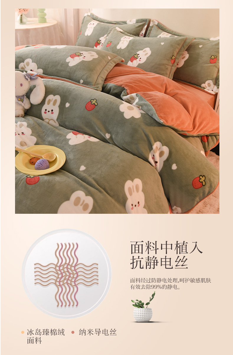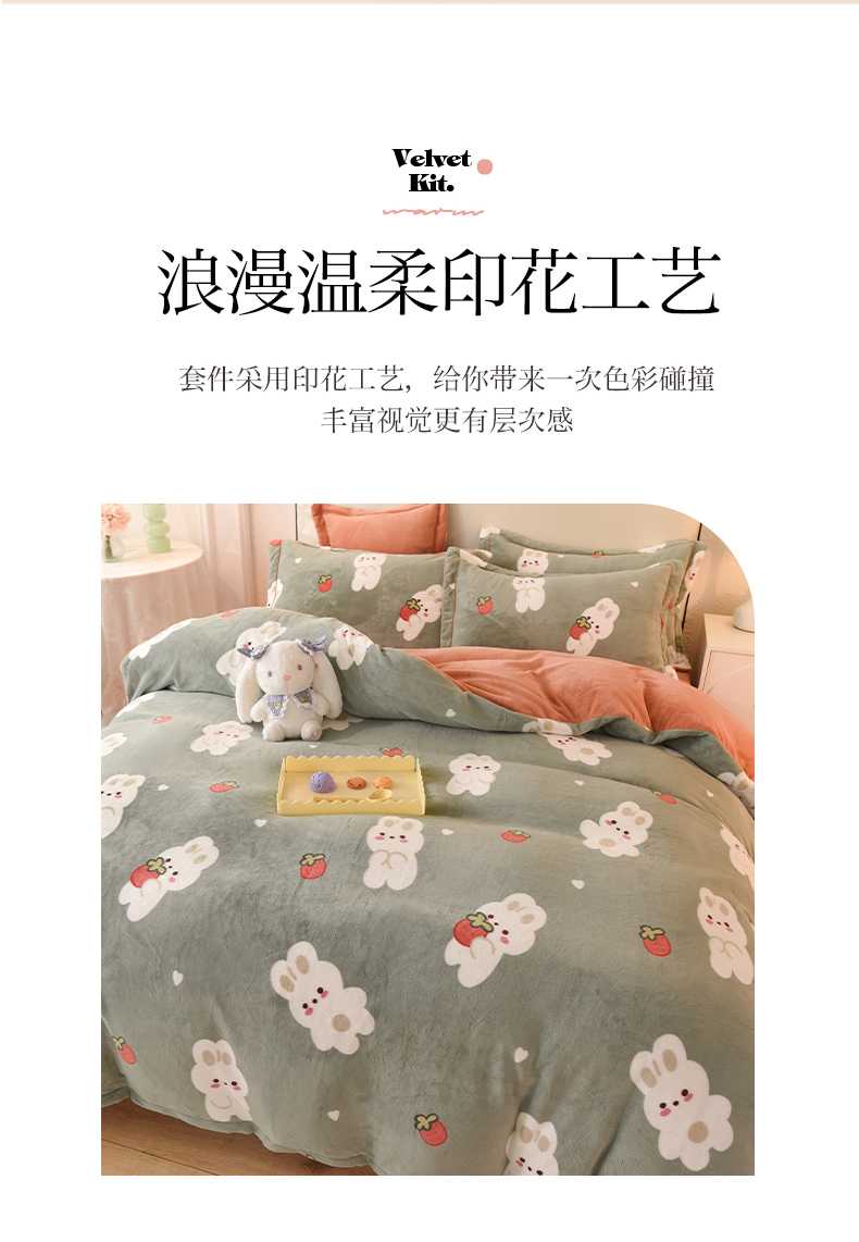商品名称:2025新款冰岛臻棉绒印花系列牛奶绒小号三件套 草莓兔-绿