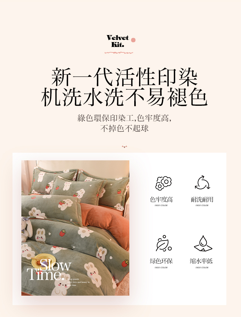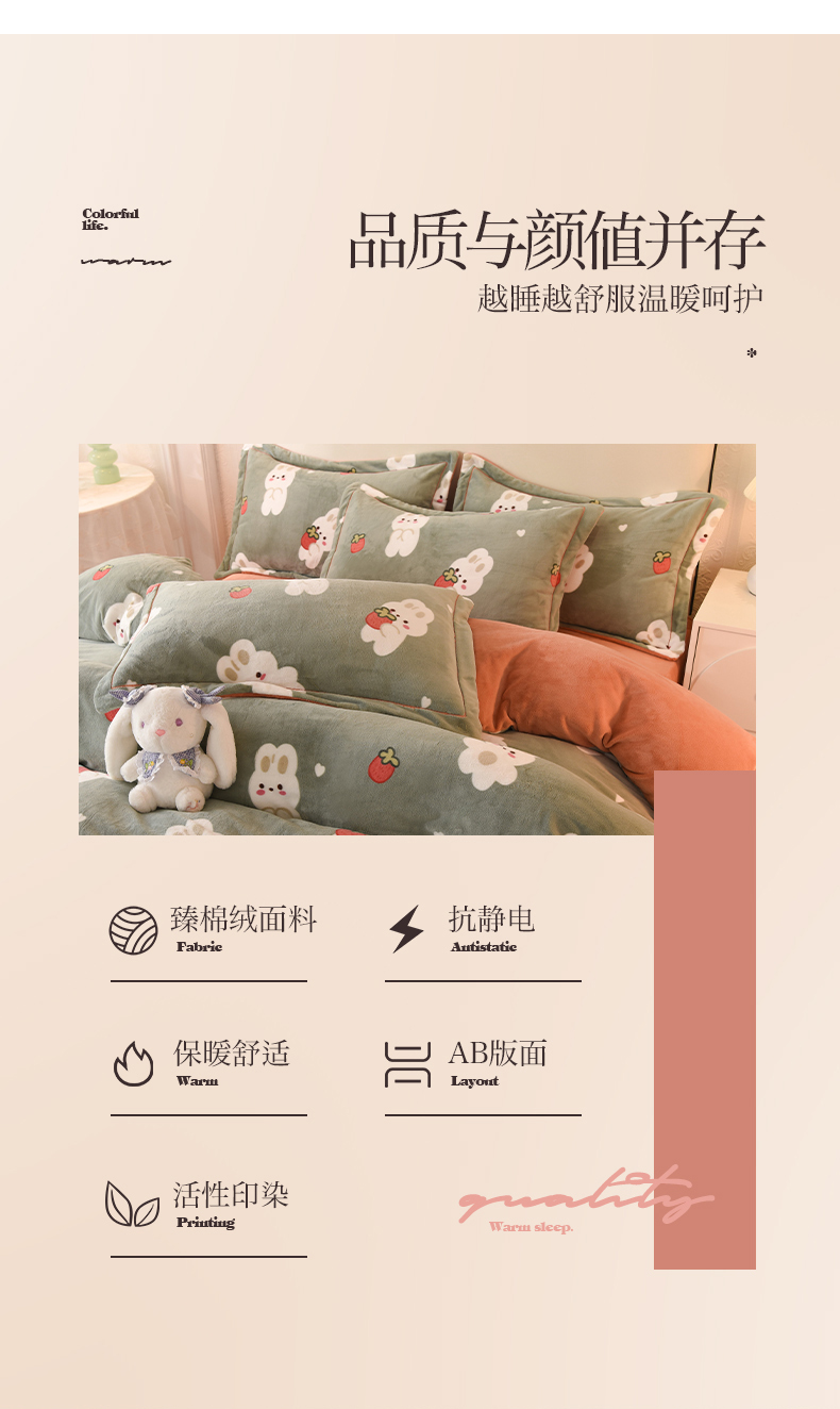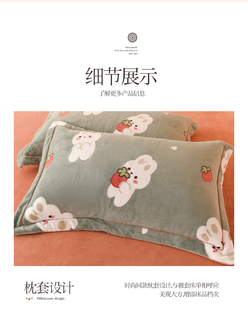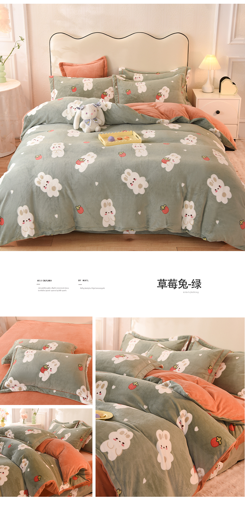 商品名称:2025新款冰岛臻棉绒印花系列牛奶绒小号三件套 草莓兔-绿