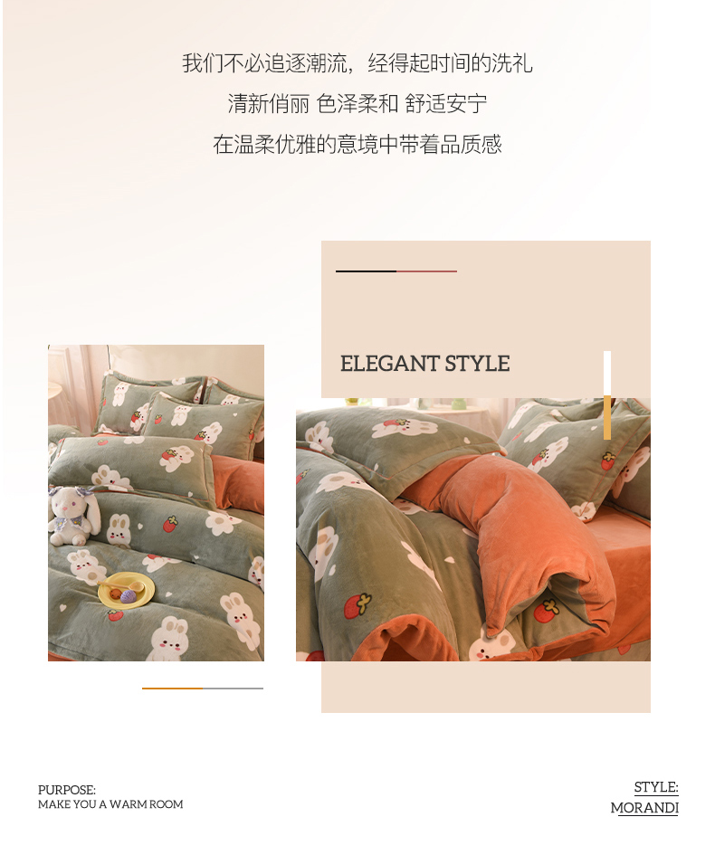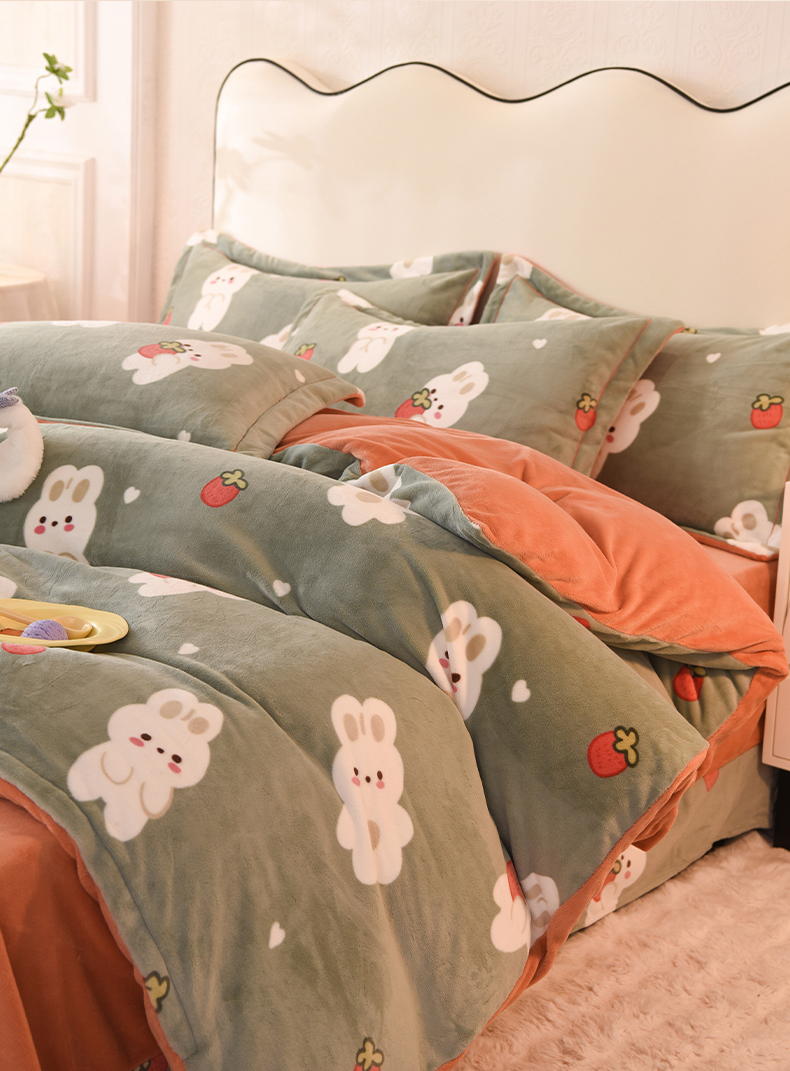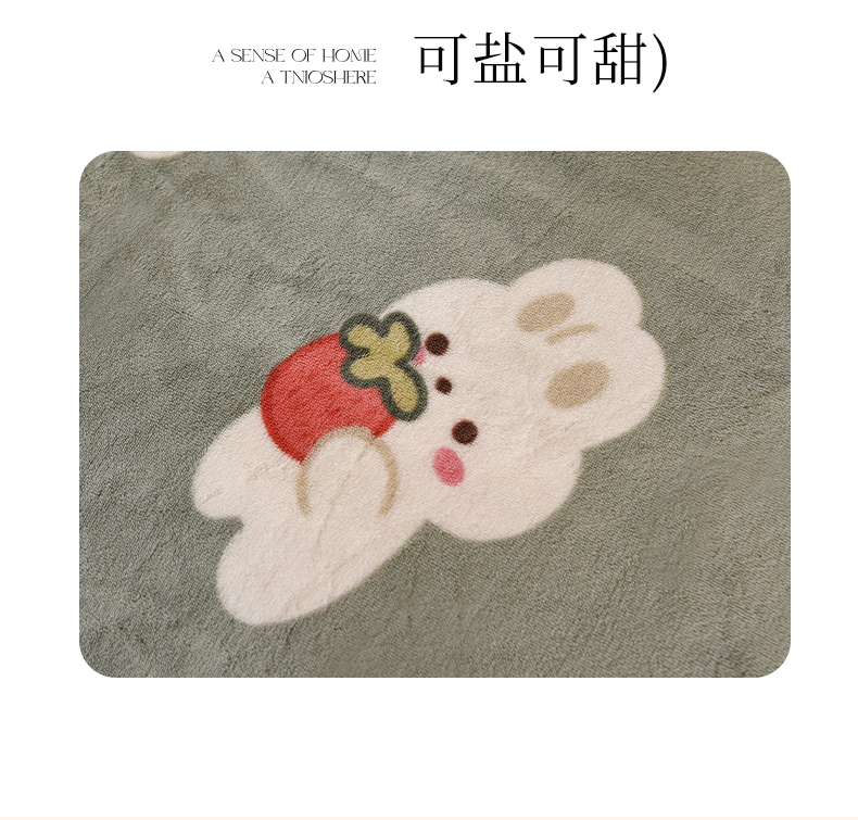 2025新款冰岛臻棉绒印花系列牛奶绒小号三件套 草莓兔-绿