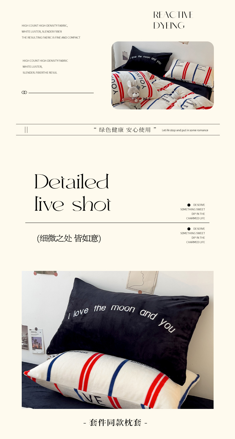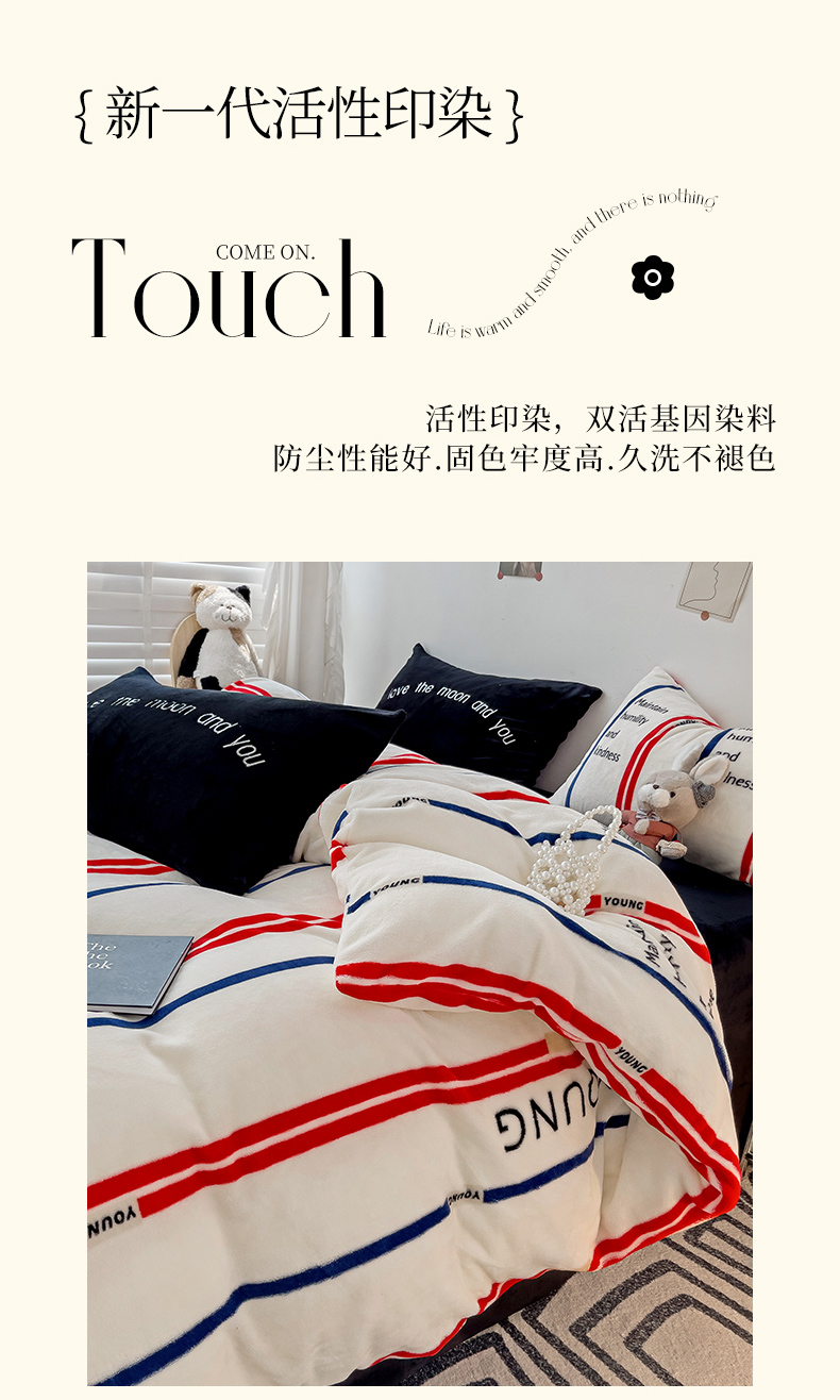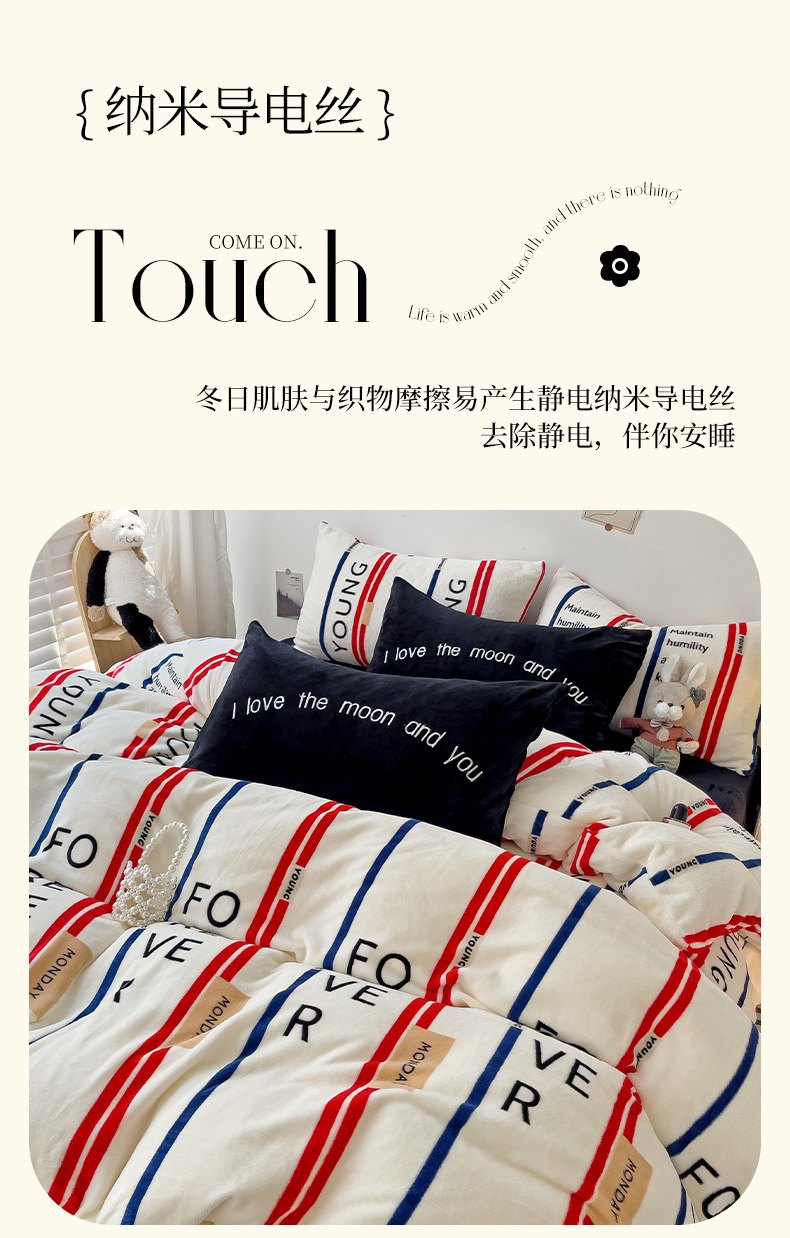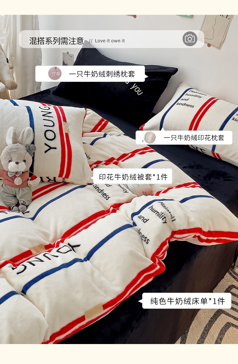 商品名称:山茶家纺 2023新款高克重牛奶绒印花四件套 条纹 红