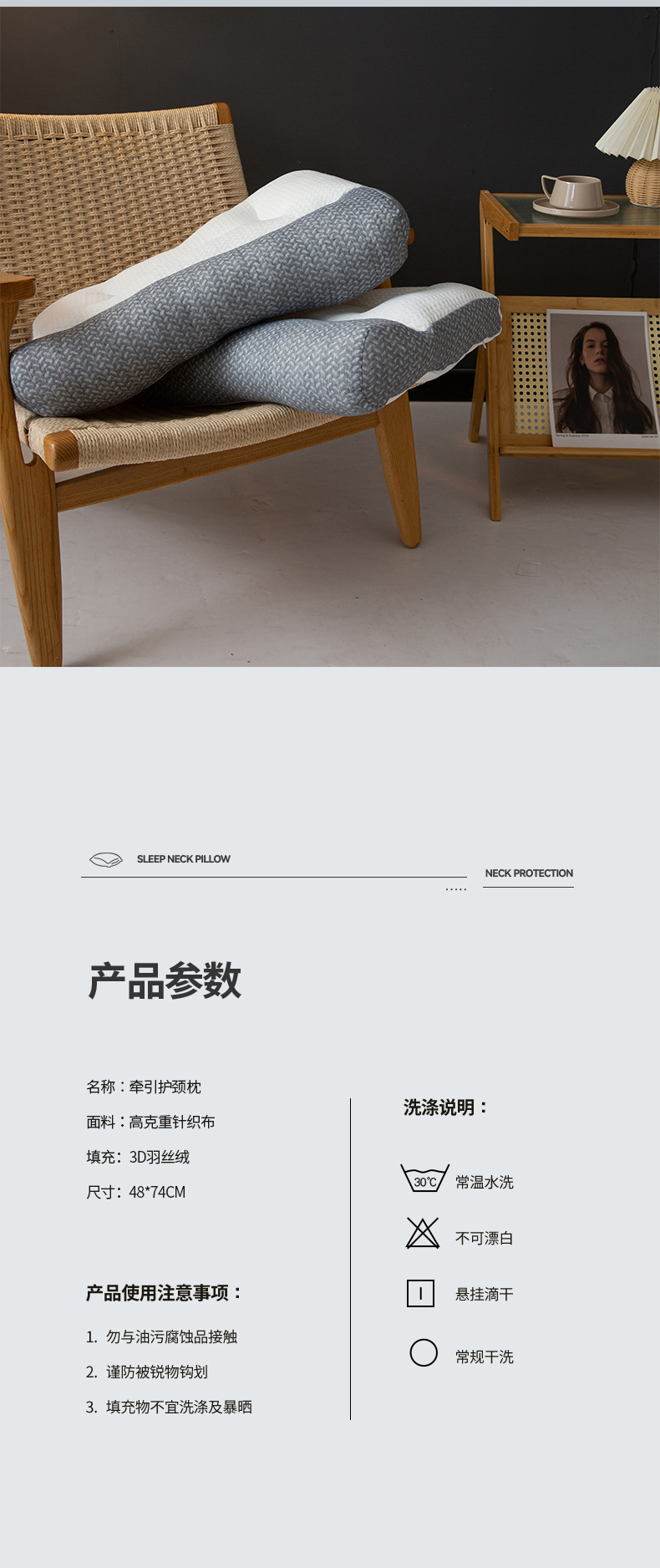 灰色一只低枕900克