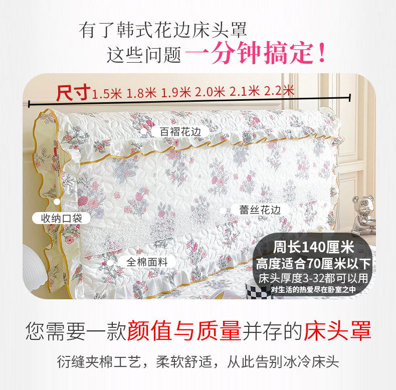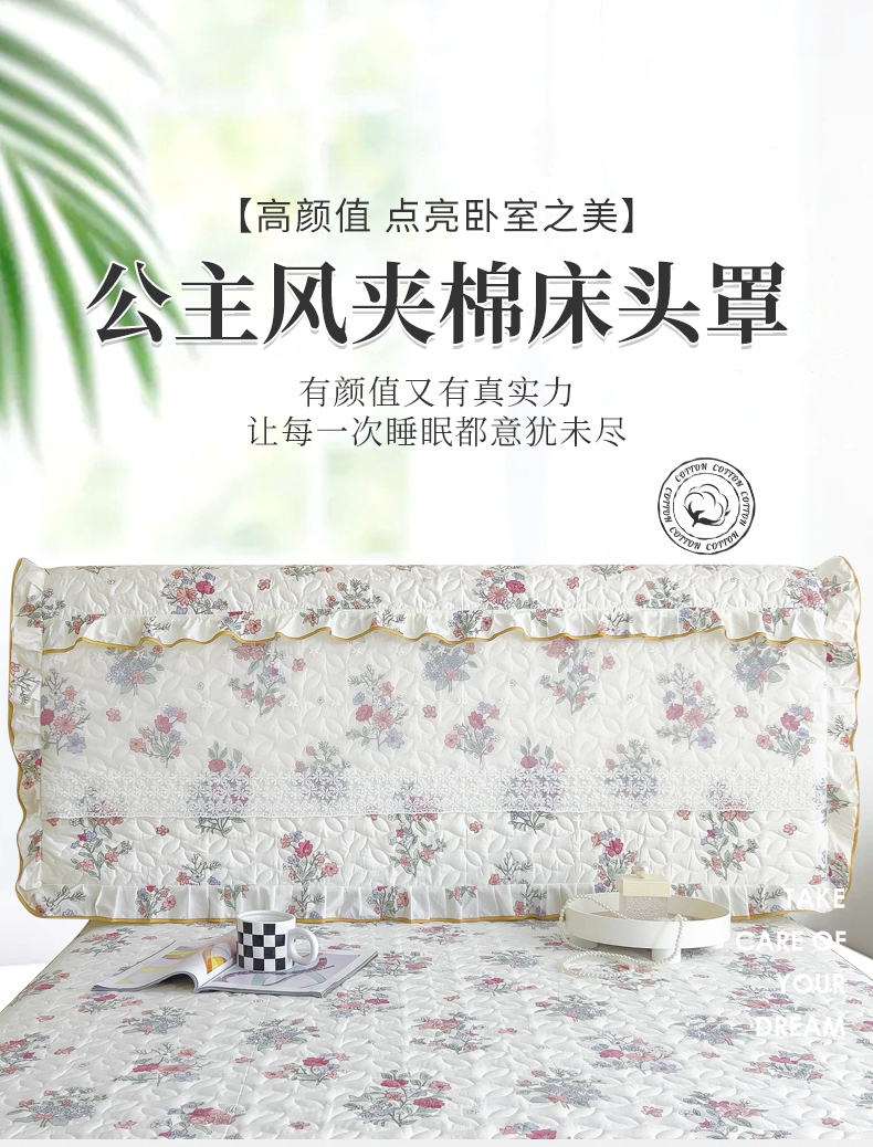 商品名称:十个点 2024新款印花夹棉蕾丝床头罩-玲珑 诗雨