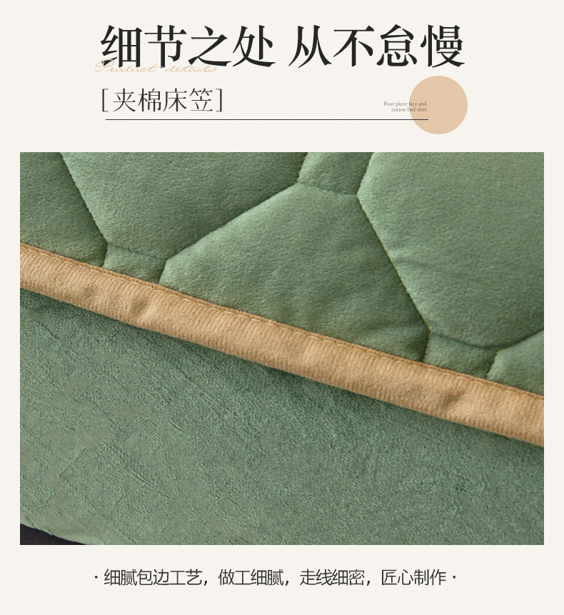 (总)屹成家纺2025新款水晶绒夹棉绗缝床裙四件套(塞纳河畔)四件套起售价不低于230元,大红,豆沙,翡翠绿,粉玉,橄榄绿,蔚蓝,银灰