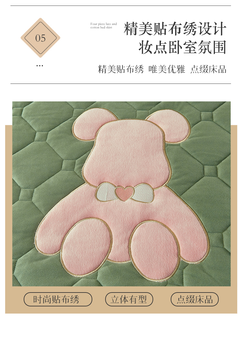 商品名称:屹成 2024新款亲肤水晶绒夹棉单床笠-小熊款 橄榄緑