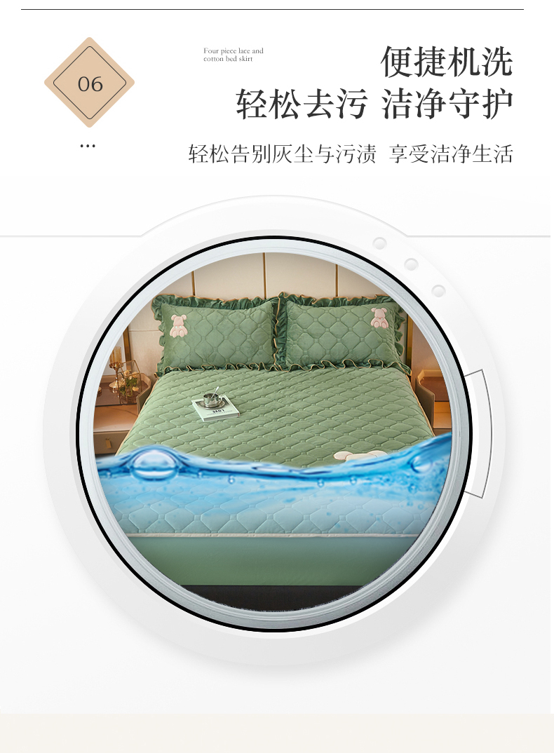 (总)屹成 2024新款水洗棉蕾丝四季款床笠床裙单品套件-床裙三件套,粉玉,豆沙,粉红,大红,橄榄绿,卡其,玫红,浅紫,水绿,天蓝,银灰