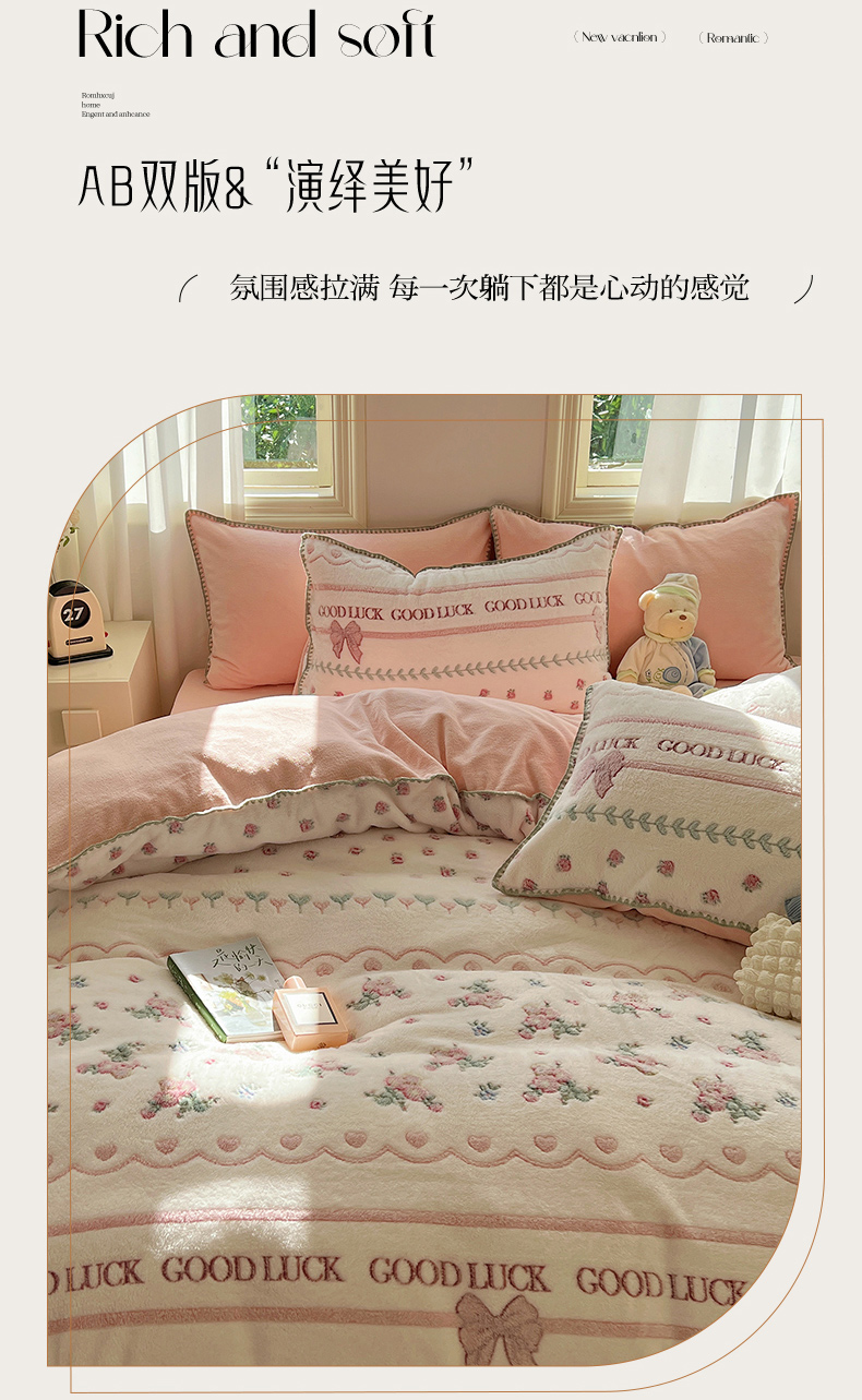 (总)三朵家纺 2023新款高克重雪花绒绒混搭系列四件套