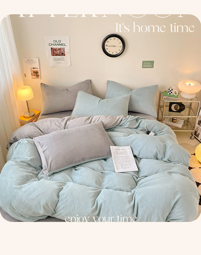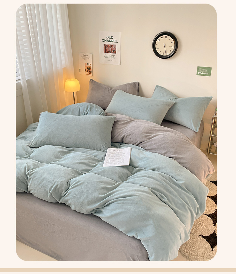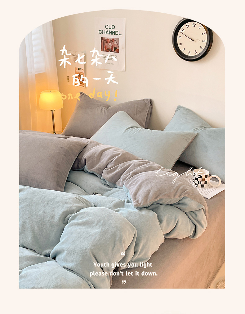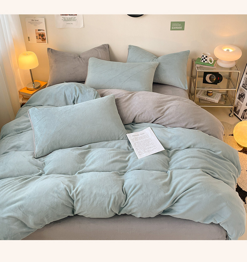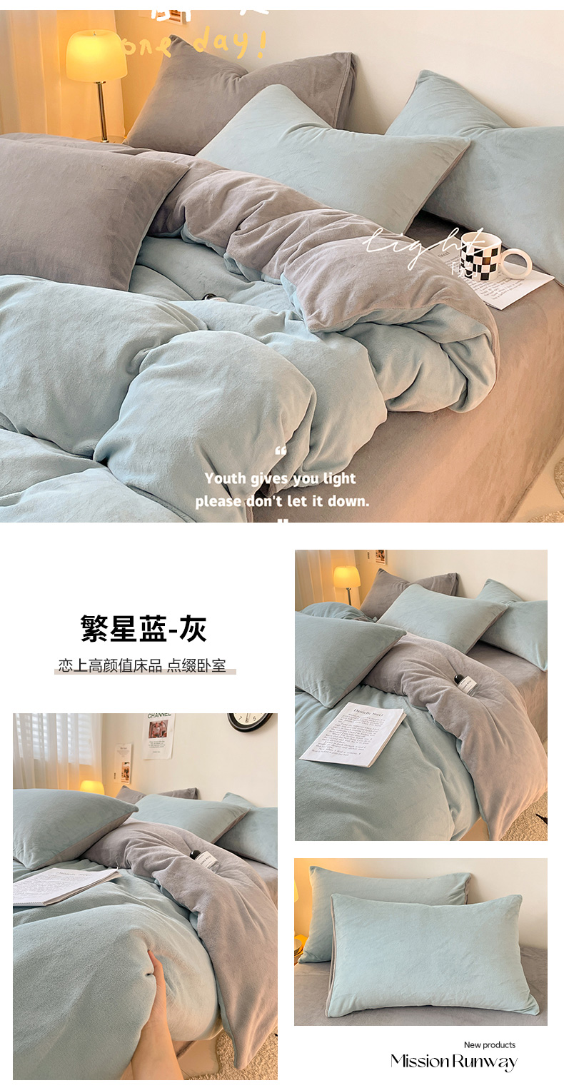 当前位置: 91家纺网 > 商品网购 > 床品套件 > 四件套 > 牛奶绒四件套 > 眠帛家居 2023新款加厚牛奶绒双拼四件套 繁星蓝-灰