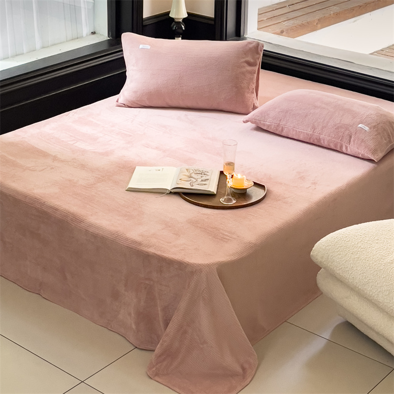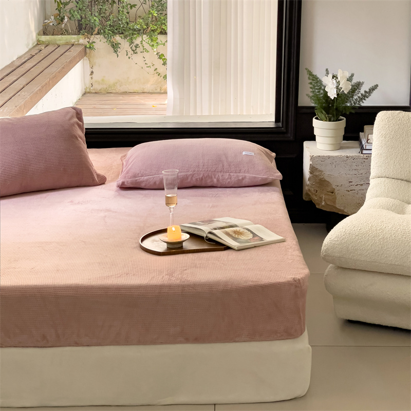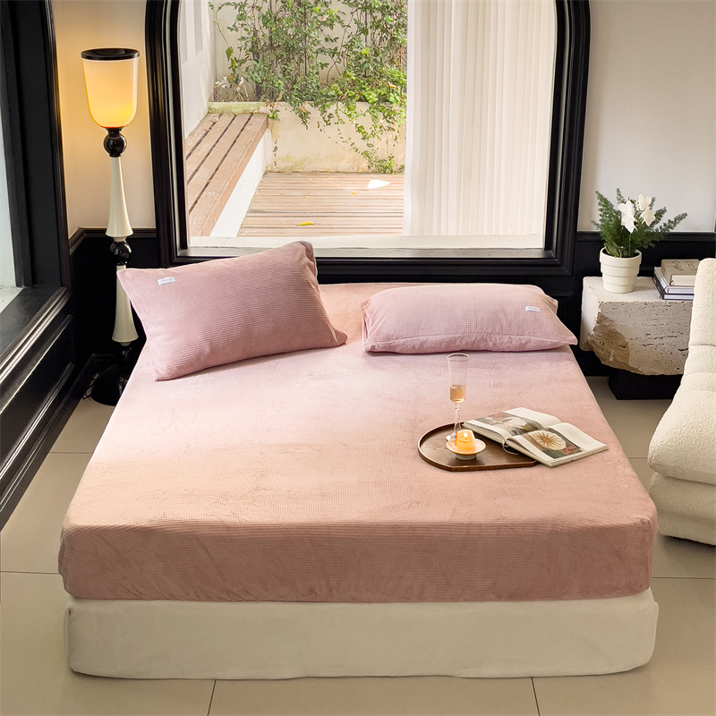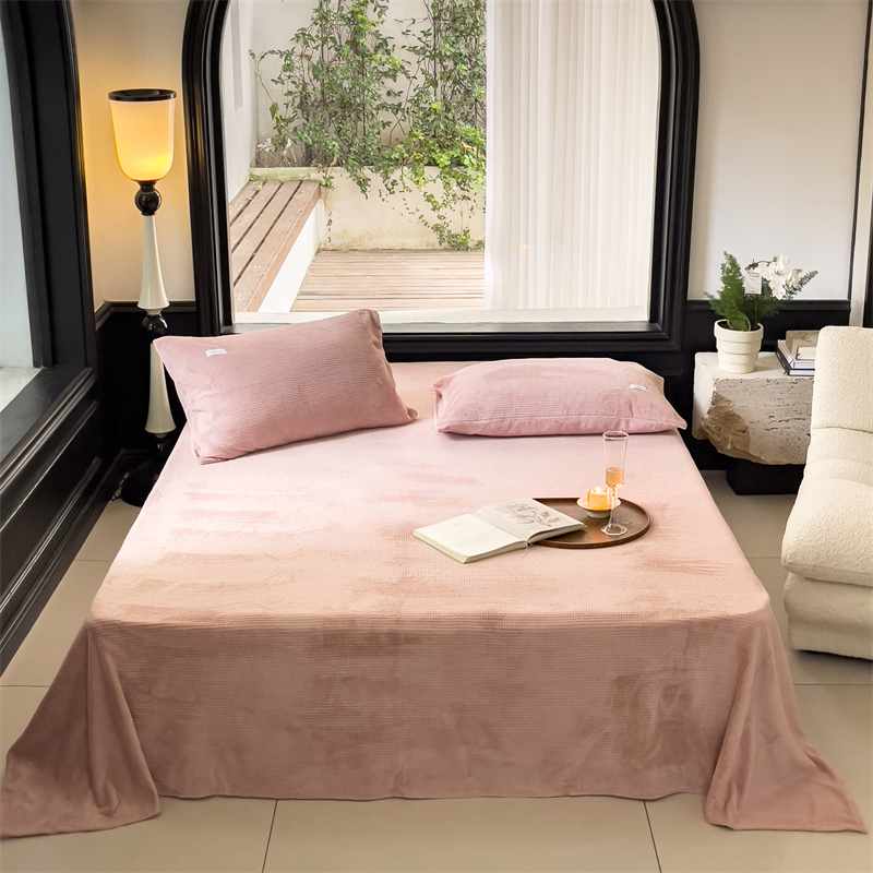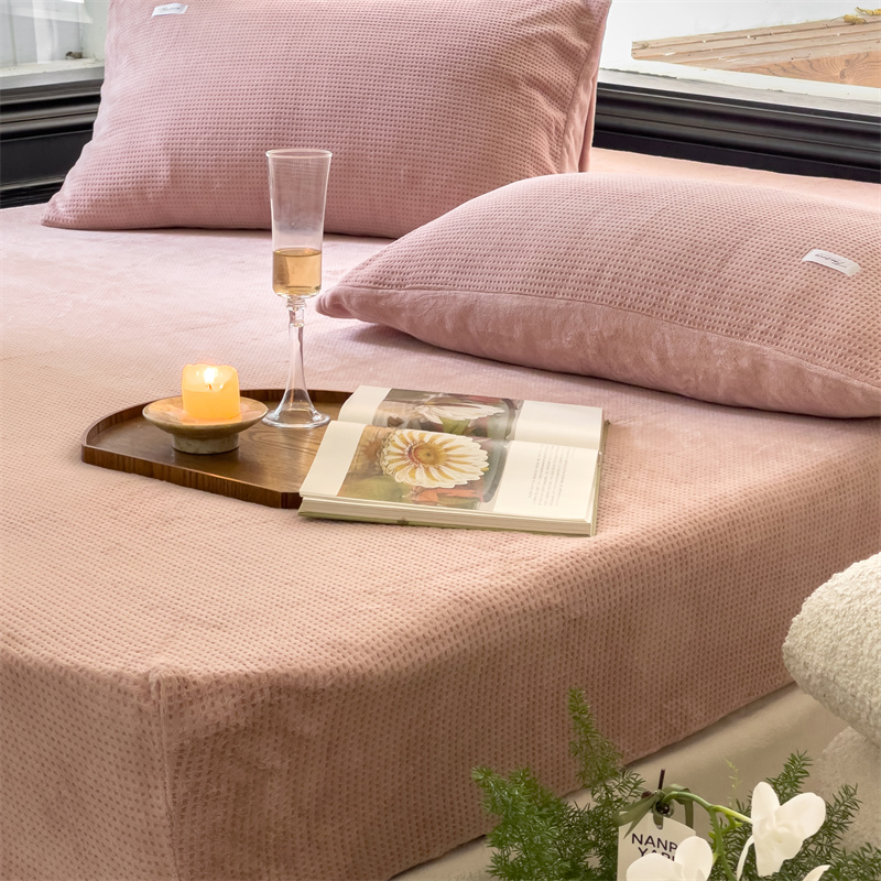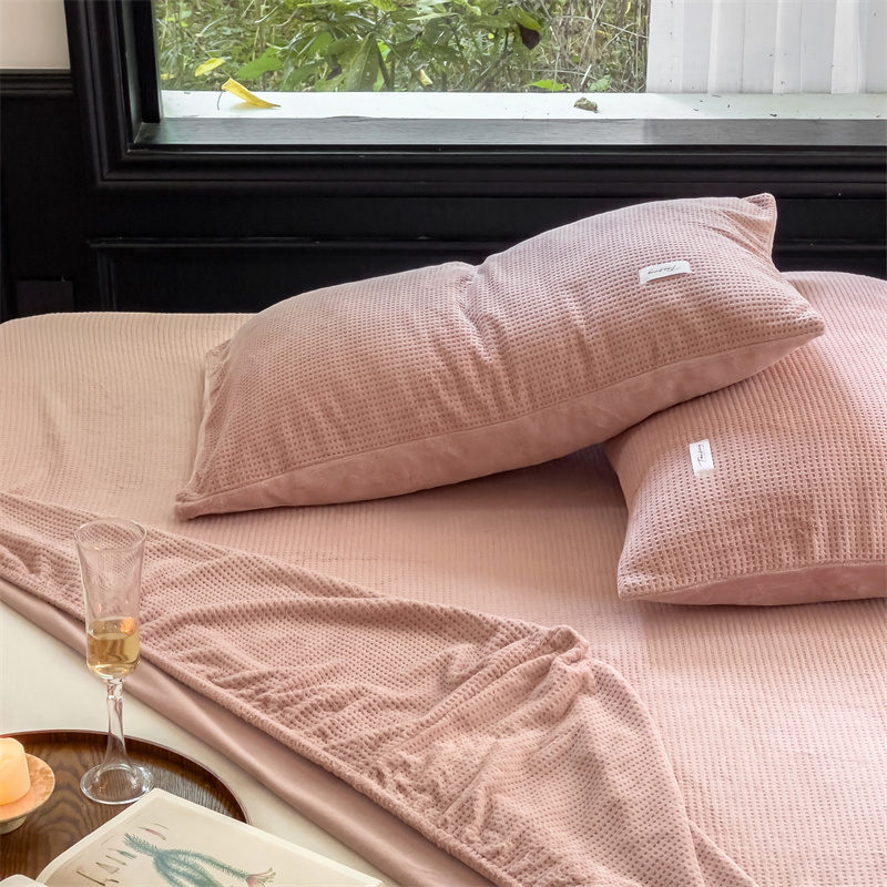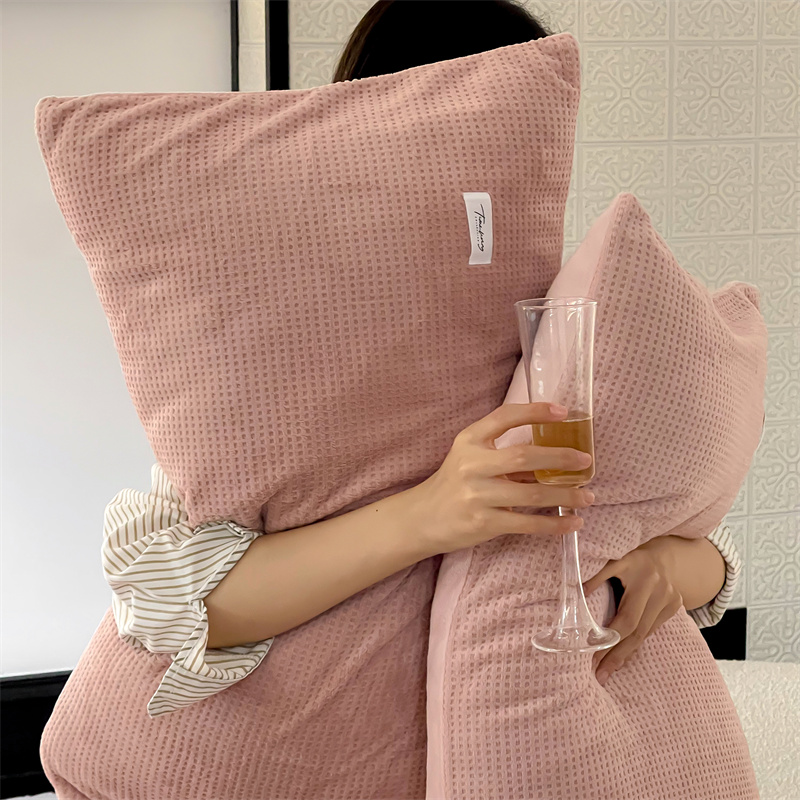 时光里 2023新款全消光华夫格绒枕套 浪漫粉