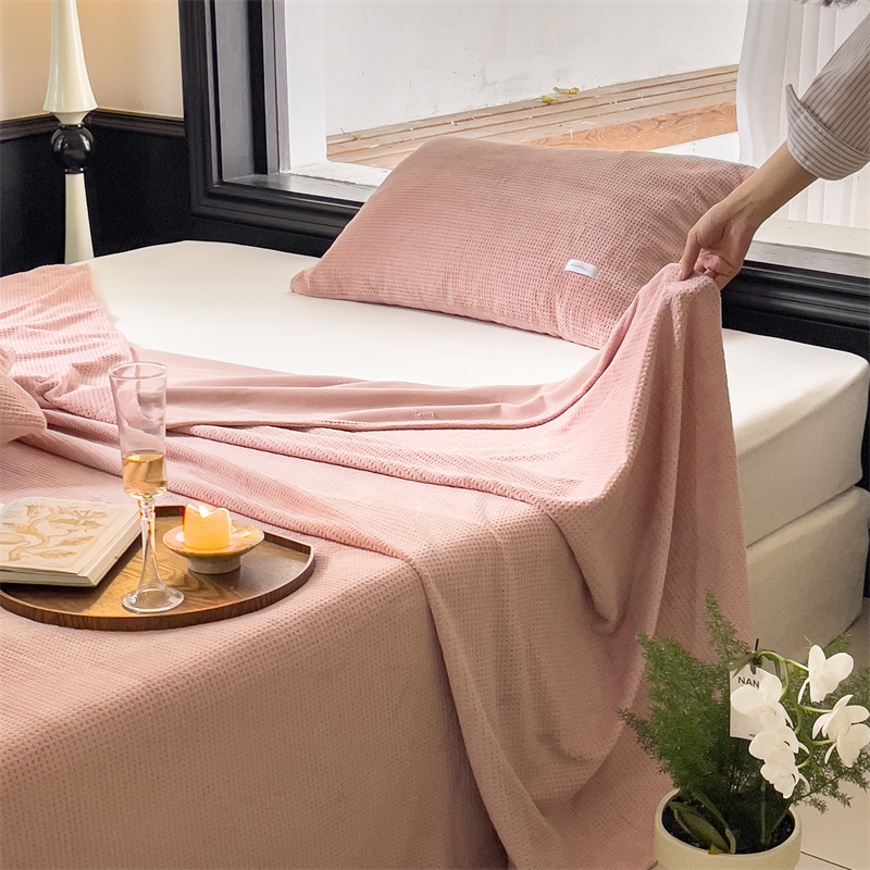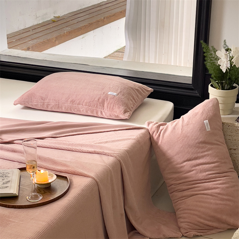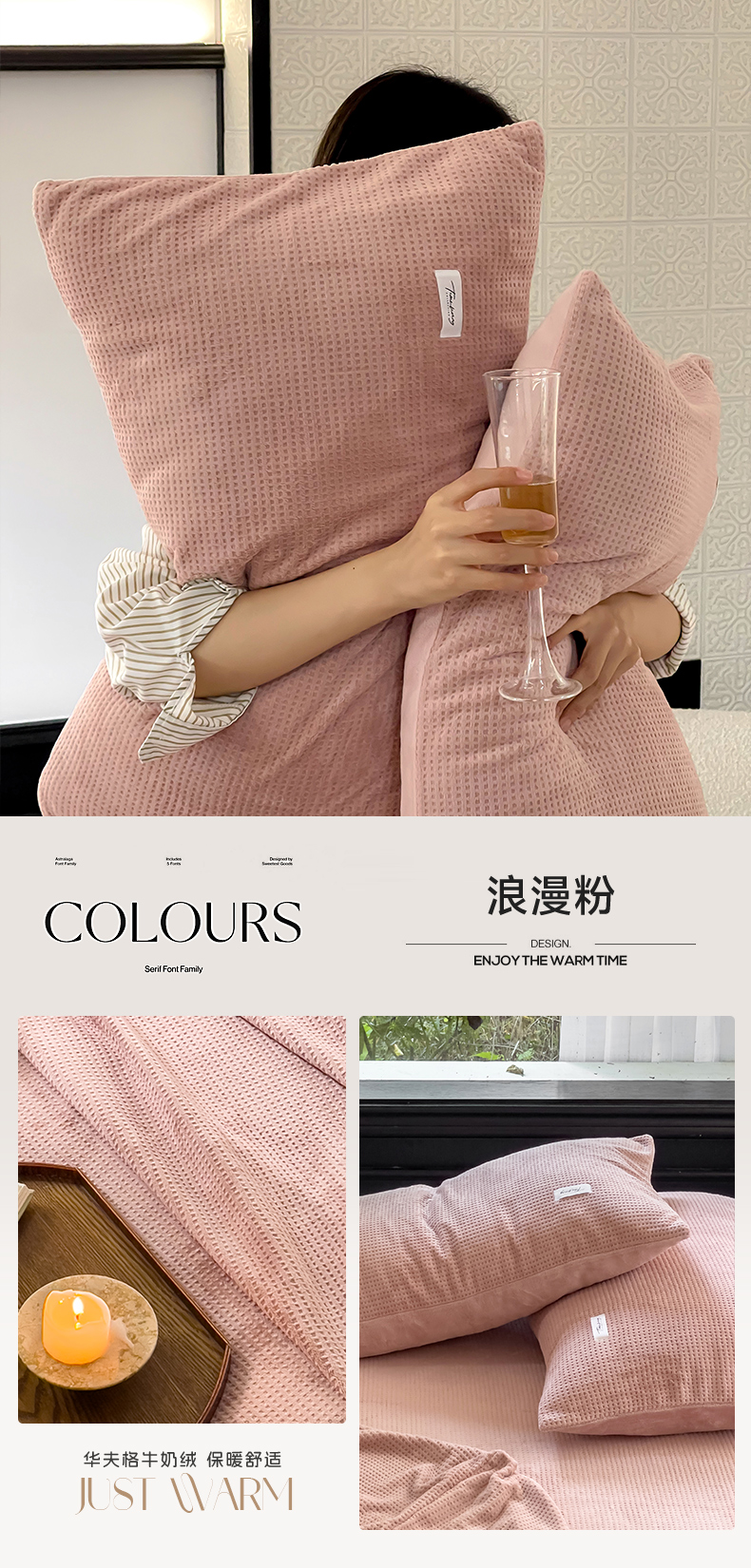 商品名称:时光里 2023新款全消光华夫格绒枕套 浪漫粉