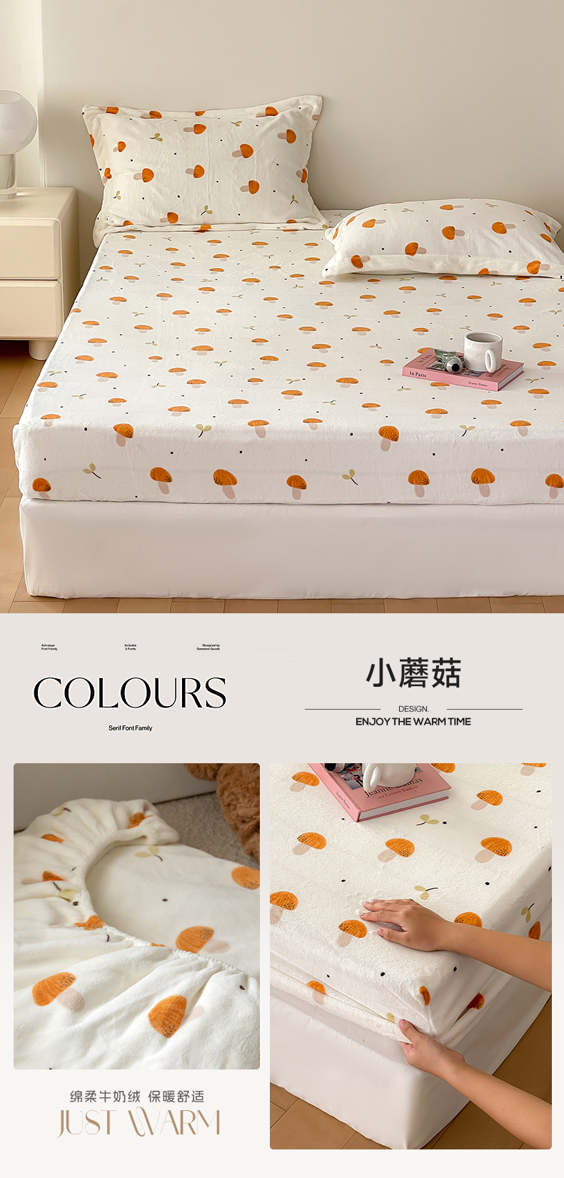 商品名称:时光里 2023新款全消光加厚牛奶绒印花单品单床笠 小蘑菇