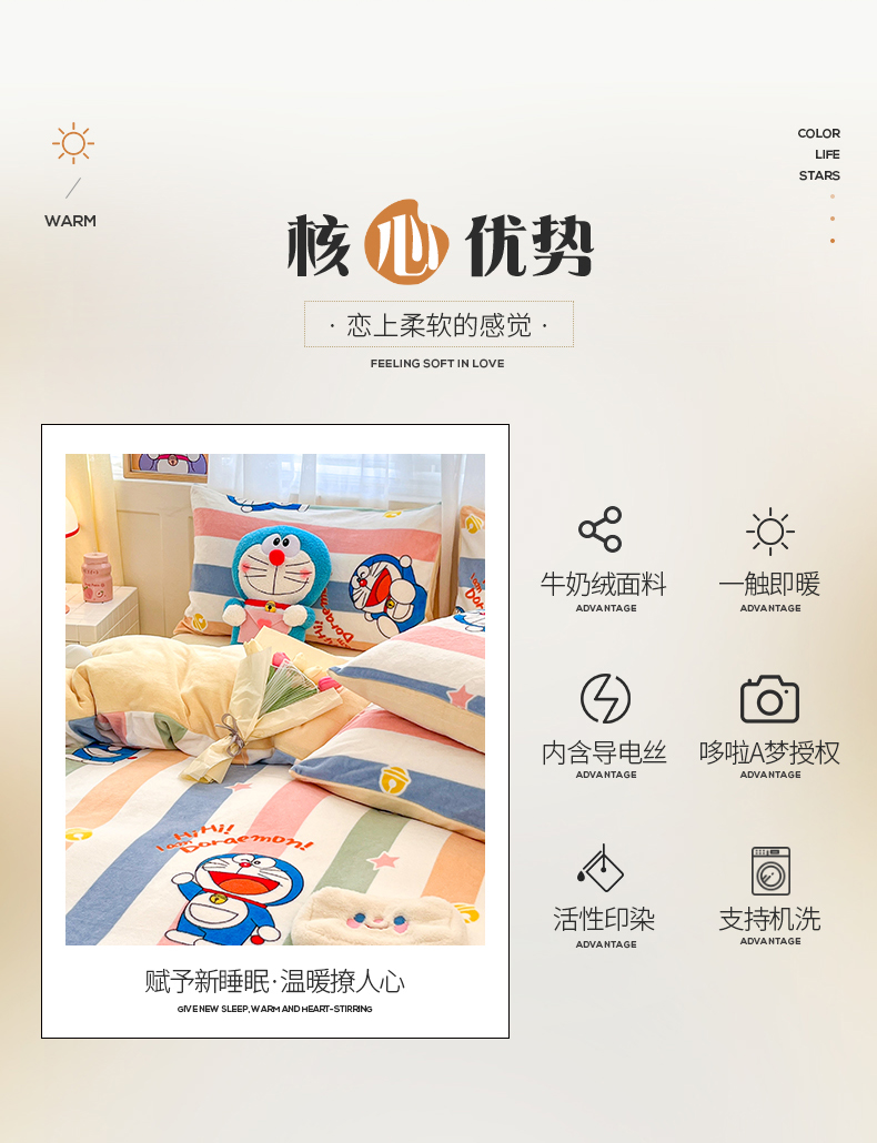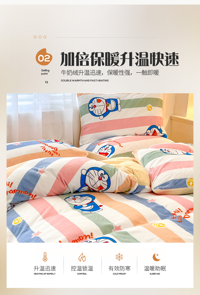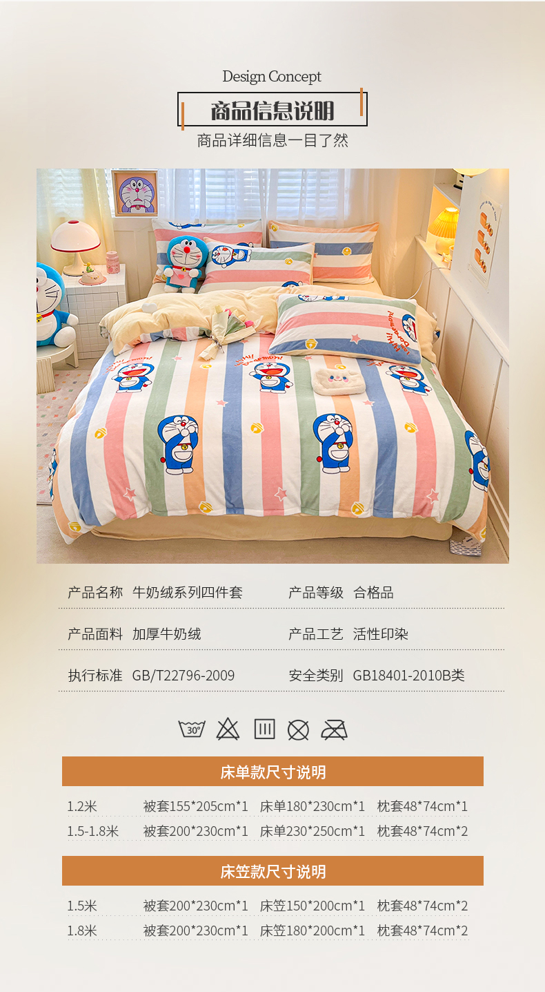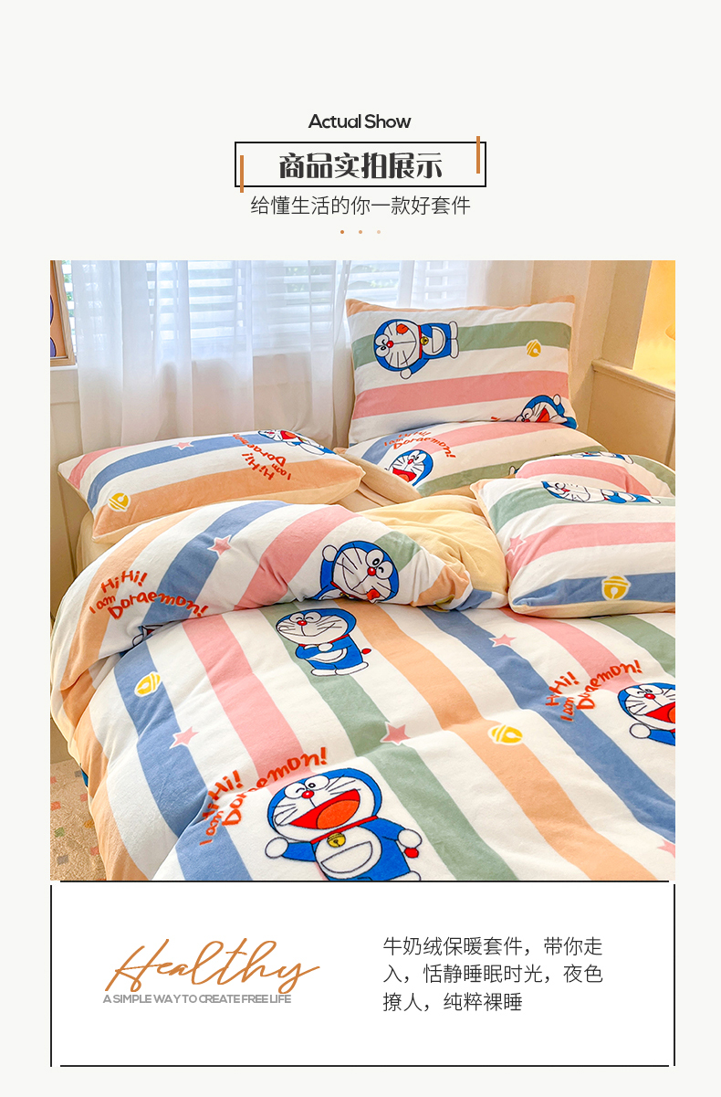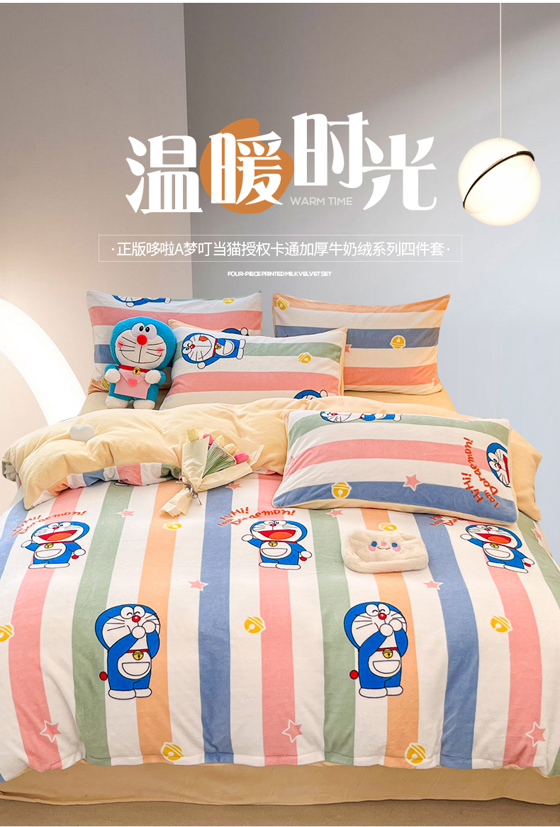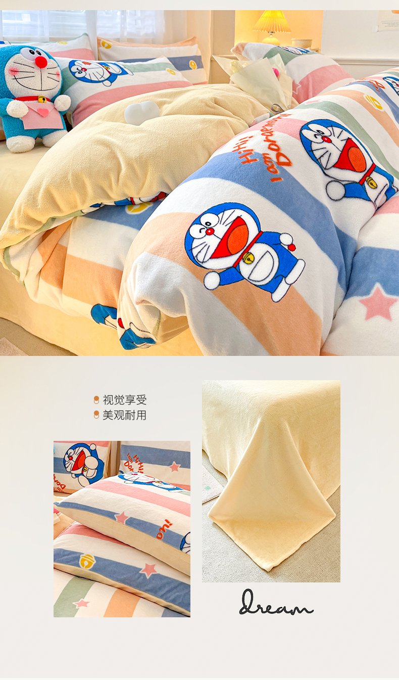 当前位置: 91家纺网 > 商品网购 > 床品套件 > 四件套 > 牛奶绒四件套 > 桃子家居 2023新款正版哆啦A梦叮当猫授权卡通加厚牛奶绒系列四件套 绒哆啦A梦-彩条虹叮当