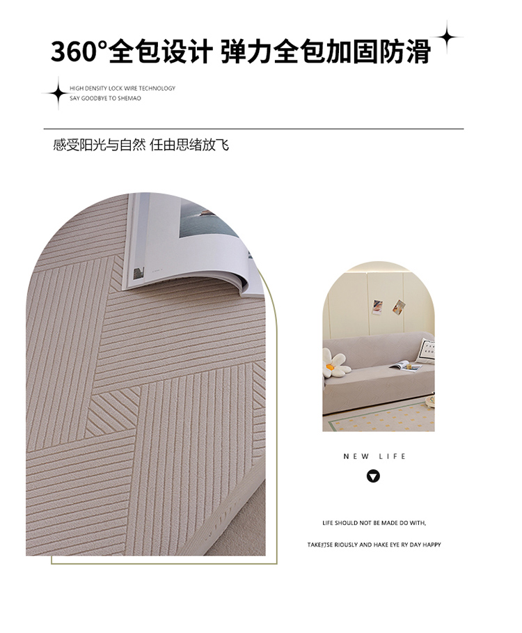 (总)天下布艺 2023新款纯色摇粒绒升级北欧百褶裙摆工艺通用沙发笠—斜格裙边,1,2,3,4,5,6,7,8,拼色1