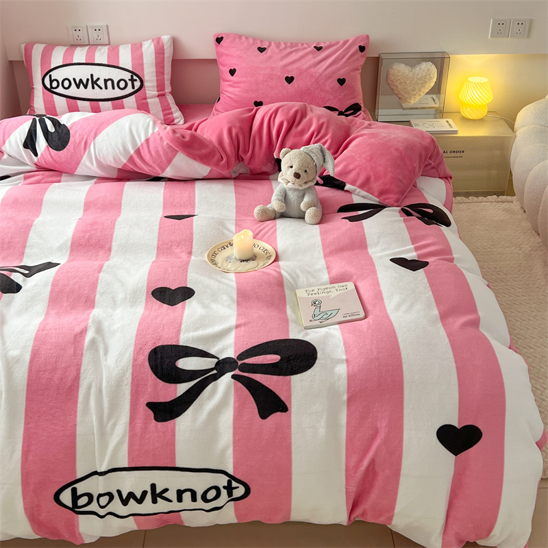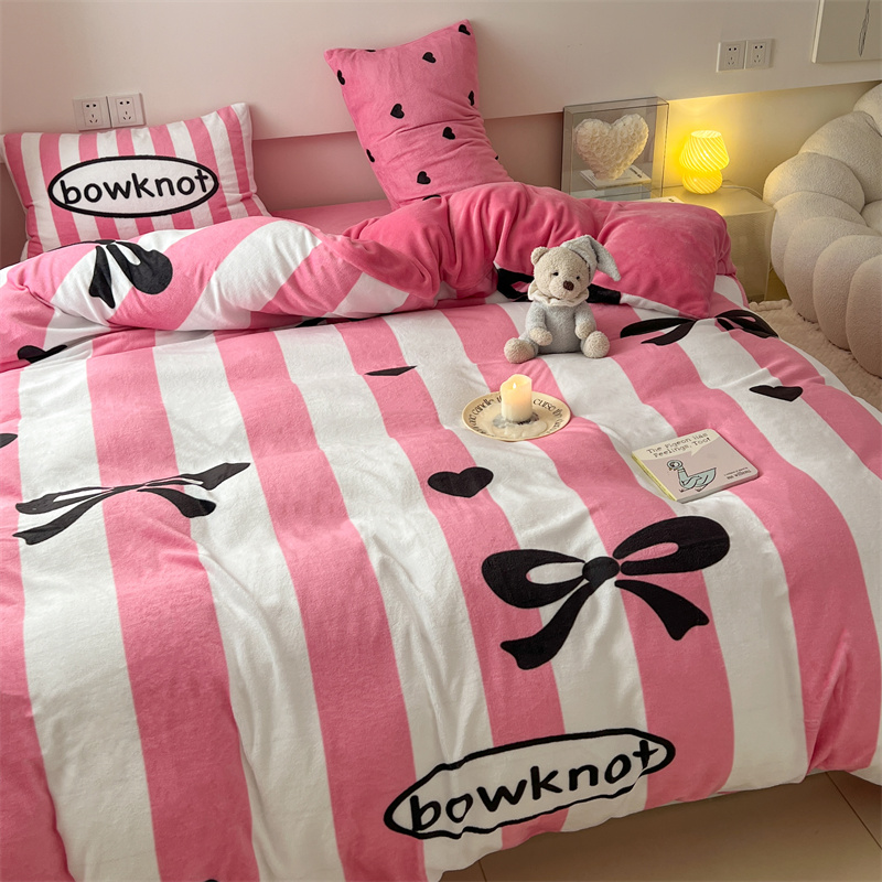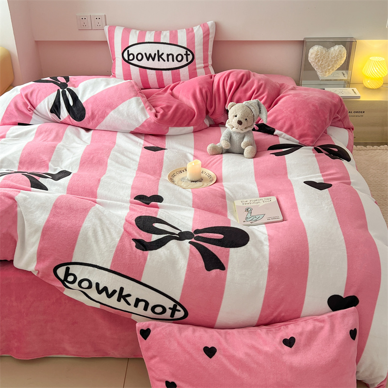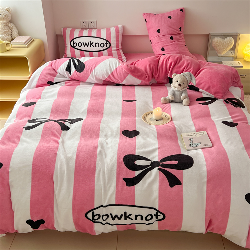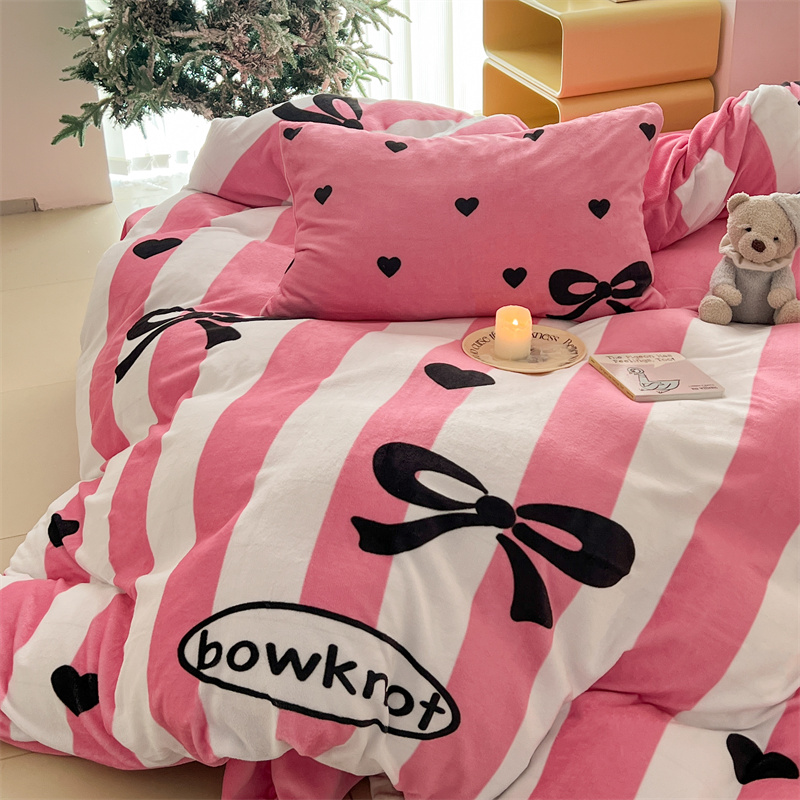 商品名称:顾里家纺 2023新款大版宝宝绒套件-设计师款 爱心蝴蝶结