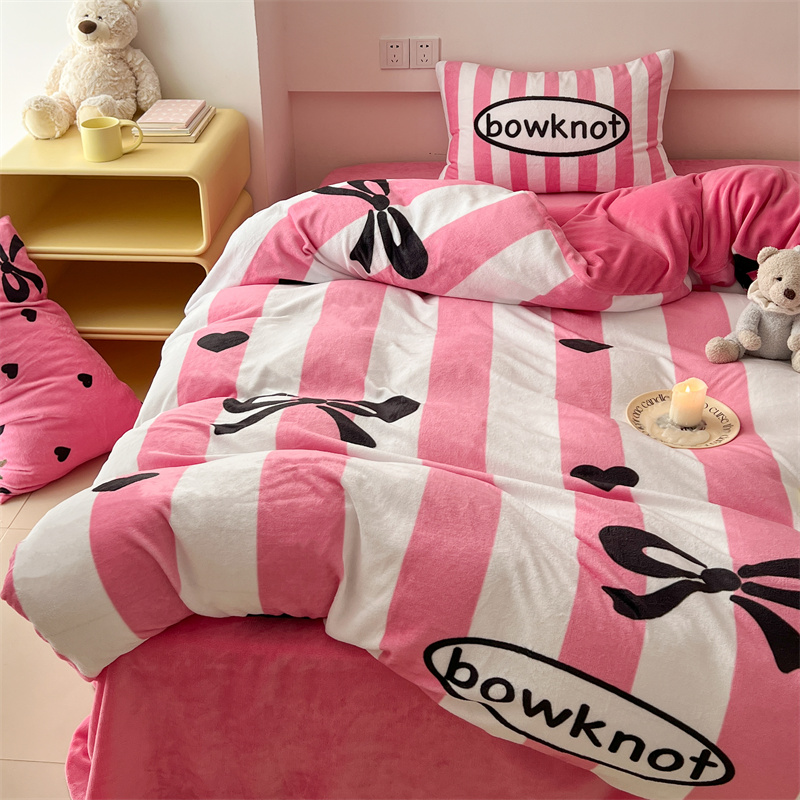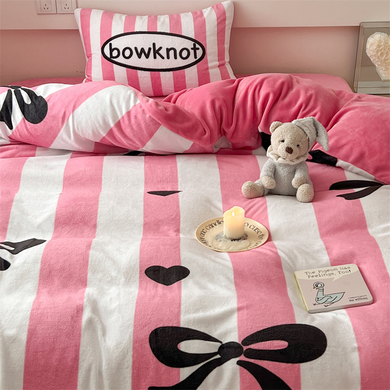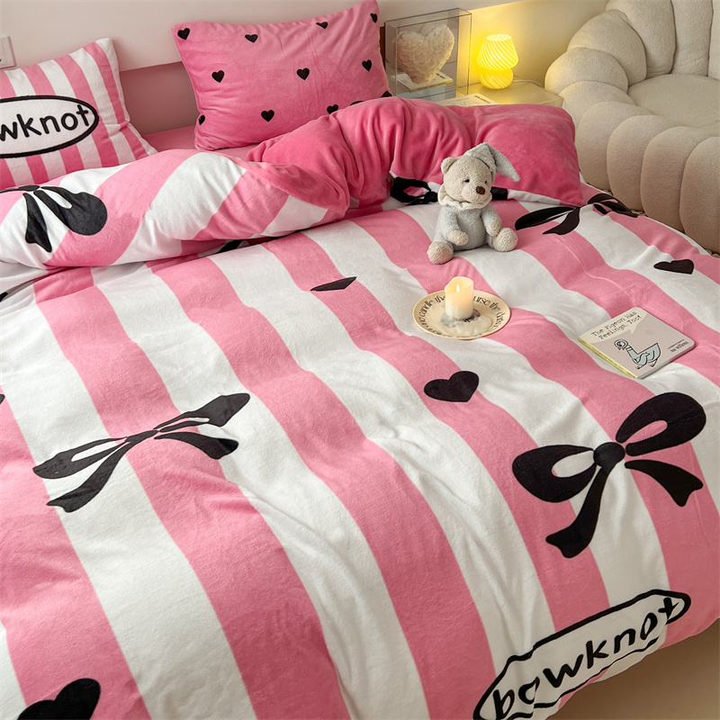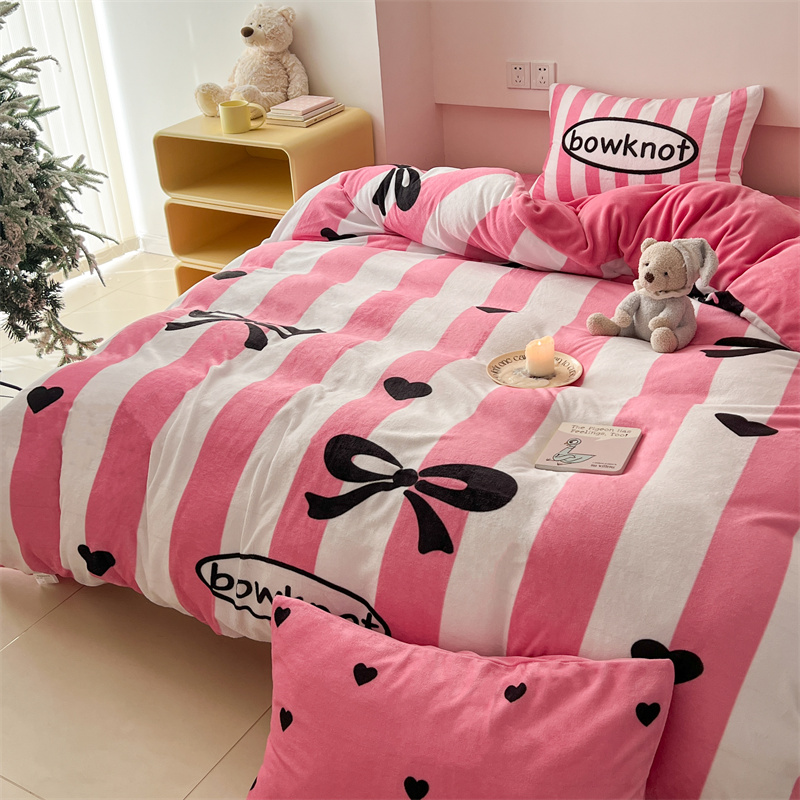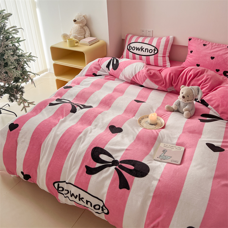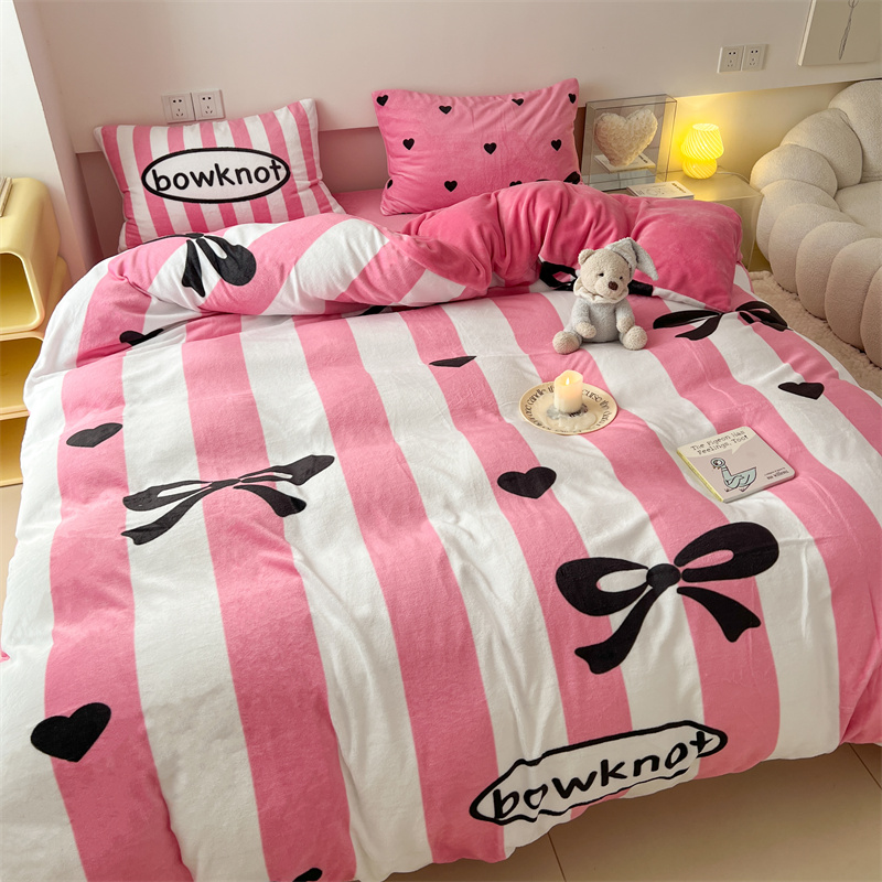 商品名称:顾里家纺 2023新款大版宝宝绒套件-设计师款 爱心蝴蝶结
