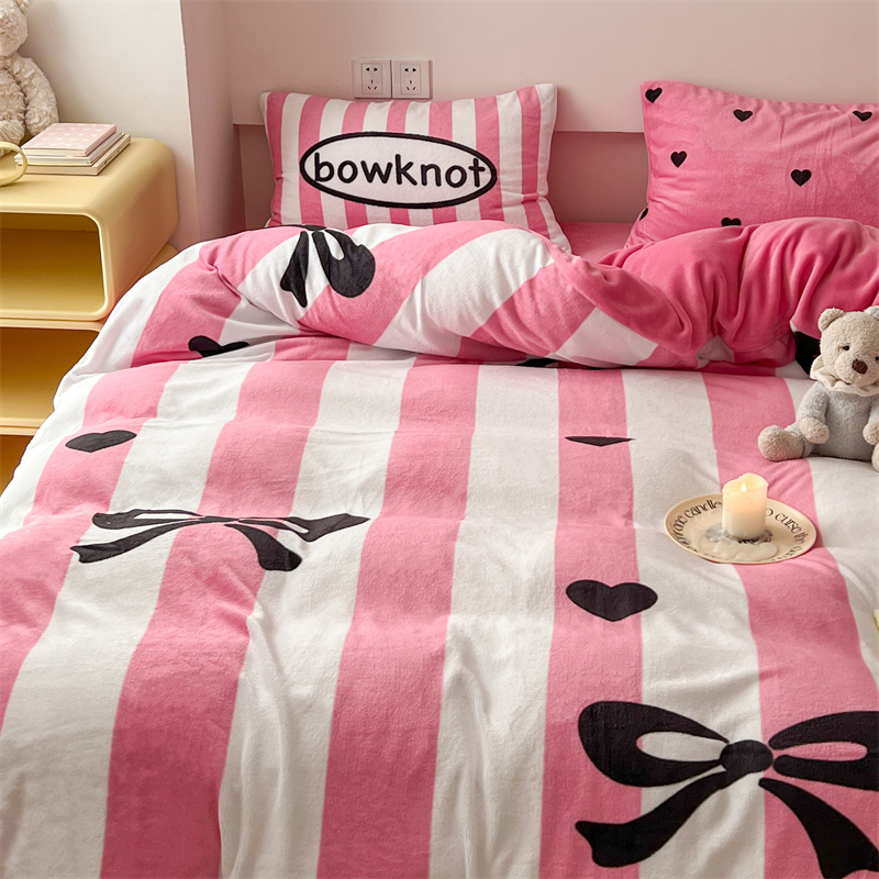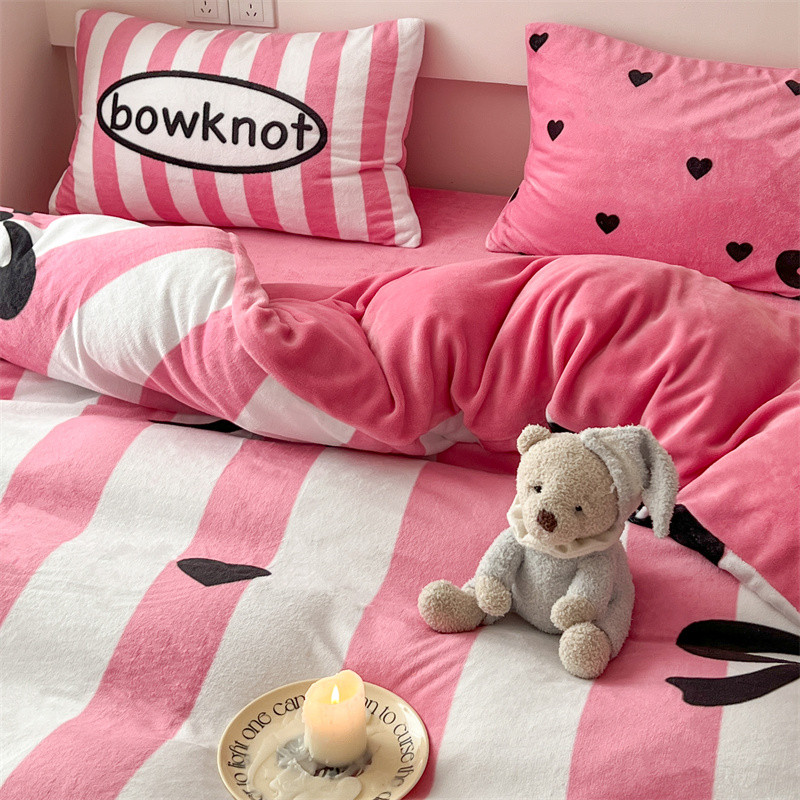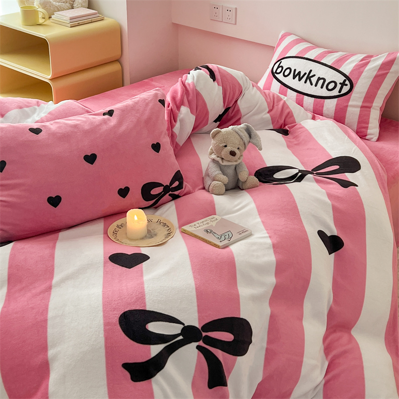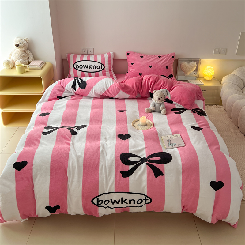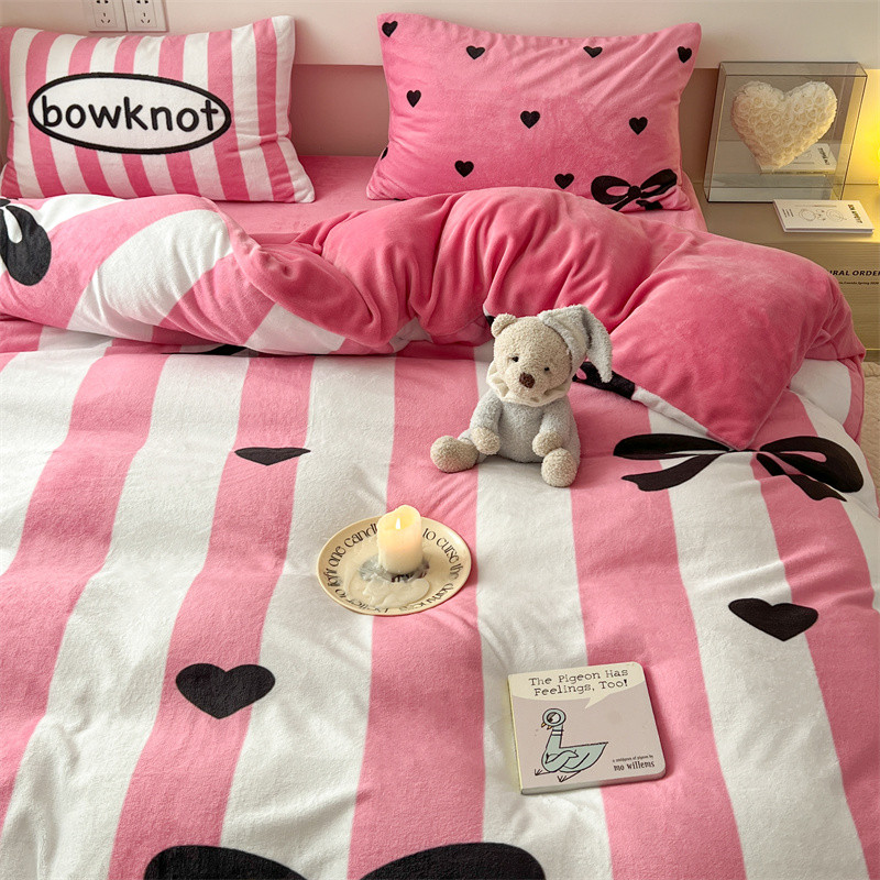 顾里家纺 2023新款大版宝宝绒套件-设计师款 爱心蝴蝶结