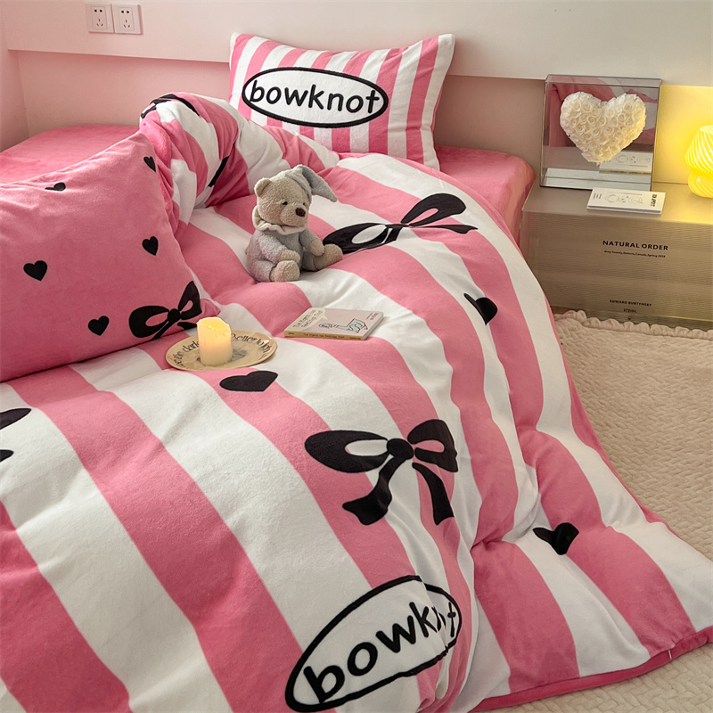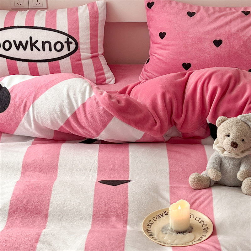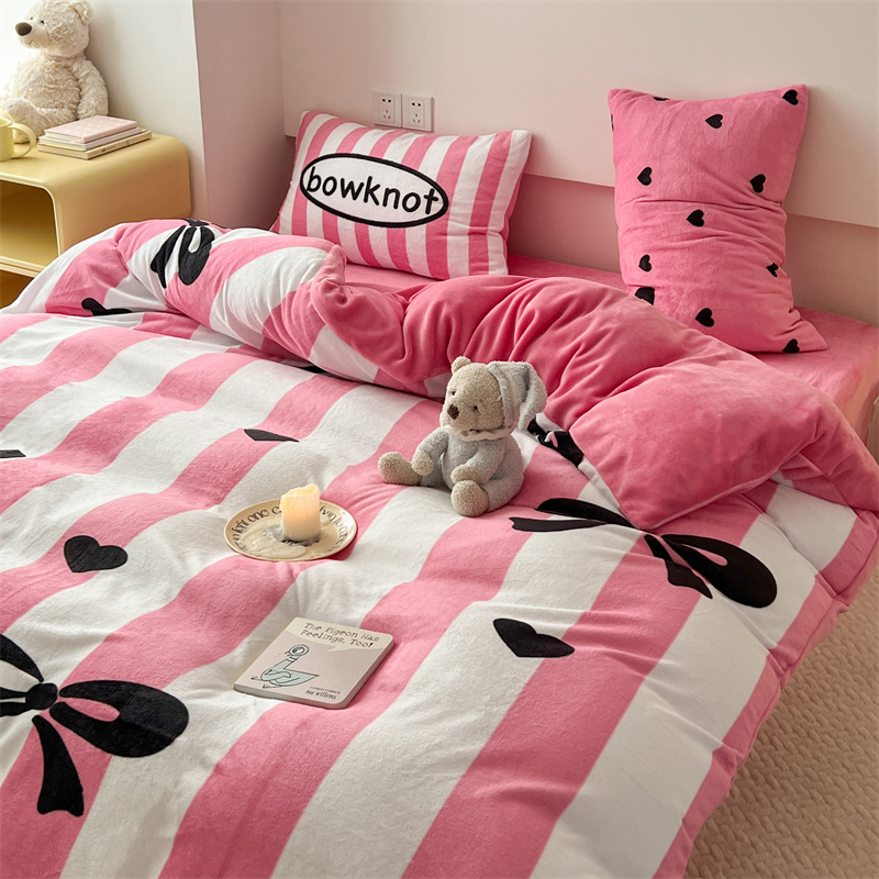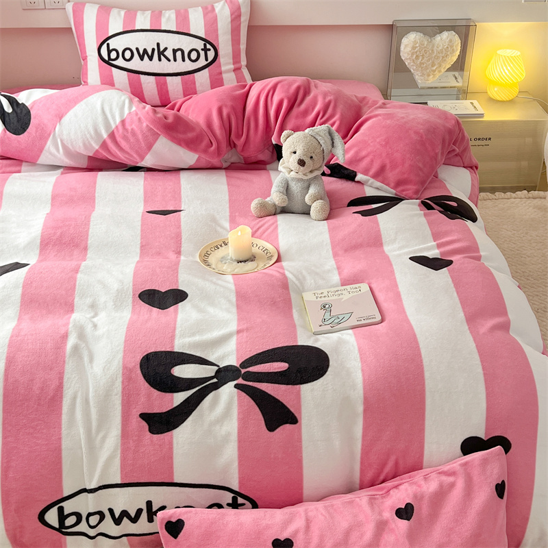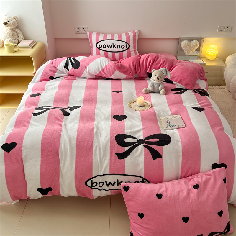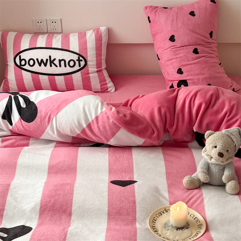 顾里家纺 2023新款大版宝宝绒套件-设计师款 爱心蝴蝶结