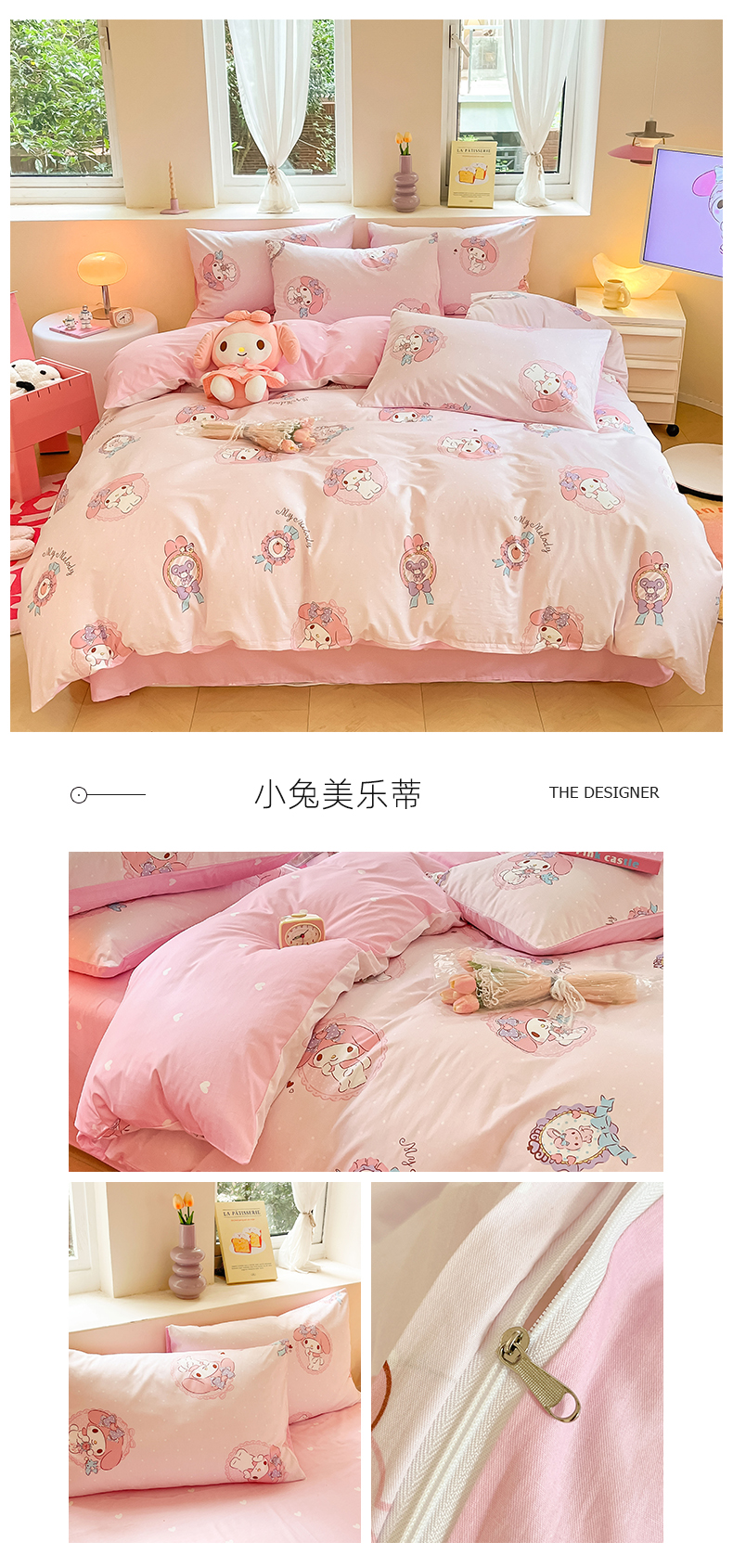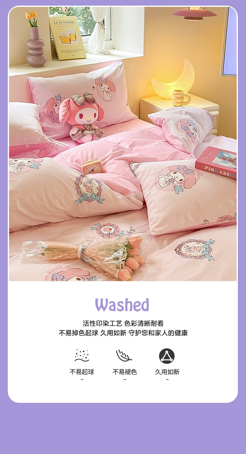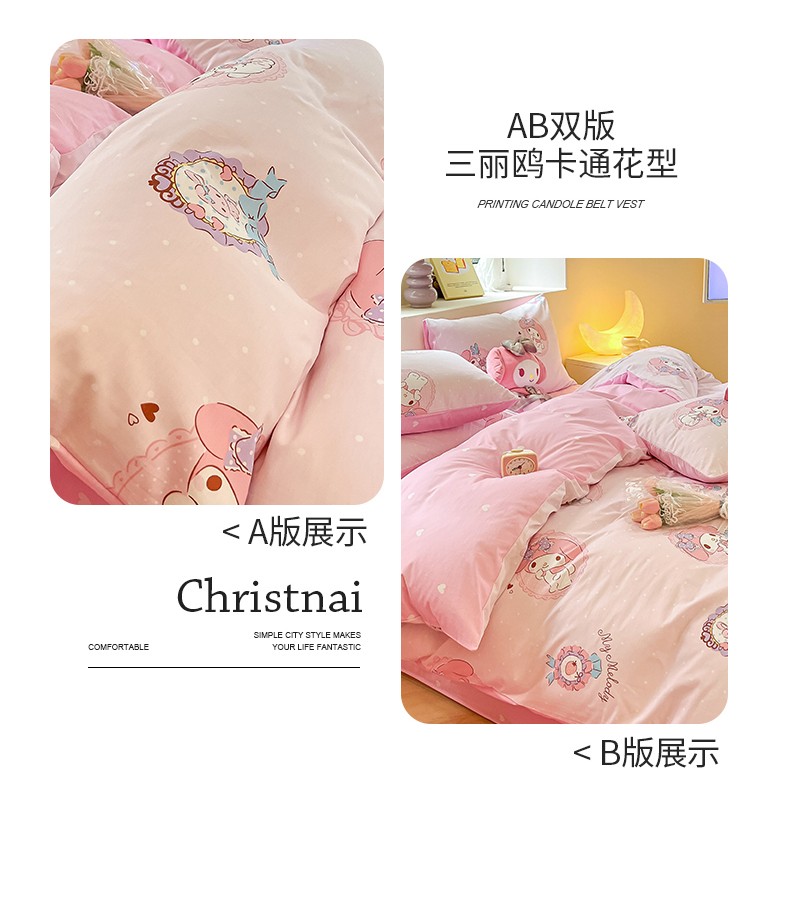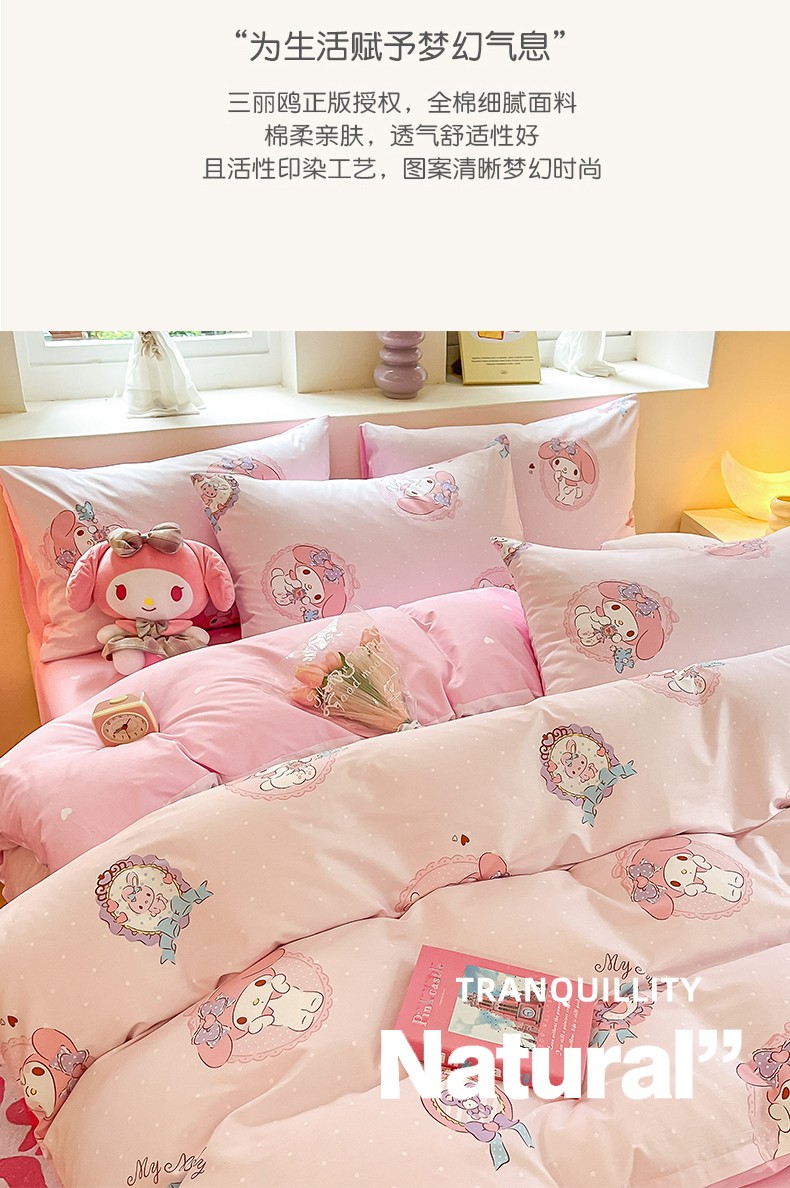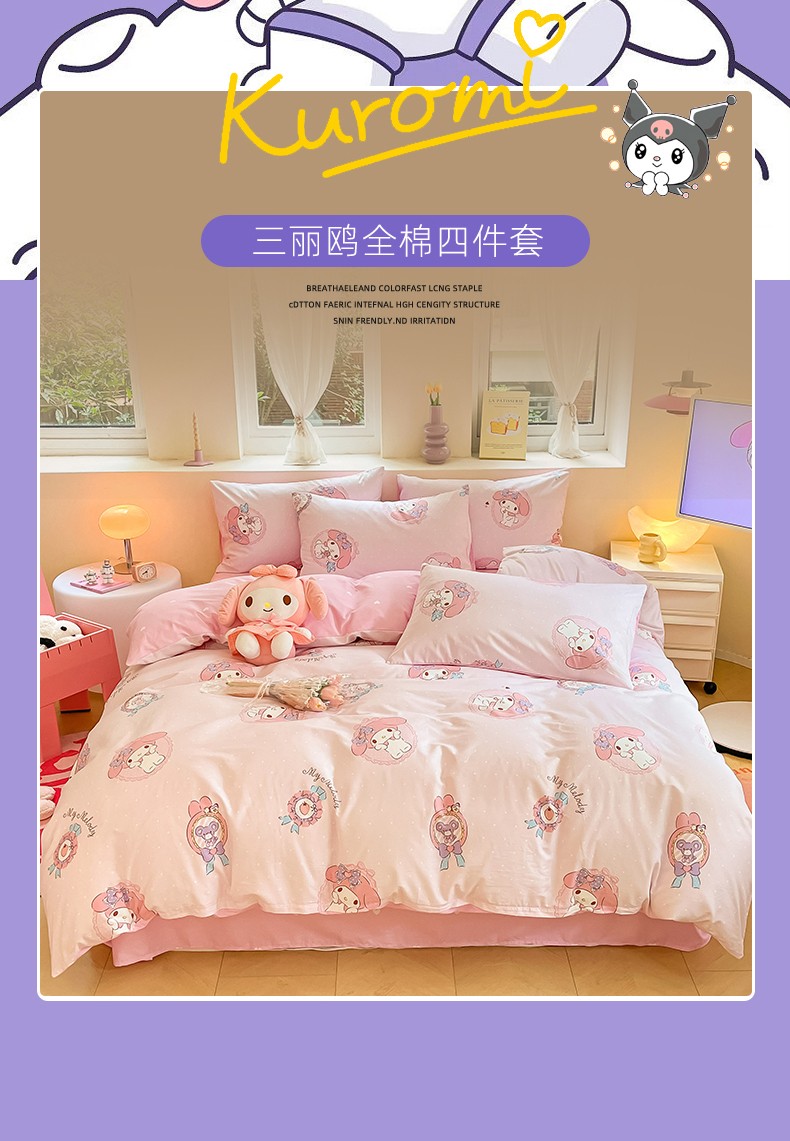 商品名称:曼之夏 2023新款全棉三丽鸥卡通四件套 小兔美乐蒂