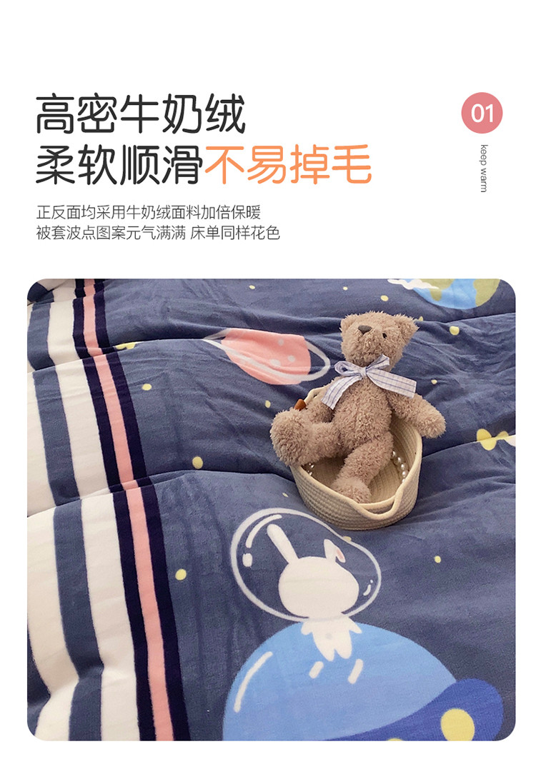 (总)三朵家纺 2024新款加厚保暖牛奶绒凯蒂猫-可可系列四件套,可可KT-粉,可可KT-黄,可可KT-蓝,可可KT-绿