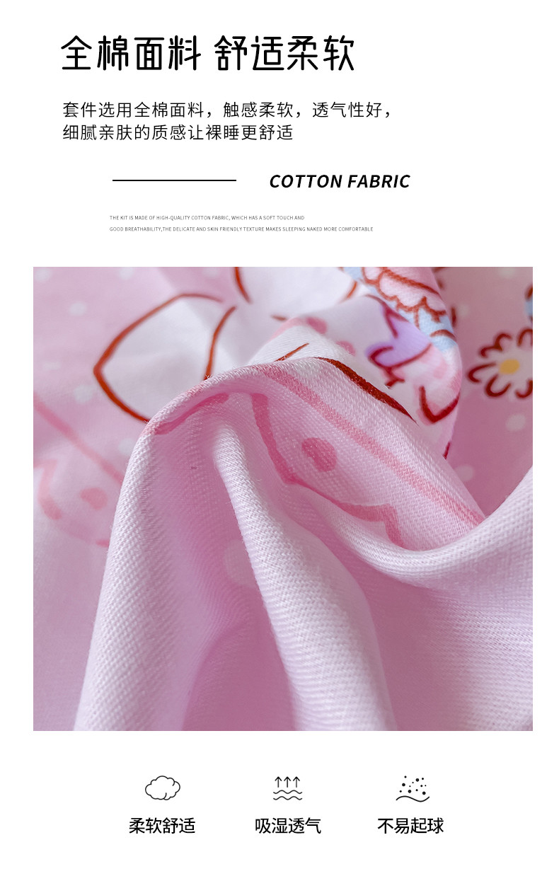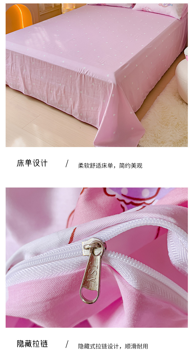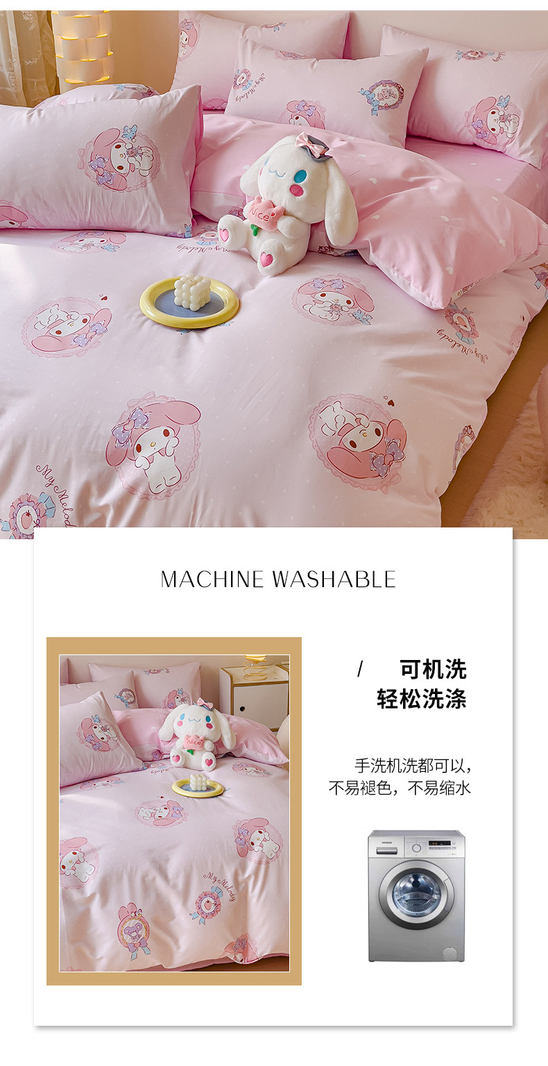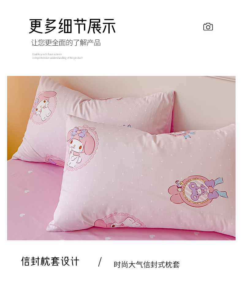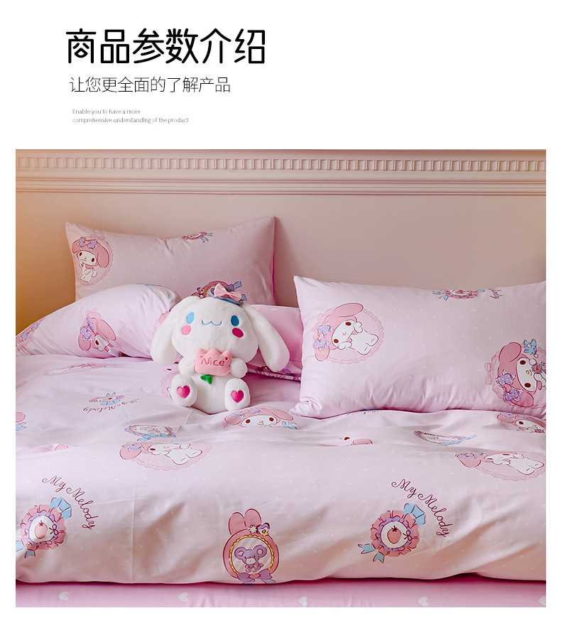 当前位置: 91家纺网 > 商品网购 > 床品套件 > 四件套 > 全棉普通四件套 > 金丝鸟家纺 2023新款全棉印花三利欧库洛米系列四件套 糖果兔