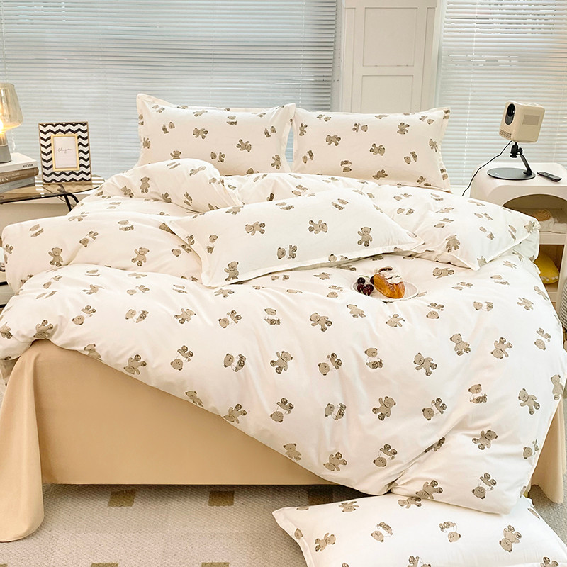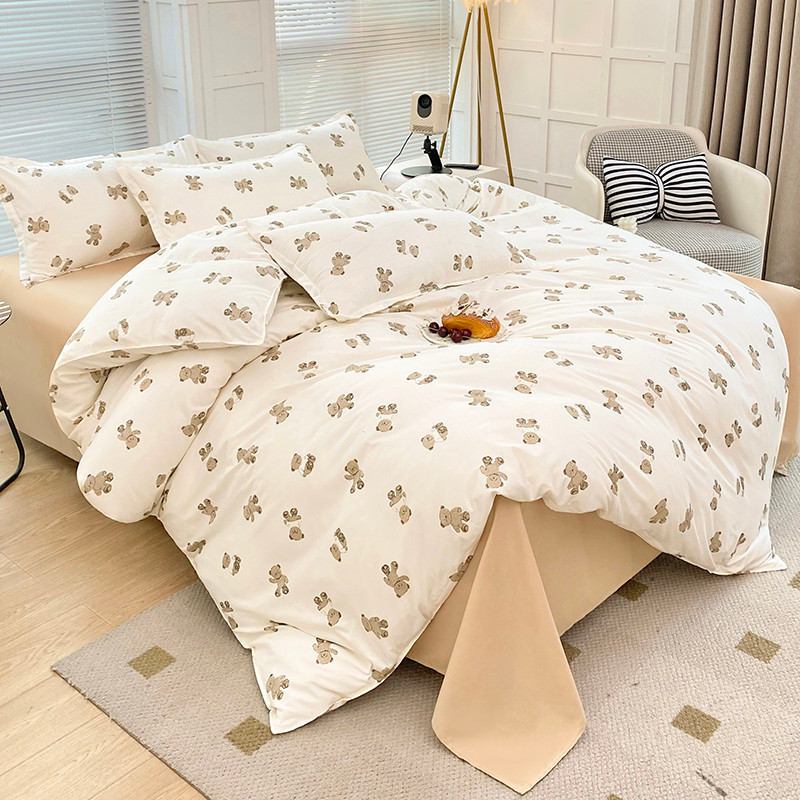 楠沐 2025年新款亲肤水洗棉磨毛单被套 抱抱熊