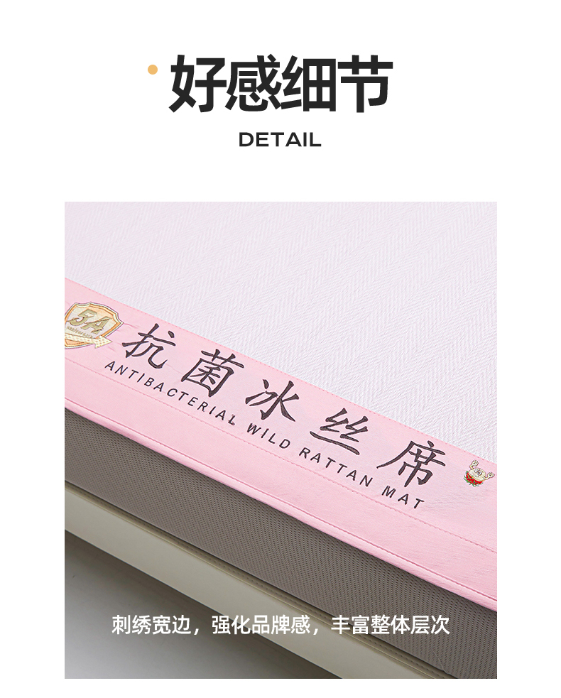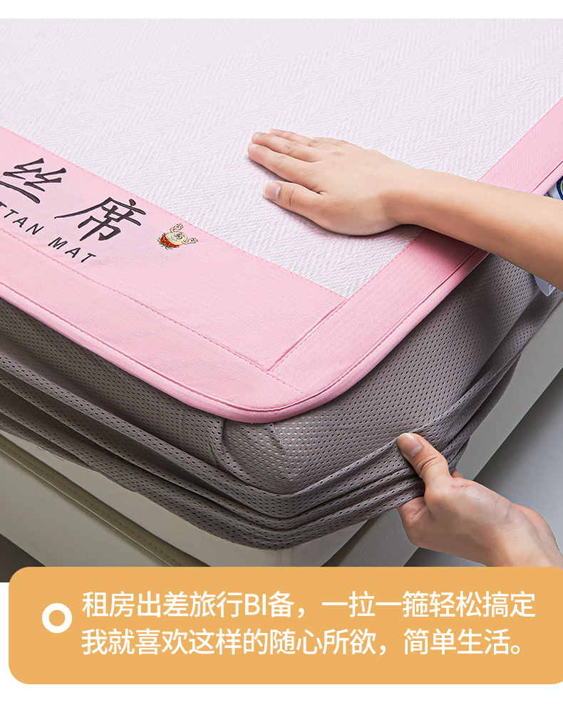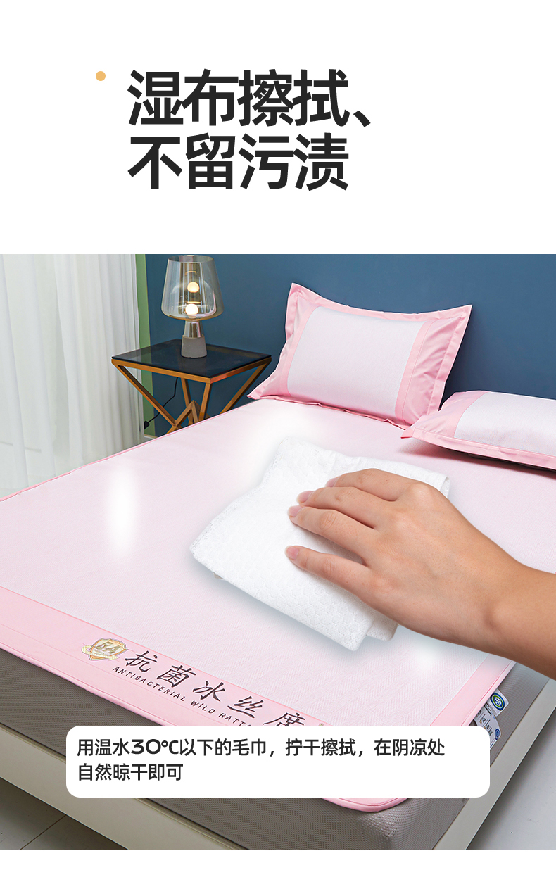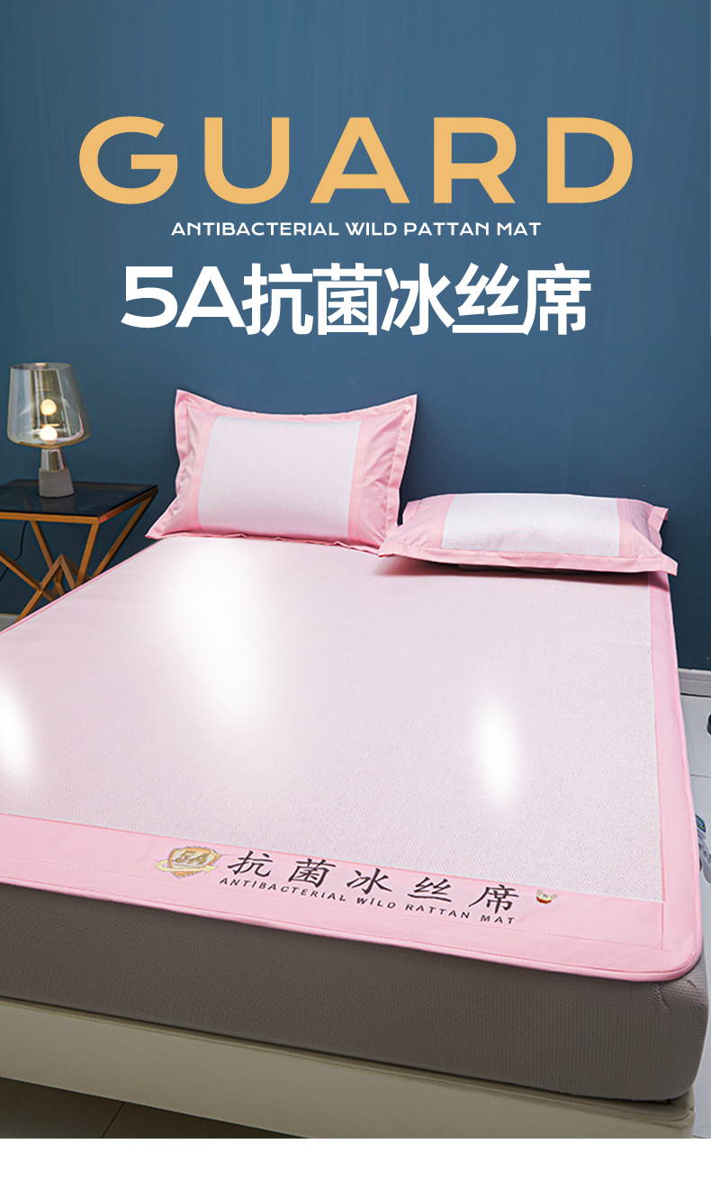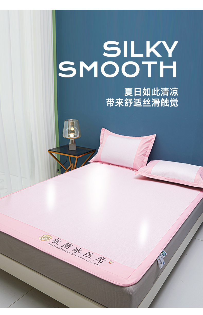 商品名称:鑫姿席业 2025新款5A抗菌冰丝凉席系列 香芋粉(床笠款)