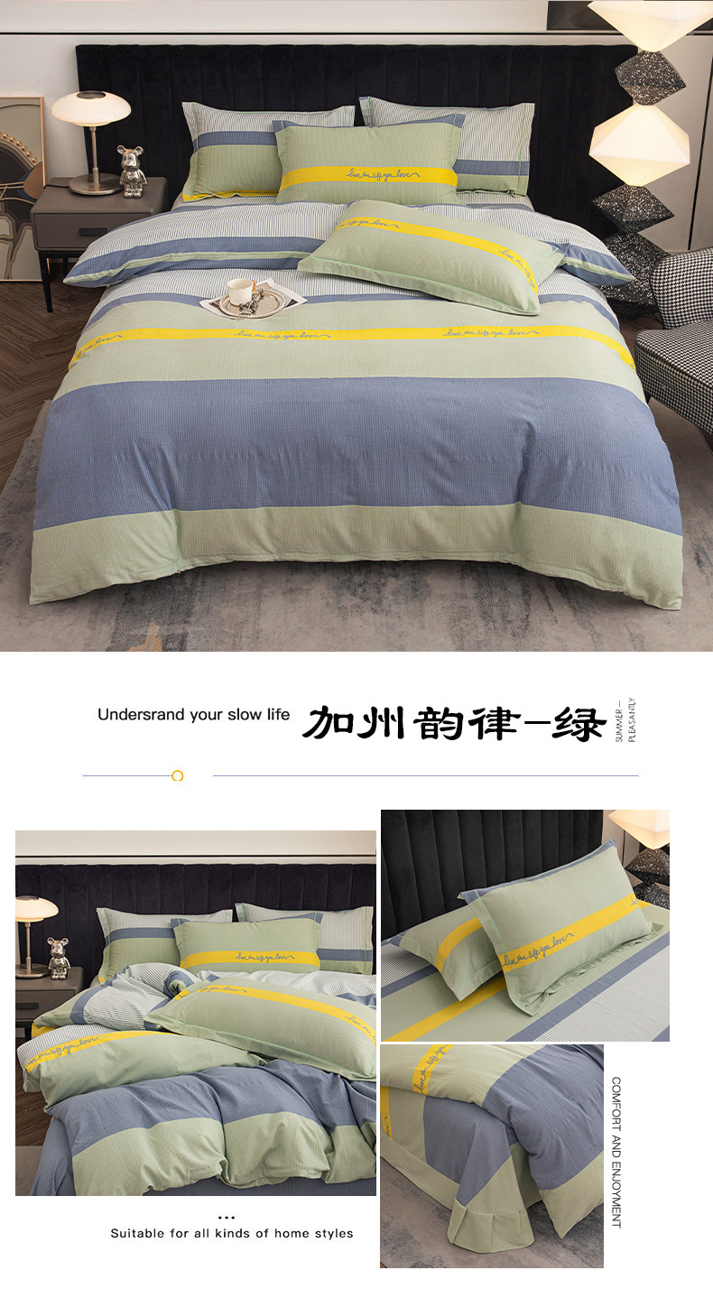 商品名称:喜四方 2024新款全棉磨毛全棉印花四件套 加州韵律-绿