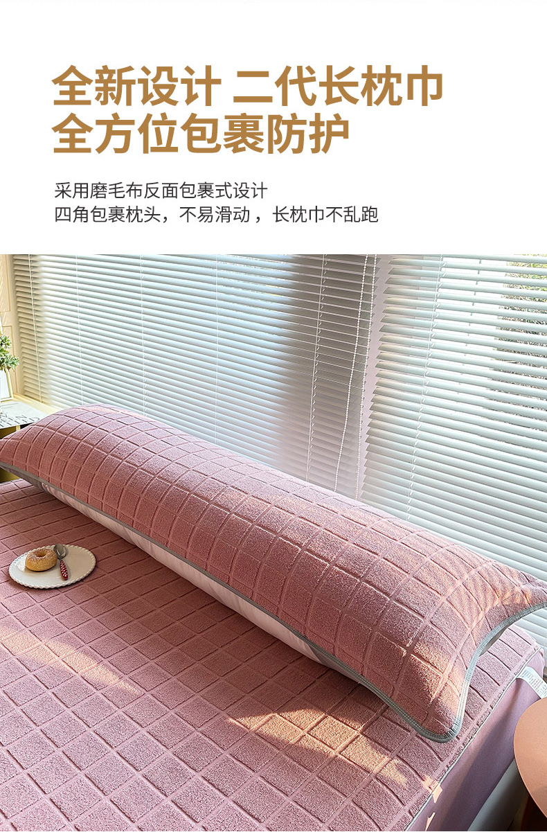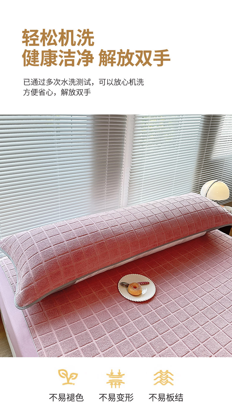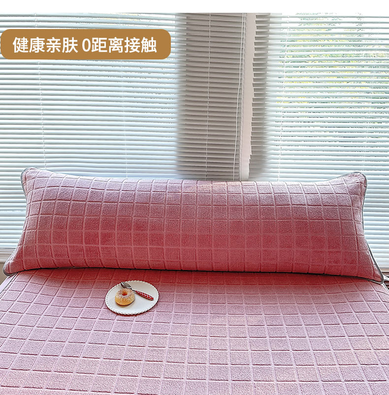 (总)爱港家纺 2025新款牛奶绒夹棉衍缝长枕套,红满福,暖桃粉,青柠绿,青雾蓝,云际灰