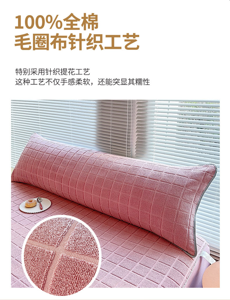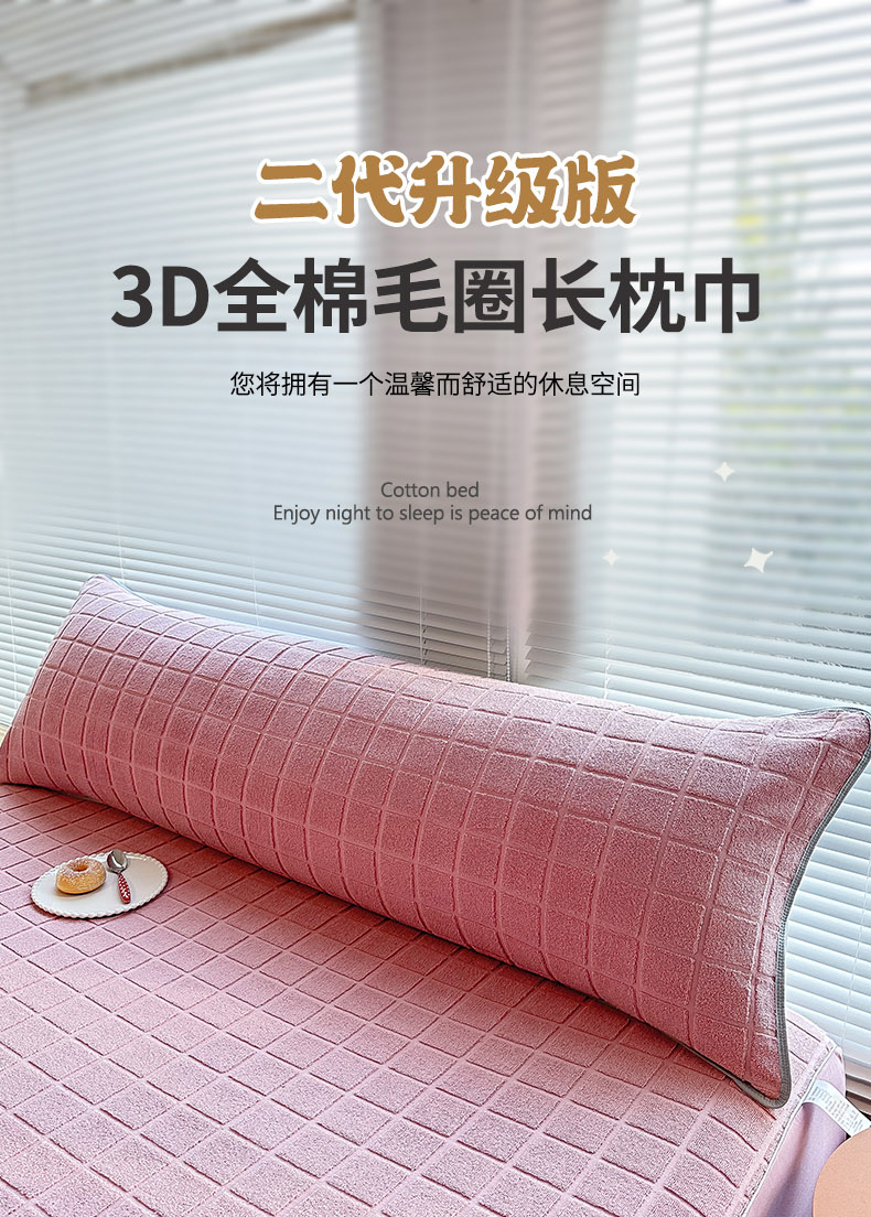 爱港家纺 2023新款全棉A类毛巾布升级款长枕巾枕芯保护套 暖棉.红