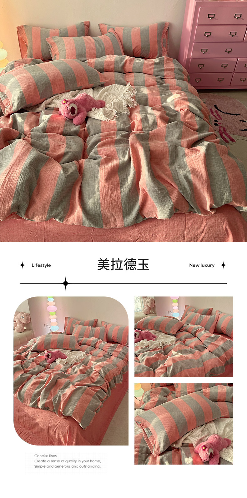 (总)千朵 2025新款全棉纯棉色织提花水洗棉四件套 富士系列,富士果绿,富士灰,富士奶黄,富士浅兰,富士浅紫,富士森绿,富士雾兰