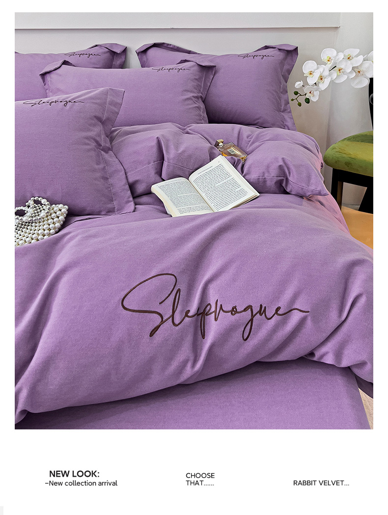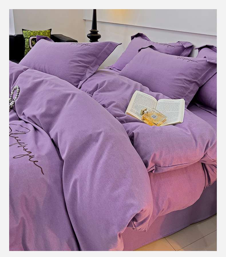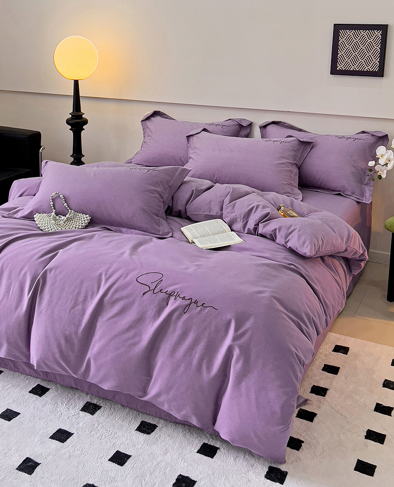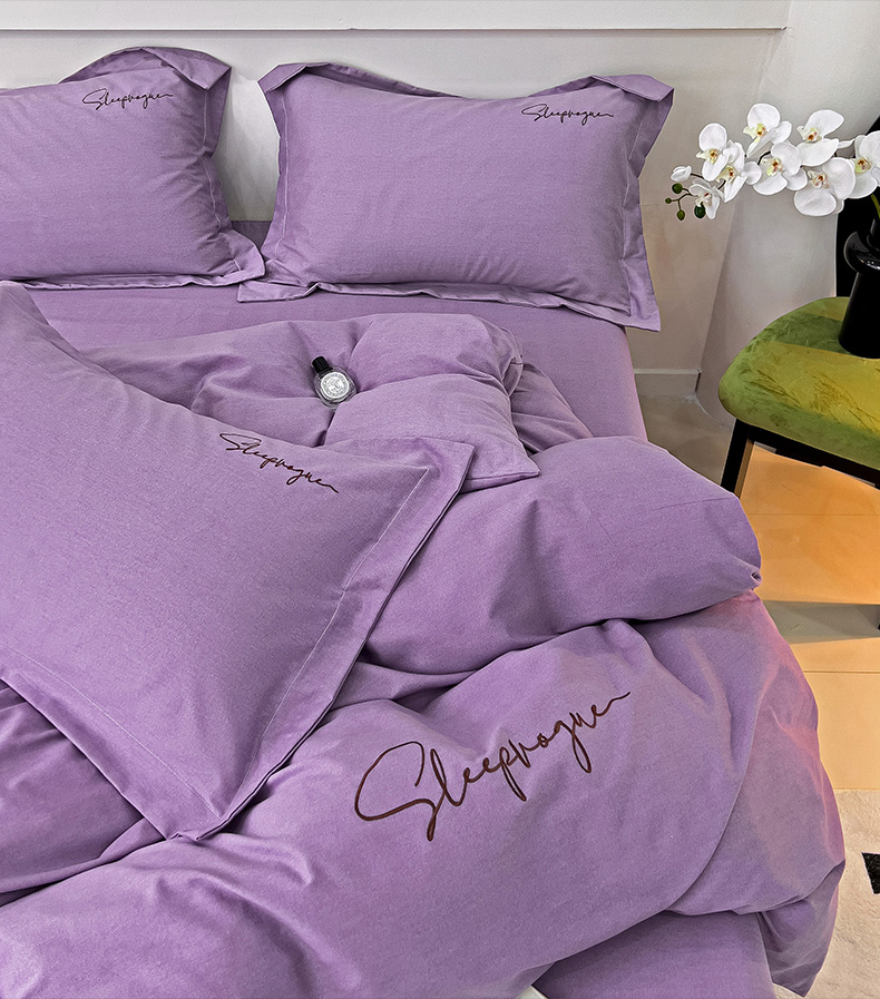 当前位置: 91家纺网 > 商品网购 > 床品套件 > 四件套 > 全棉普通四件套 > 慕尚家纺 2025新款全棉磨毛英文字母绣系列四件套 艾丽紫