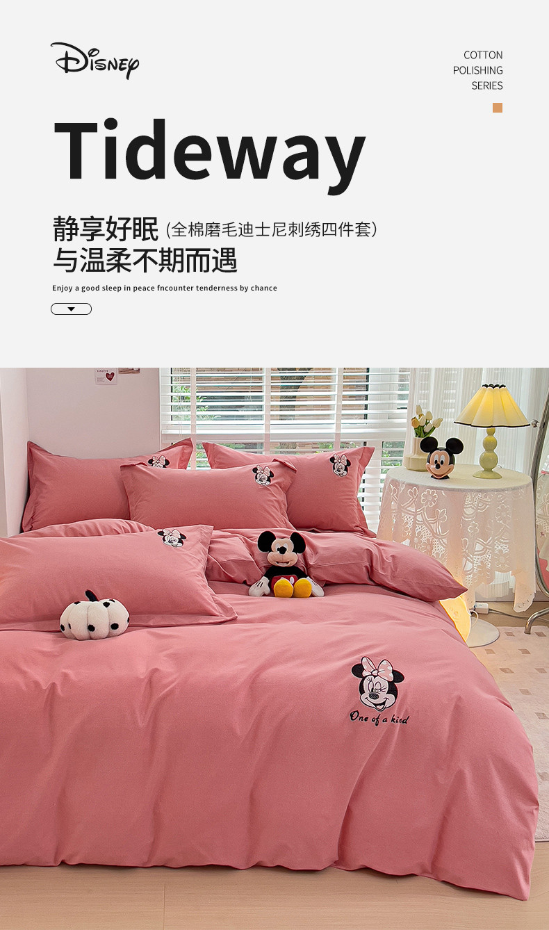 当前位置: 91家纺网 > 商品网购 > 床品套件 > 四件套 > 全棉普通四件套 > 慕尚家纺 2025新款迪士尼全棉磨毛刺绣系列四件套 米妮豆沙