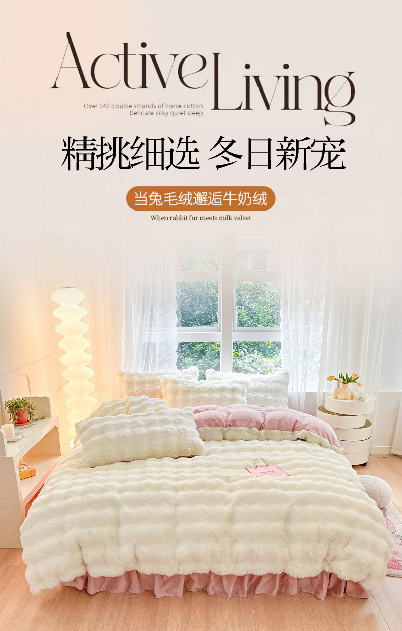 (总)慕澄家纺 2024新款大泡泡兔毛绒加厚保暖四件套