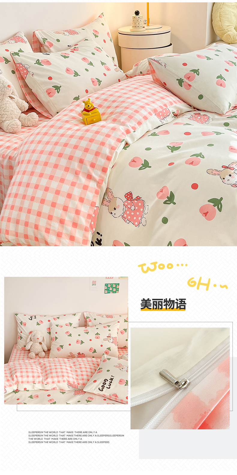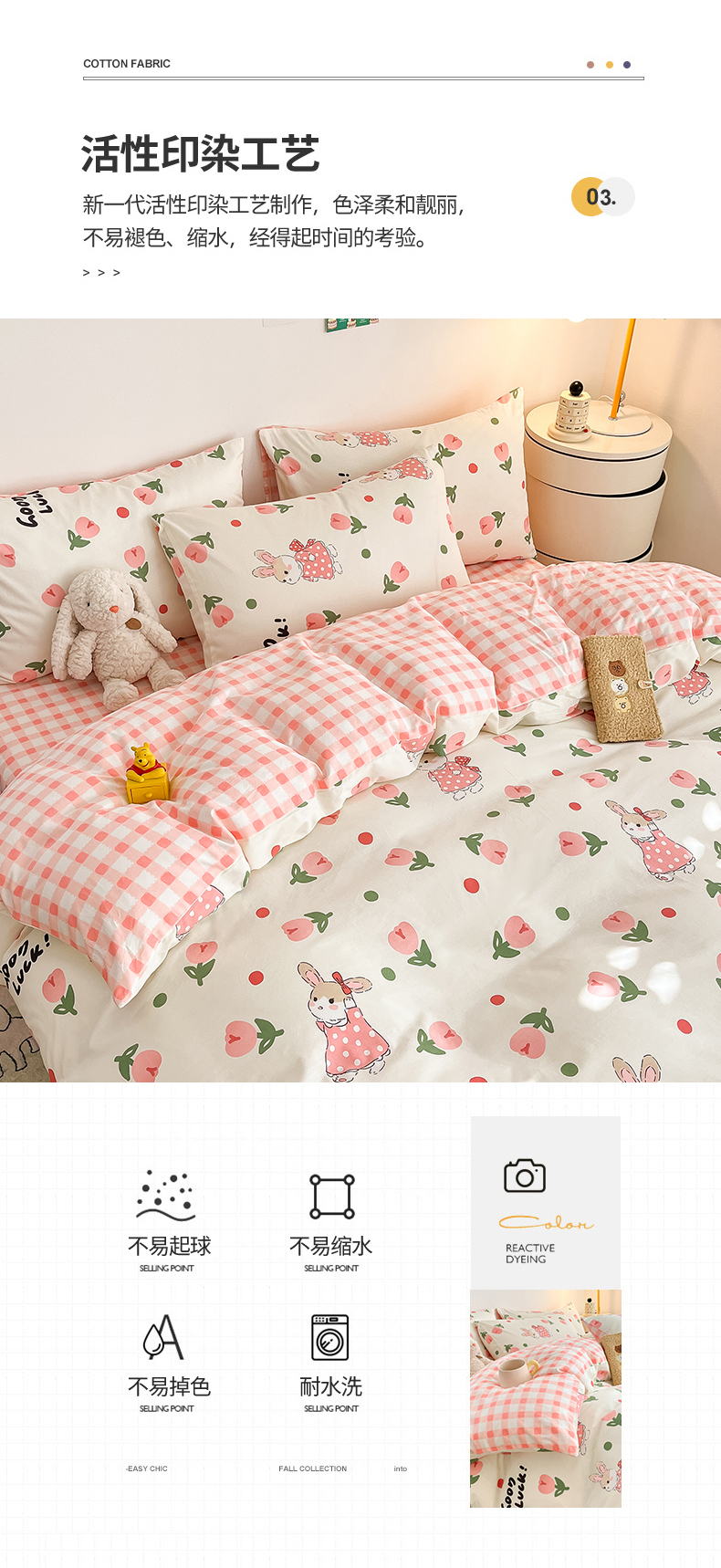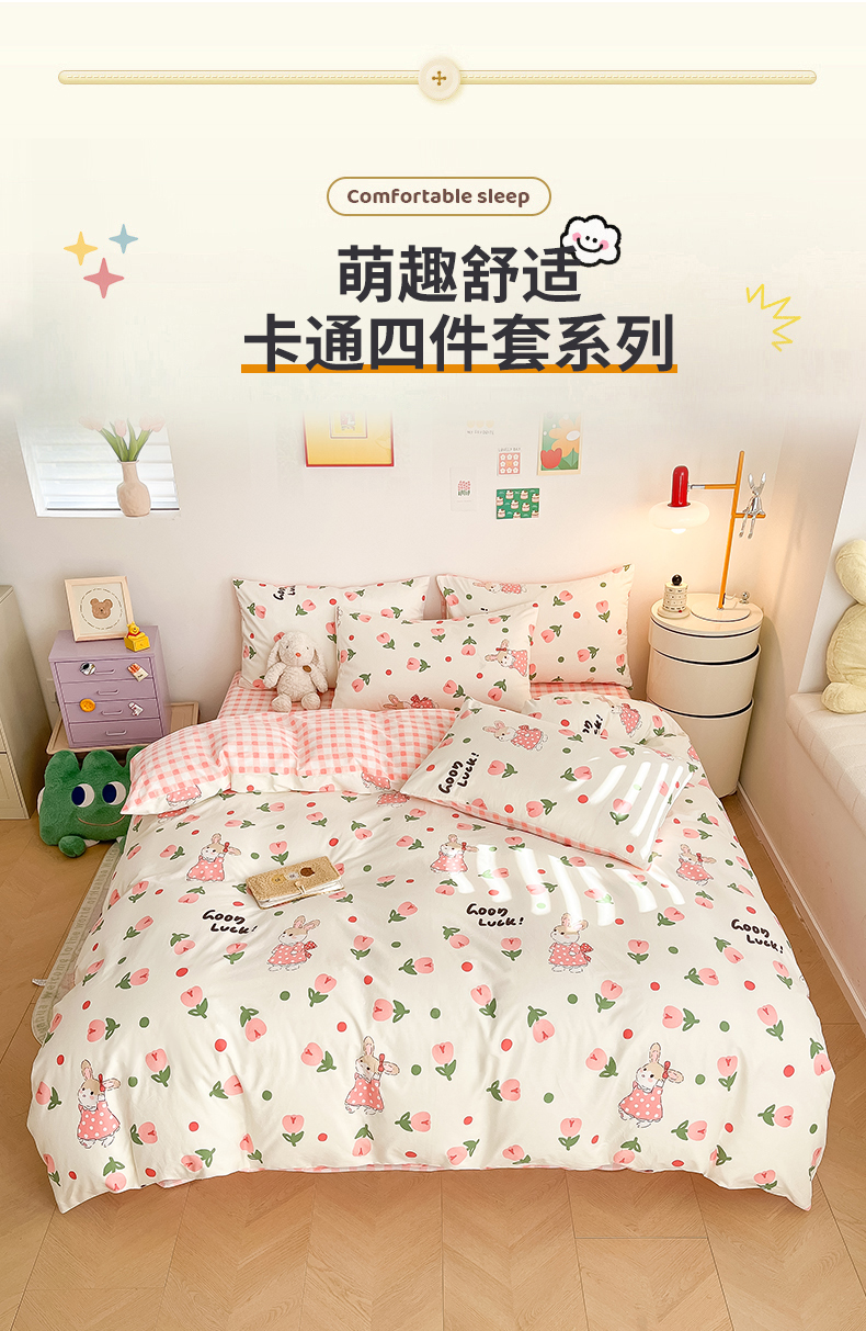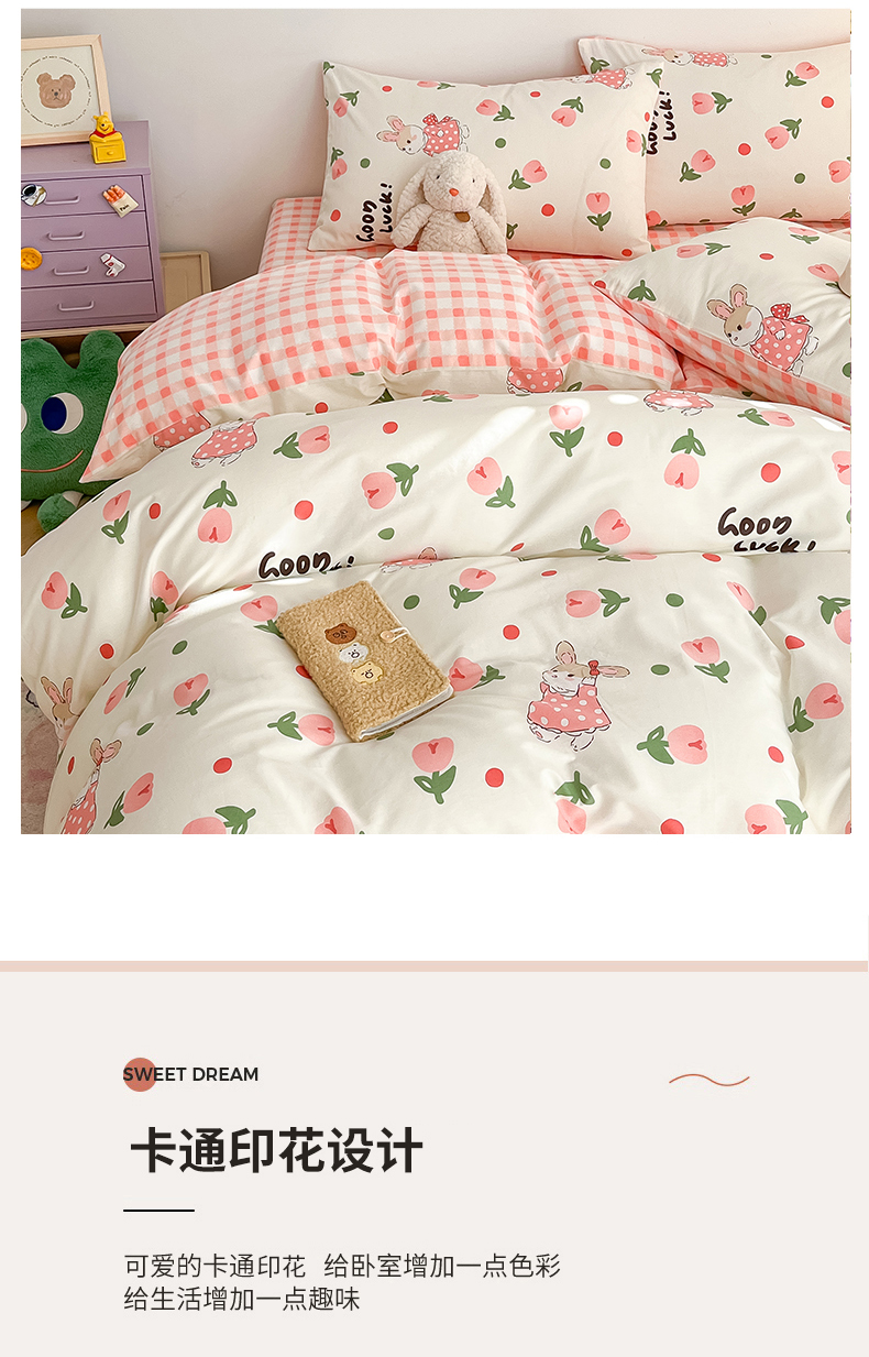 当前位置: 91家纺网 > 商品网购 > 床品套件 > 四件套 > 全棉普通四件套 > 吉象家纺 2024新款全棉印花卡通四件套系列 郁金香粉兔