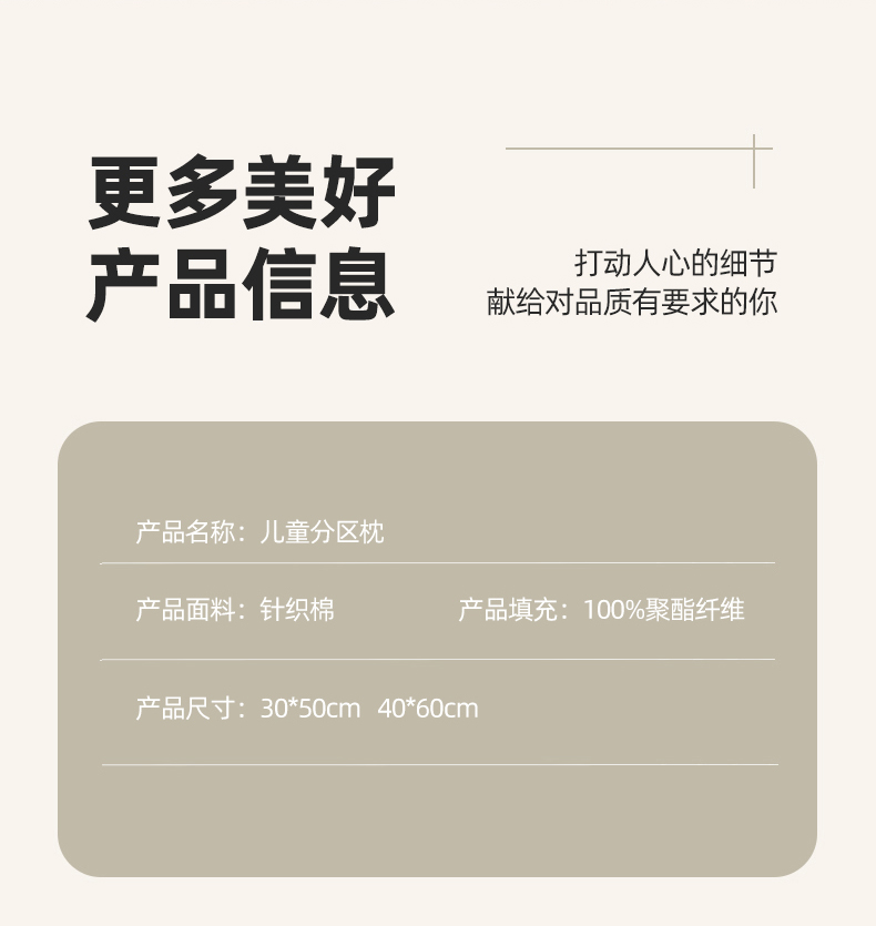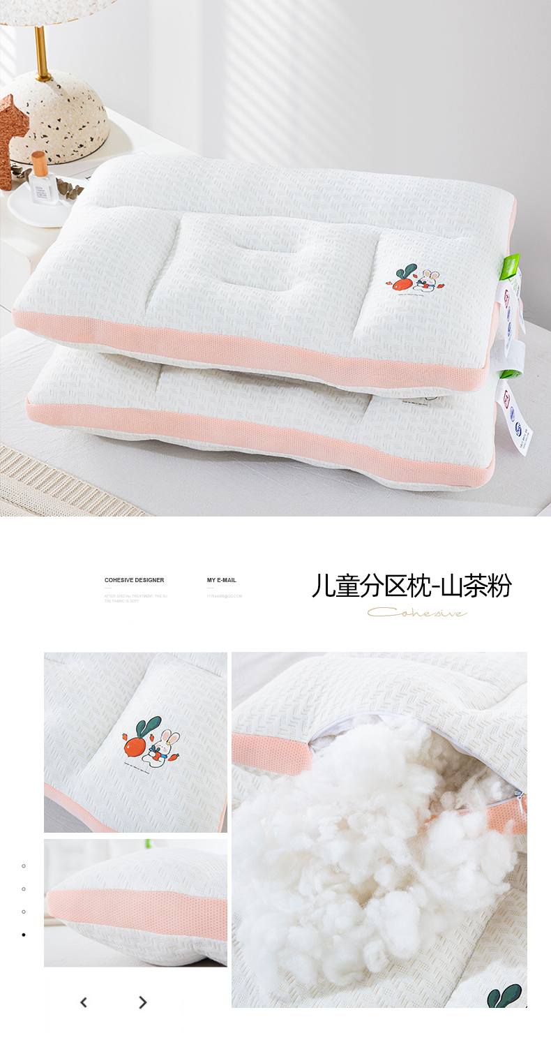商品名称:纽乐家纺 2024新款针织棉儿童分区枕 山茶粉30*50一只
