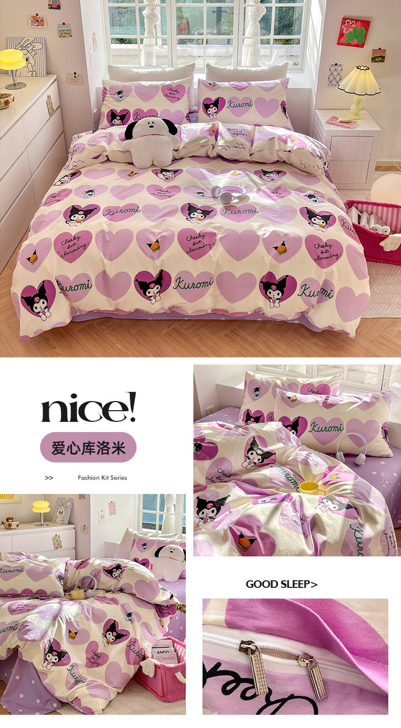 怡家居 2024新品春款全棉印花四件套第一批花色-卡通类 爱心库洛米