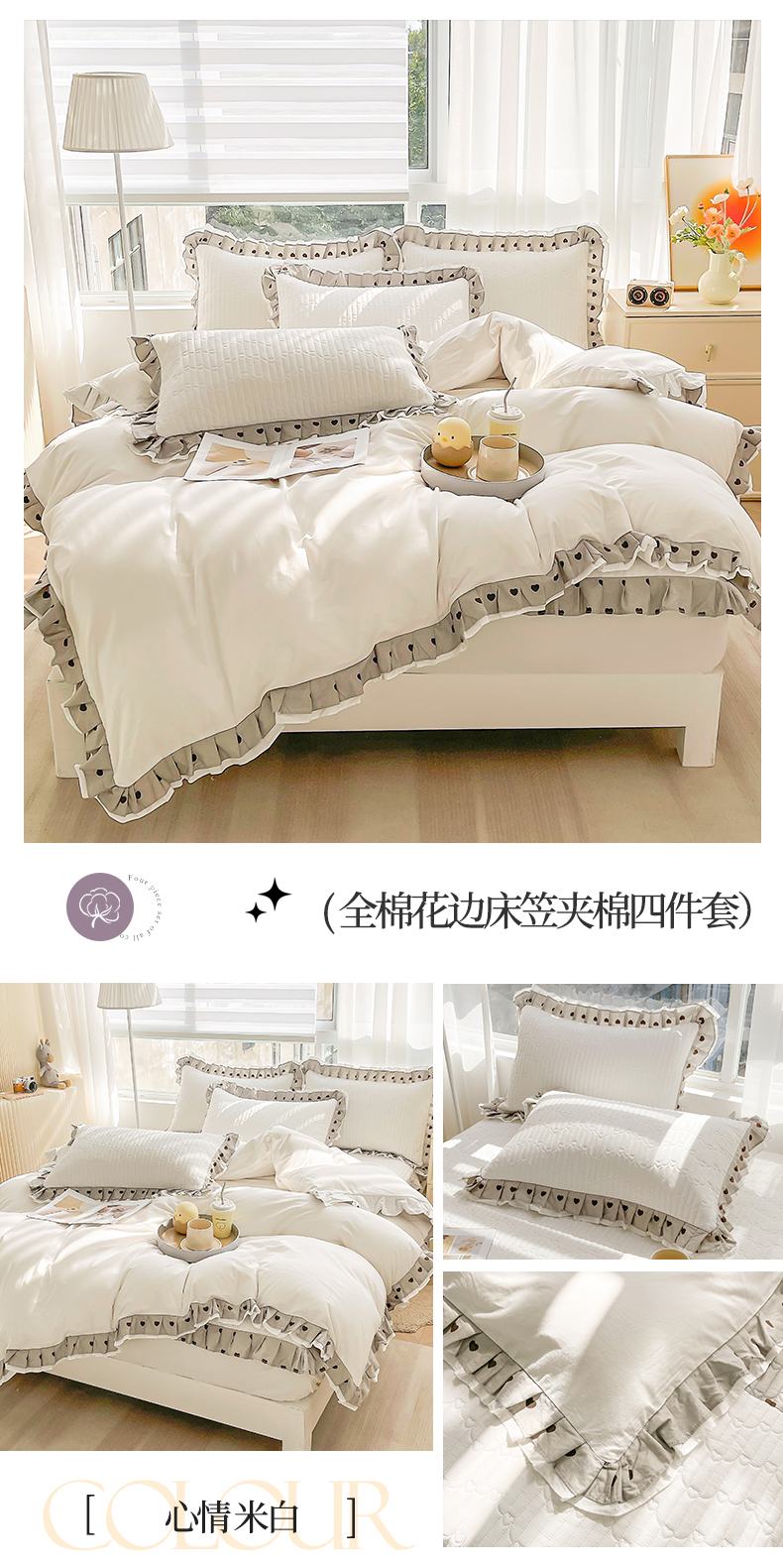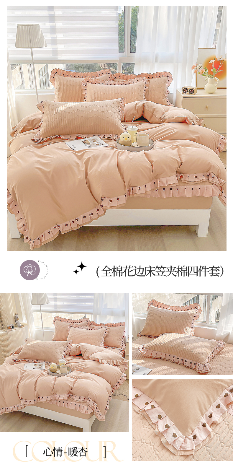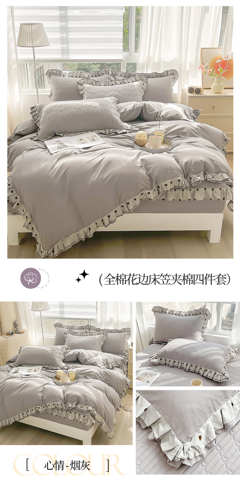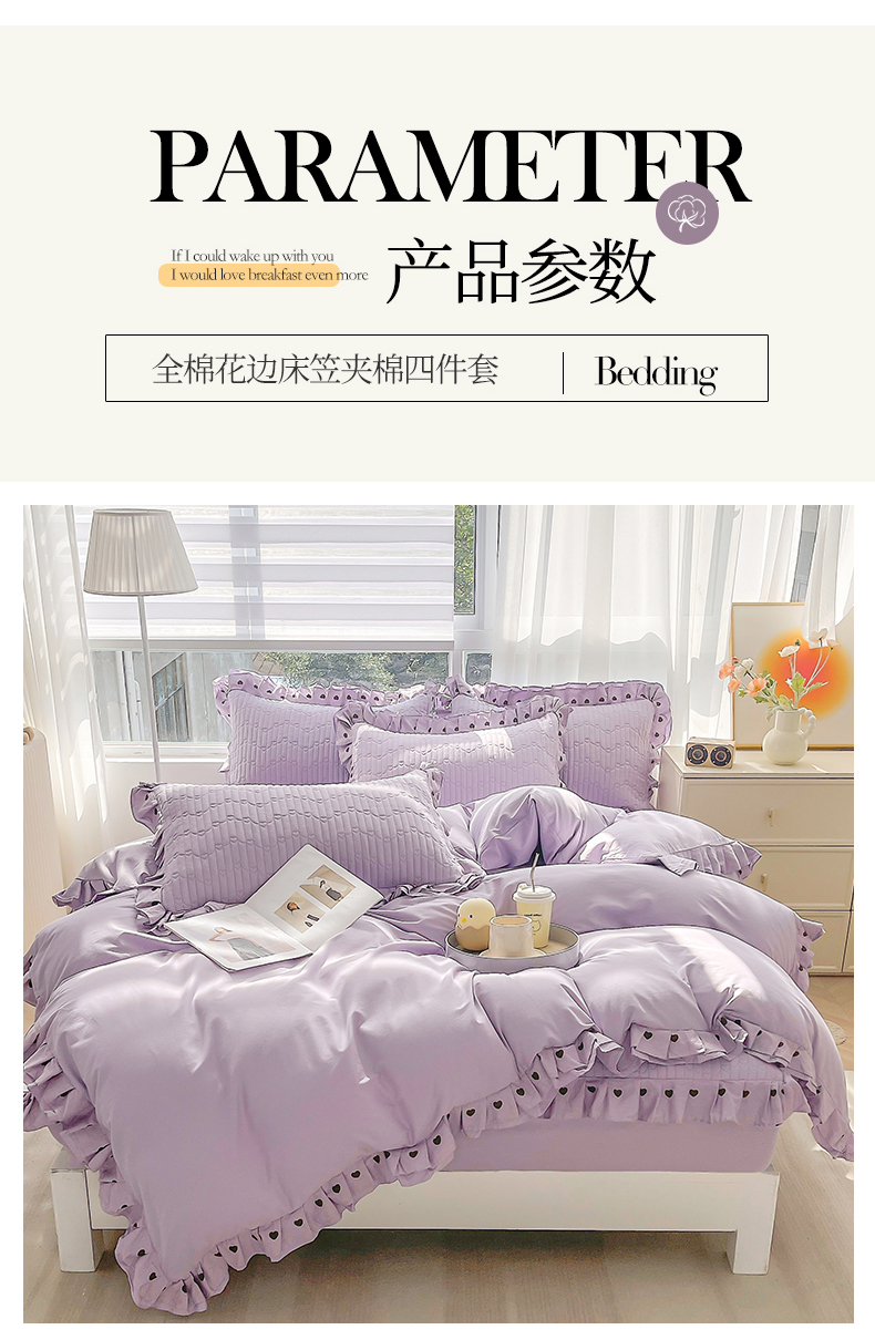 (总)宜凡家纺 2024新品全棉夹棉花边床笠四件套-心情