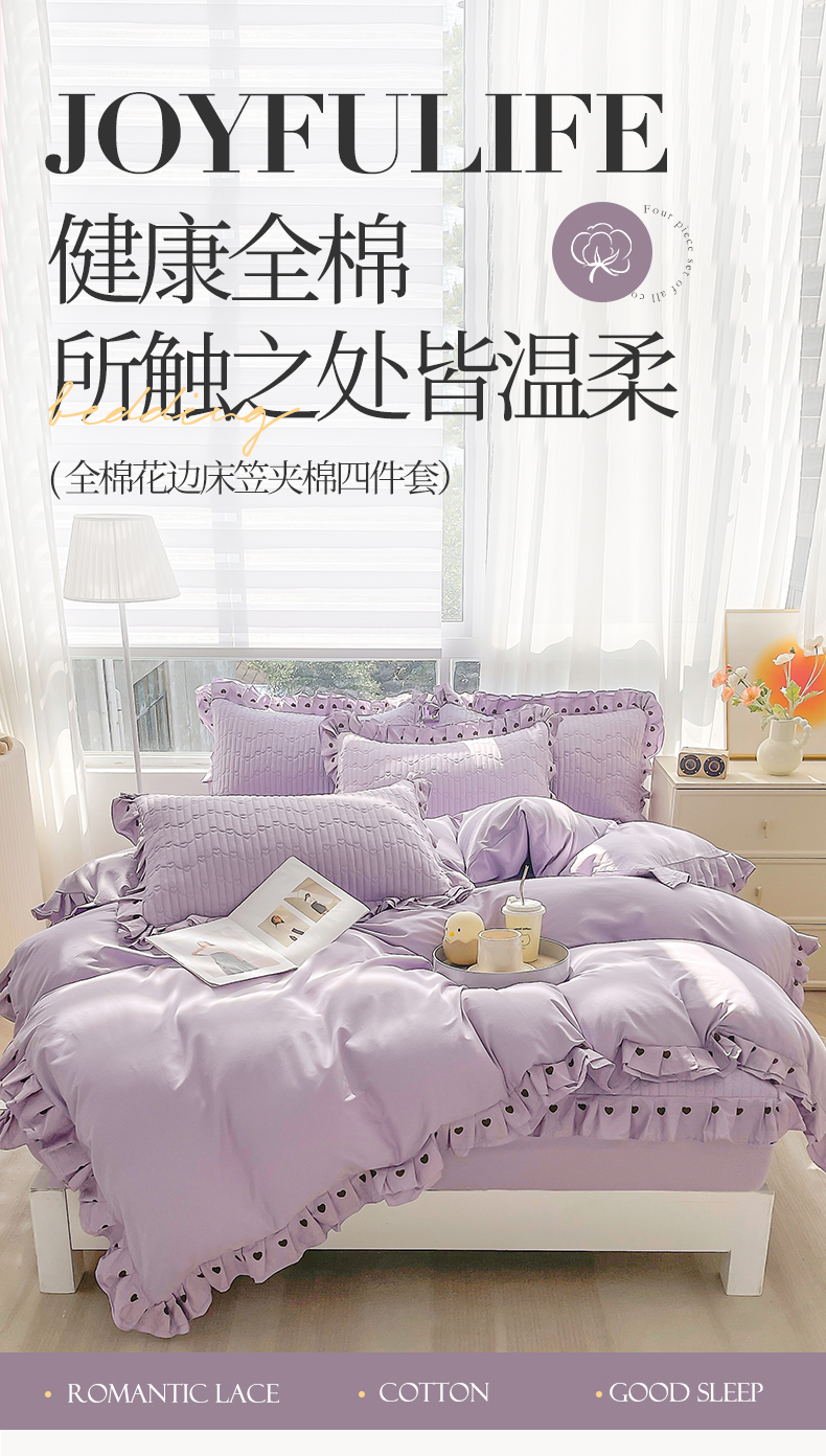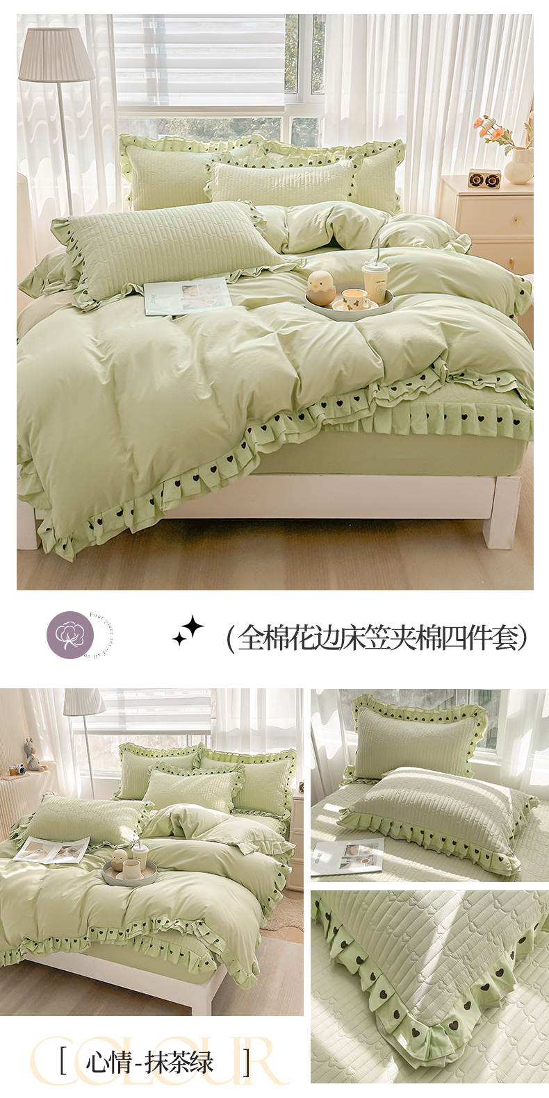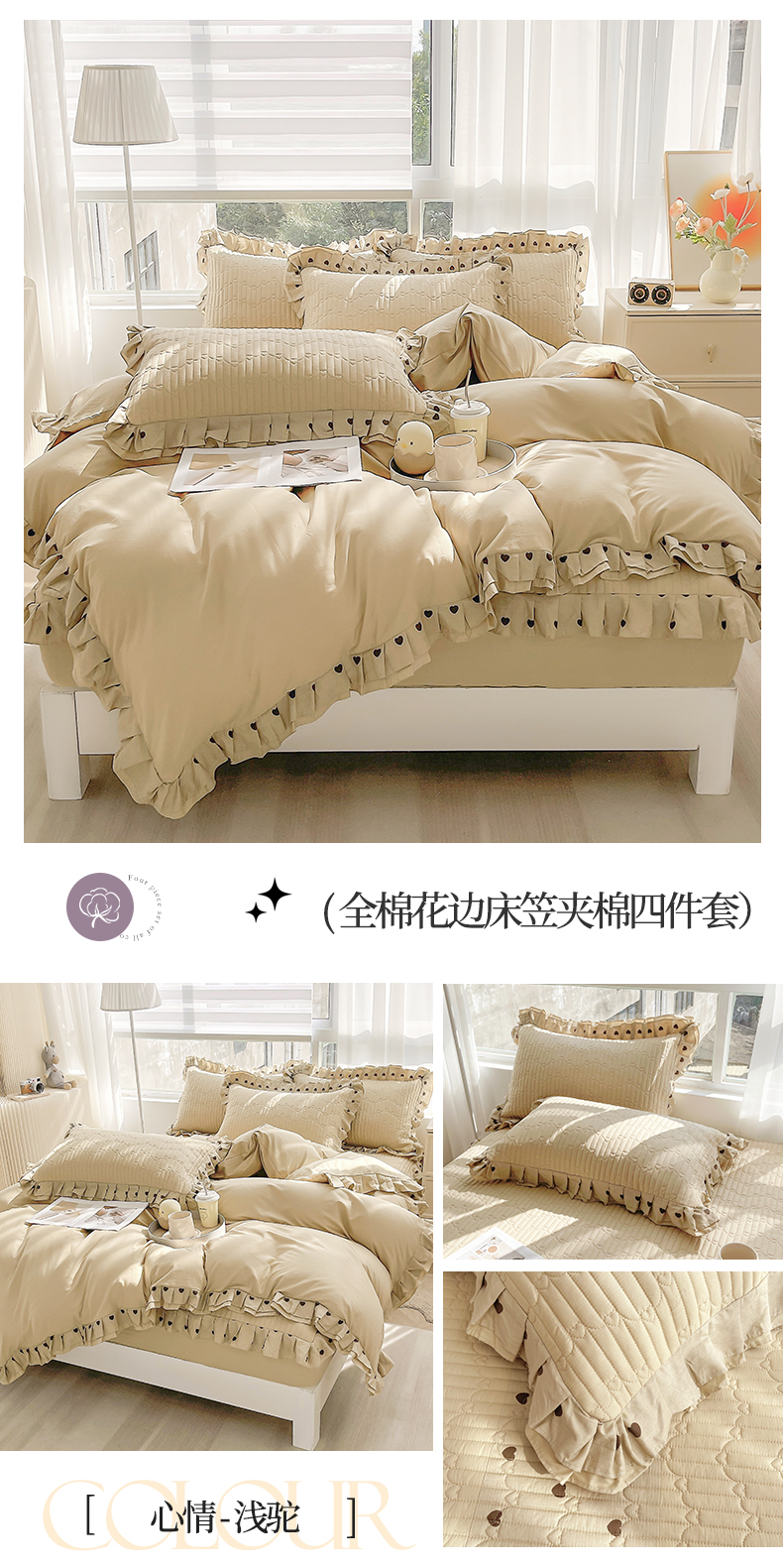 (总)宜凡家纺 2024新品全棉夹棉花边床笠四件套-心情