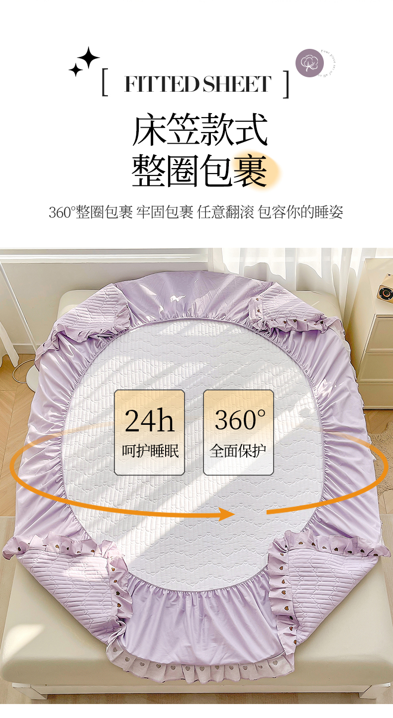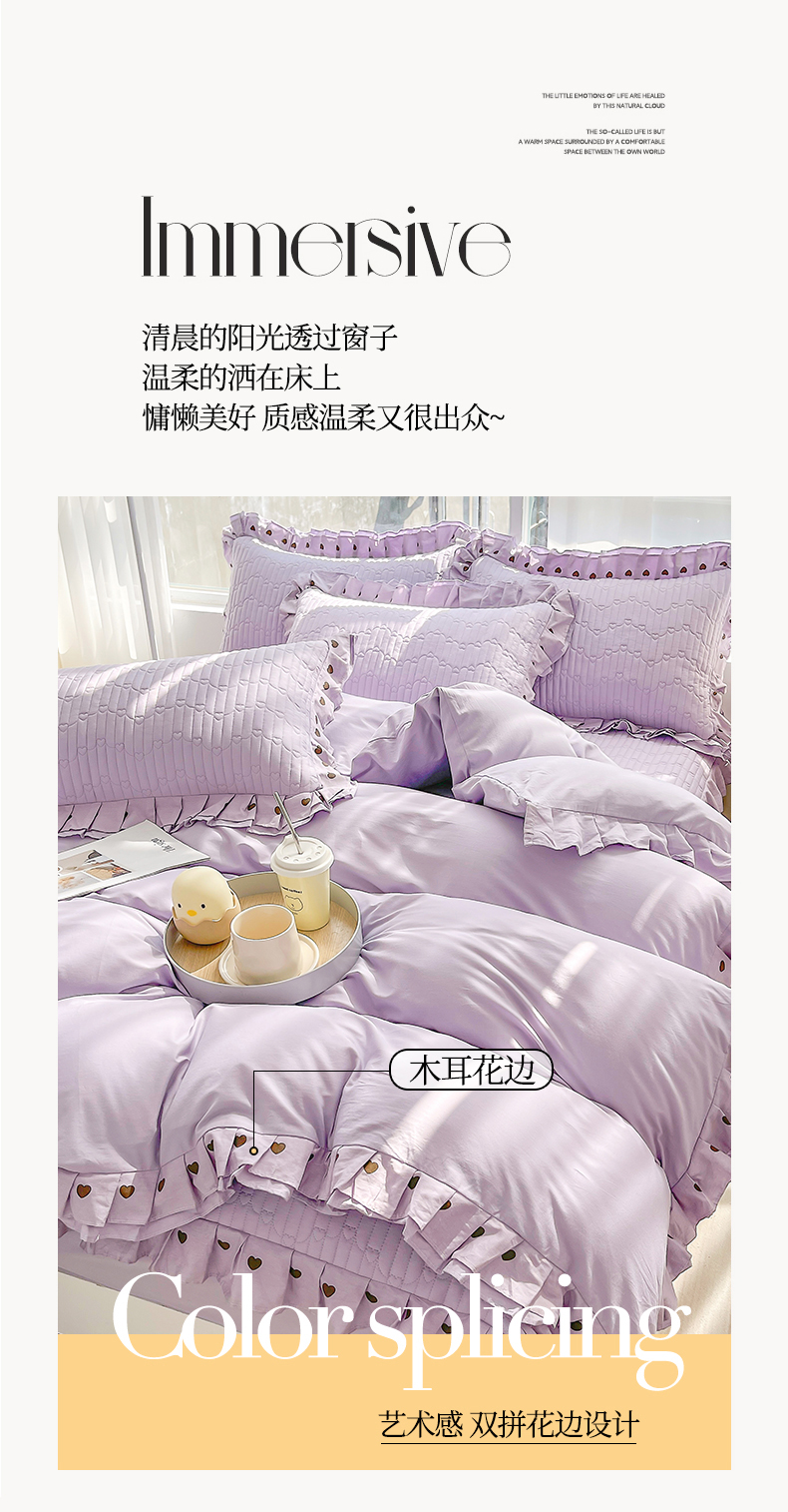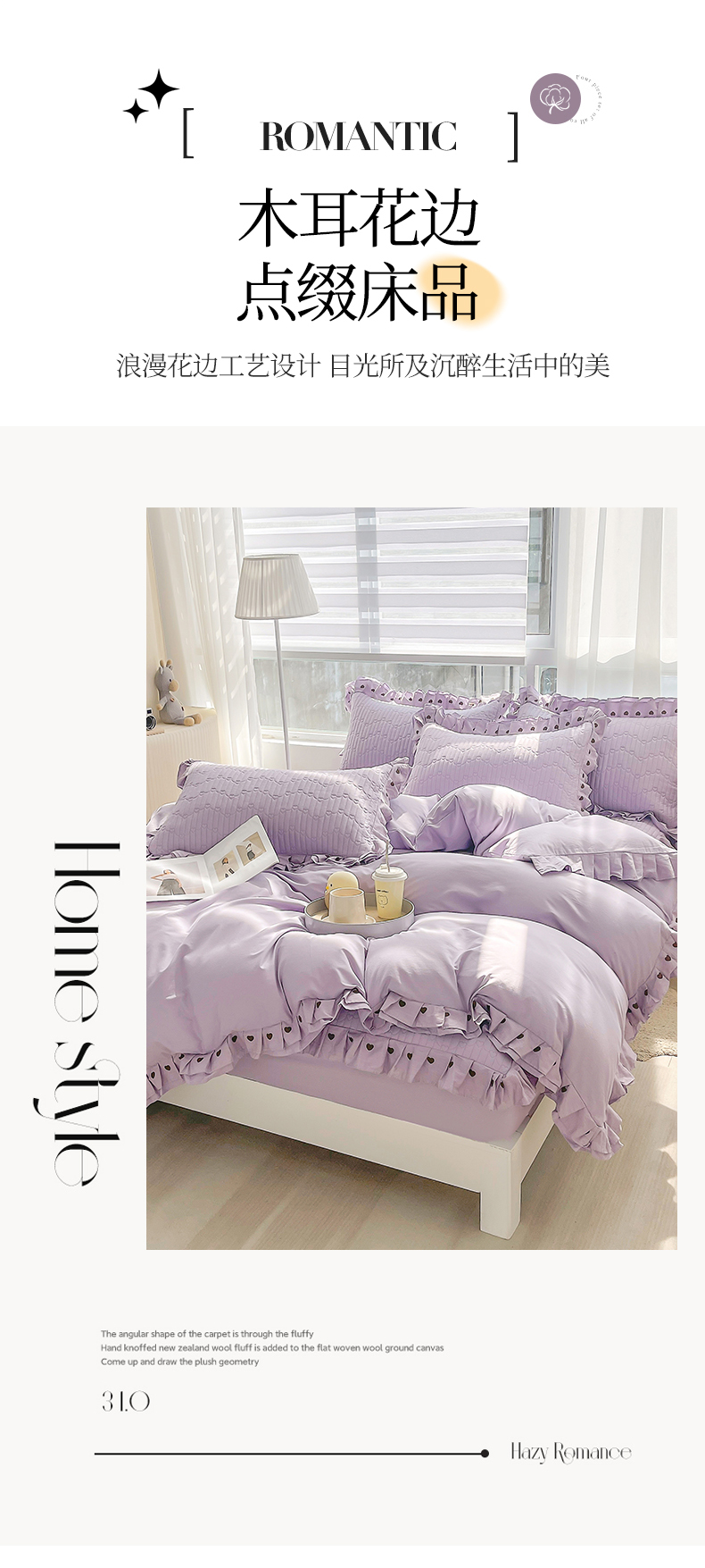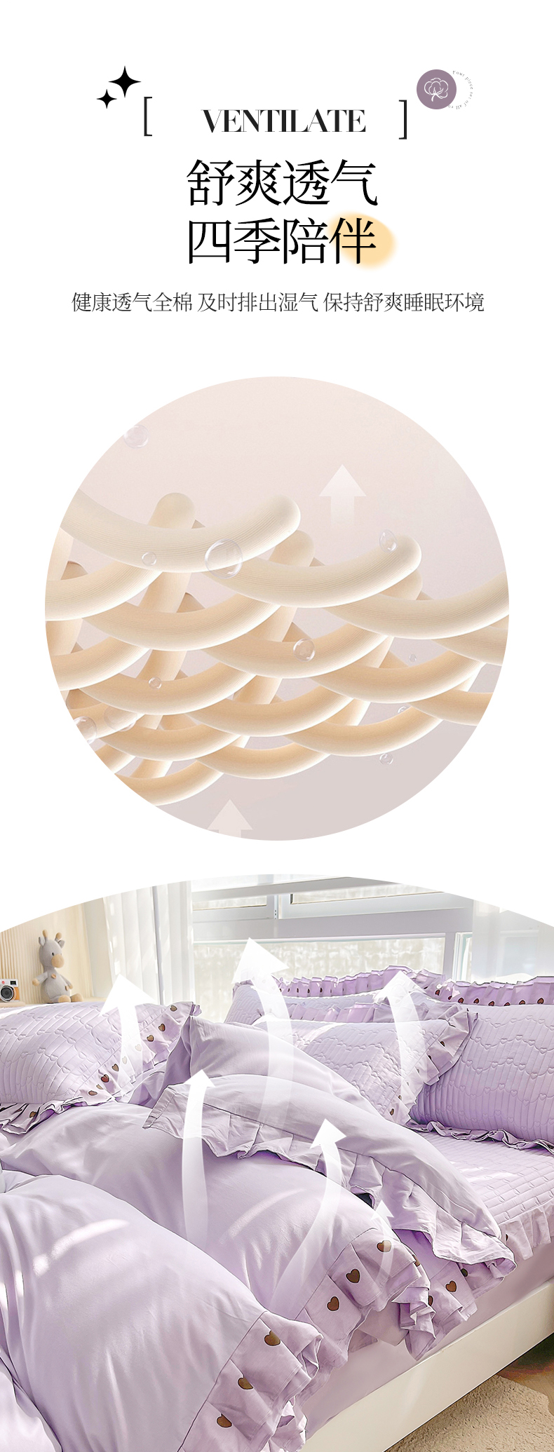(总)宜凡家纺 2024新品全棉夹棉花边床笠四件套-心情