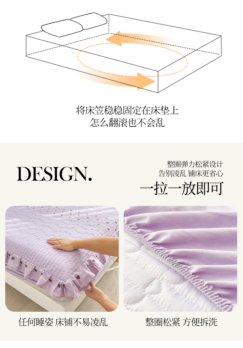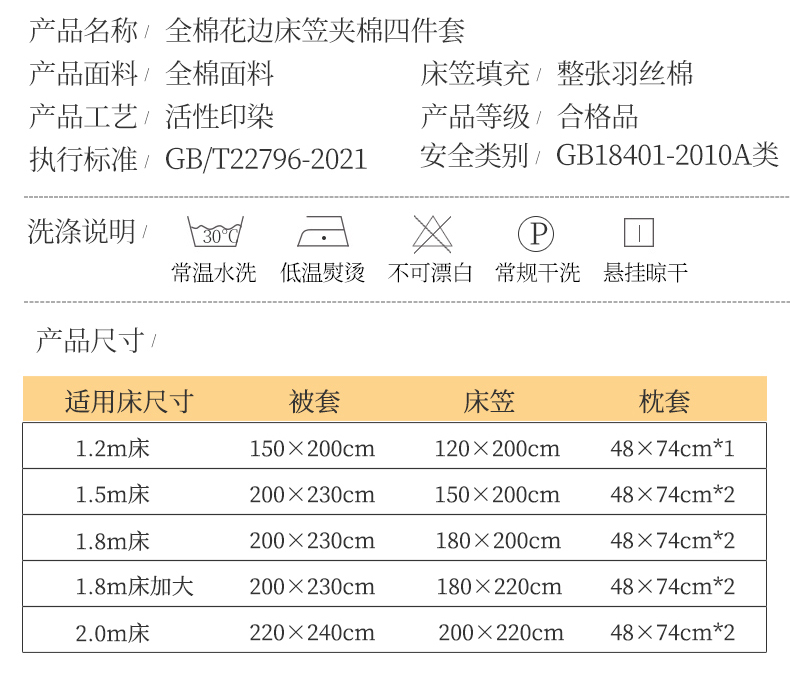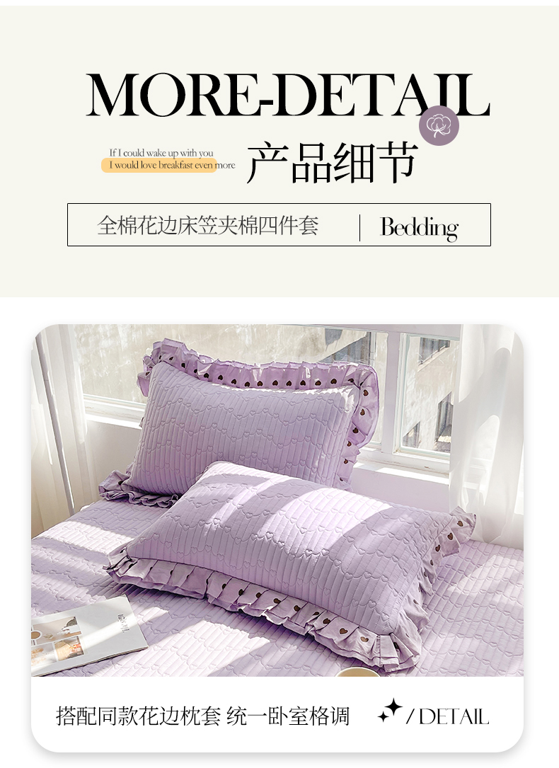 商品名称:(总)宜凡家纺 2024新品全棉夹棉花边床笠四件套-心情