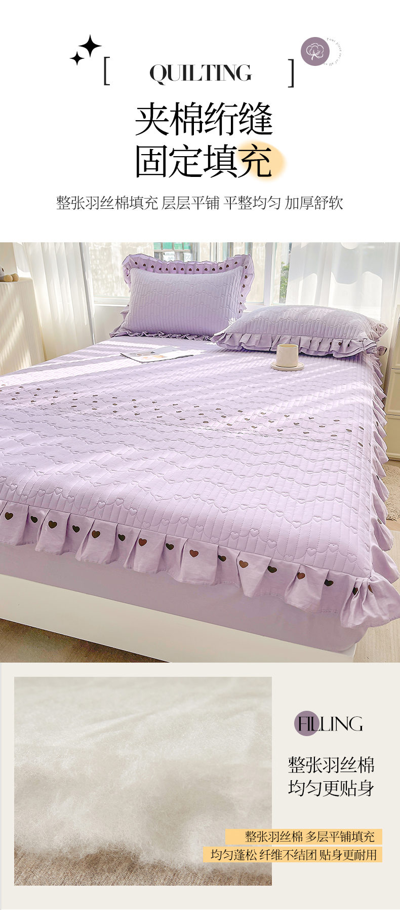 (总)宜凡家纺 2026新款全棉印花公主风夹棉床盖三件套,逐梦,假日,可颂,梦娜,木槿,乔屿