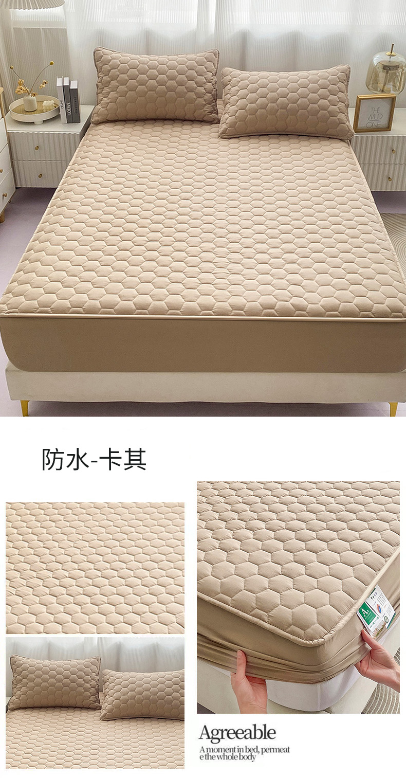 九亭家纺 2024新款A类抗菌全棉夹棉防水床笠 防水-卡其