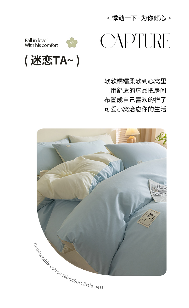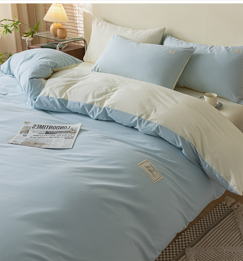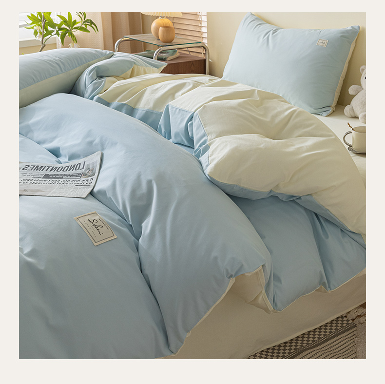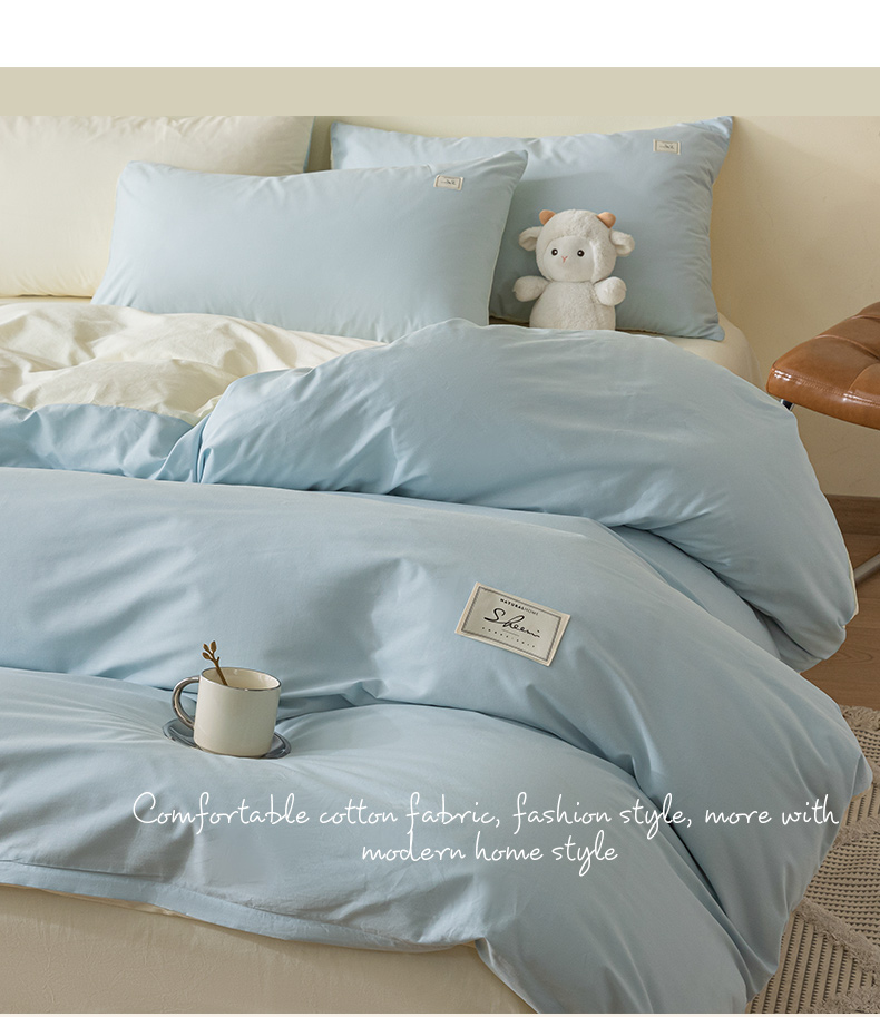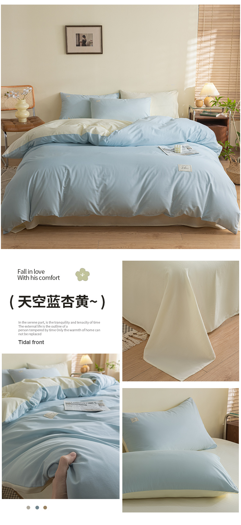 当前位置: 91家纺网 > 商品网购 > 床品套件 > 四件套 > 全棉普通四件套 > ab家纺 2024新款40支全棉双拼四件套 天空蓝杏黄