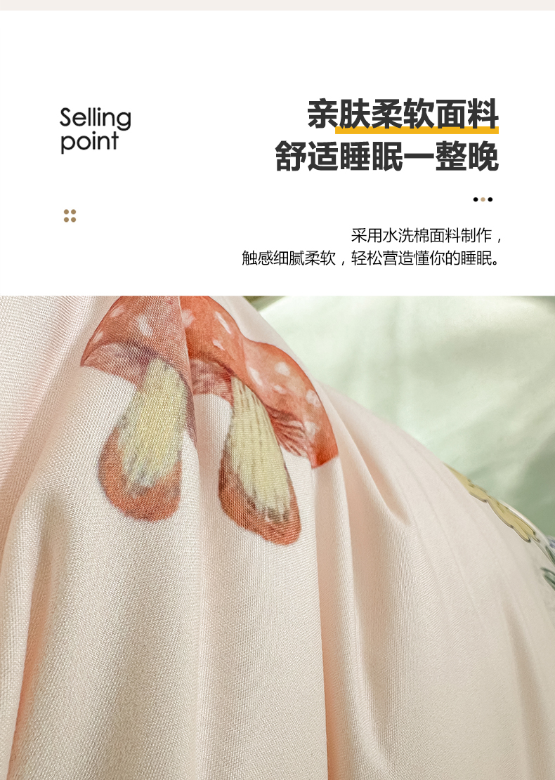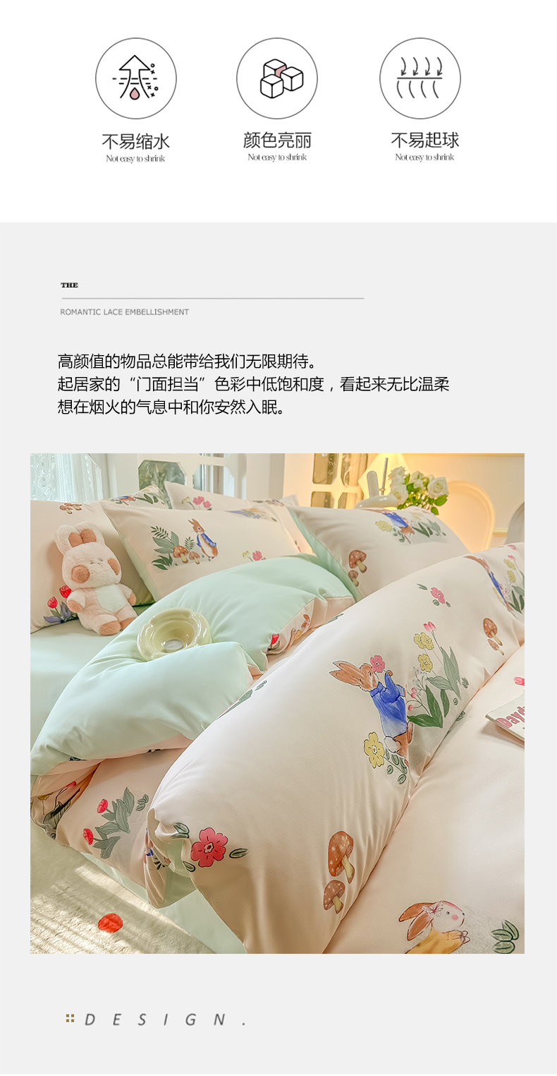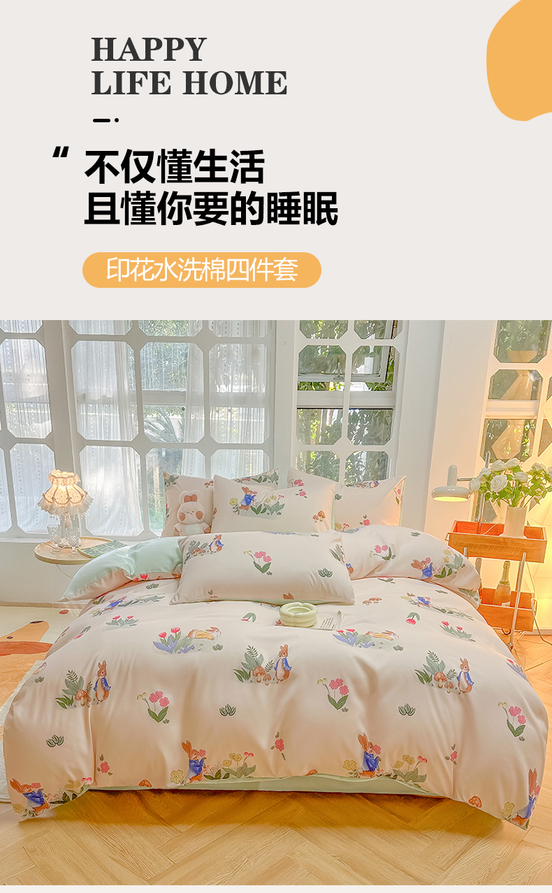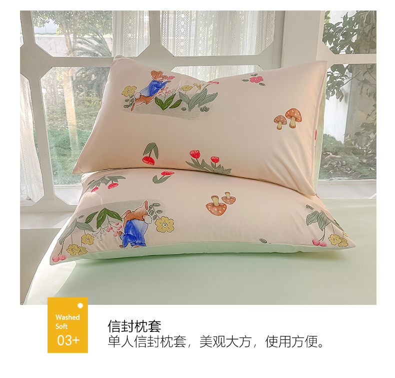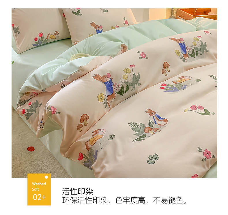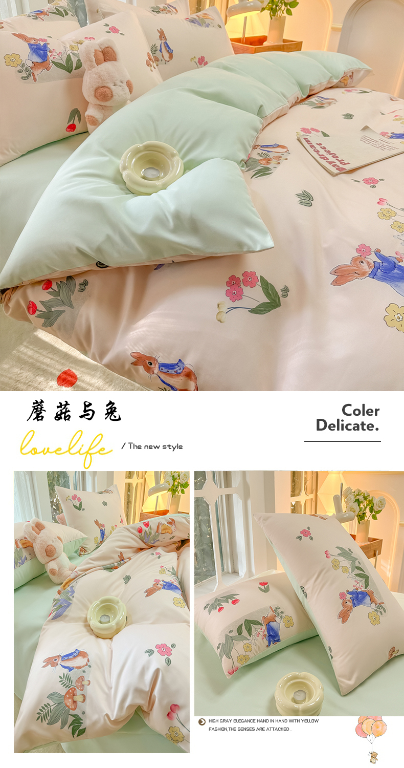 当前位置: 91家纺网 > 商品网购 > 床品套件 > 四件套 > 水洗棉四件套 > yyds网供 2024新款水洗棉印花卡通四件套花卉小清新单件被套 蘑菇与兔