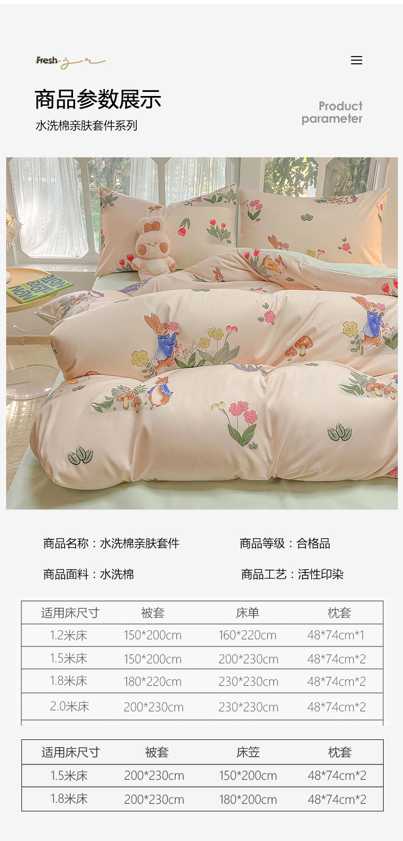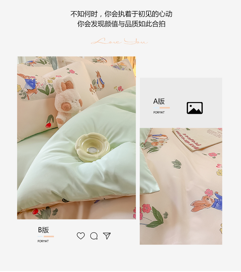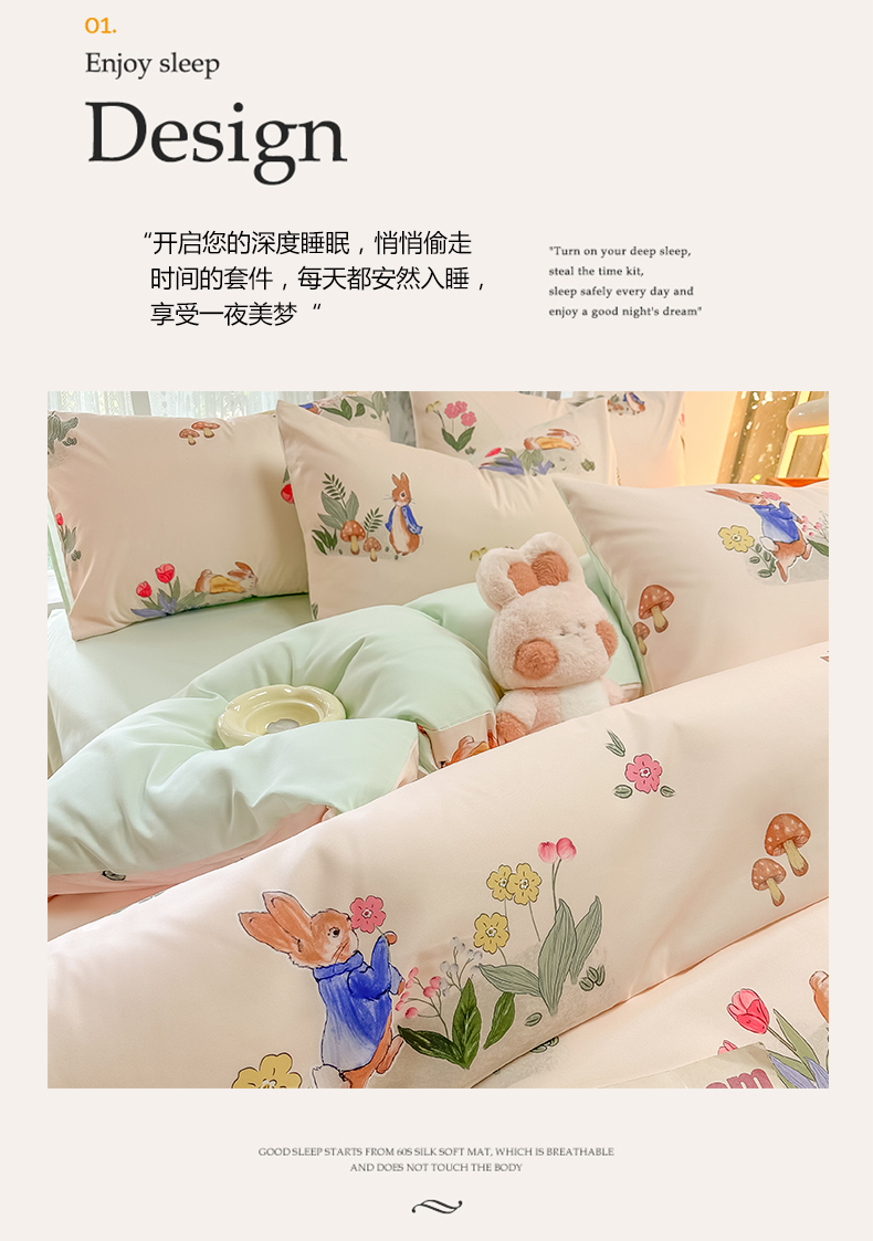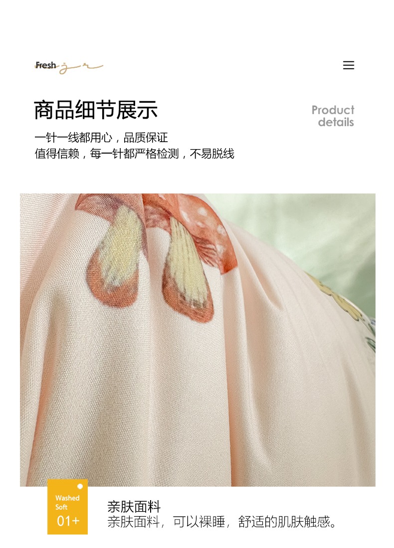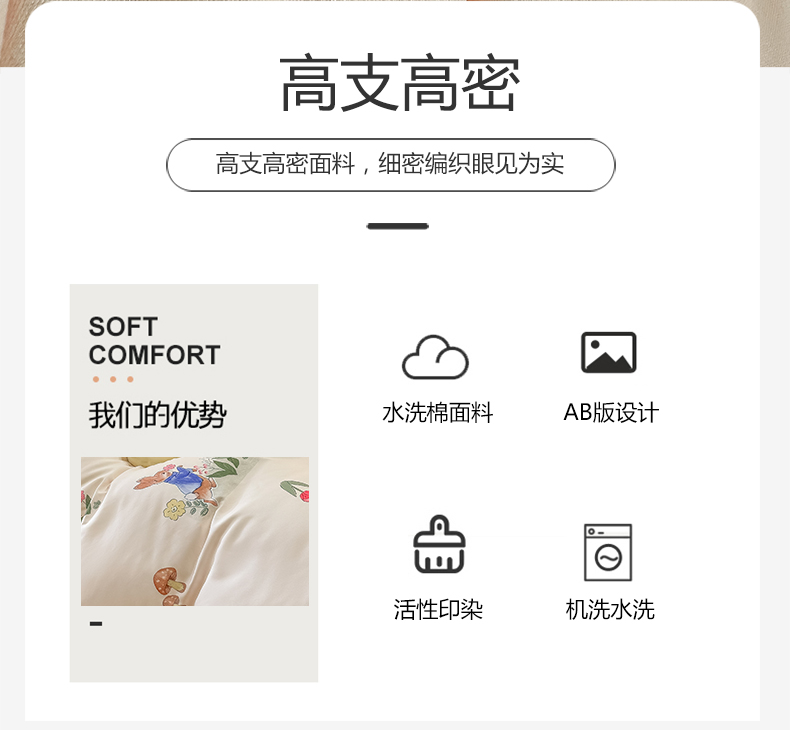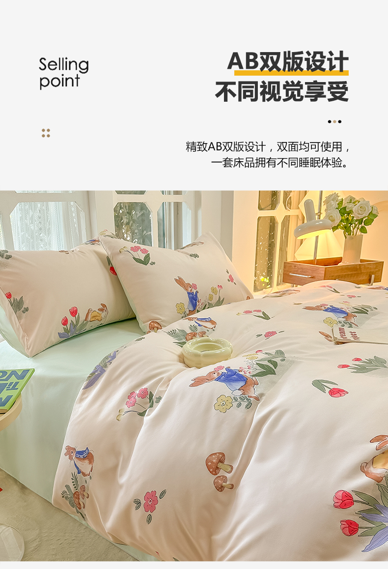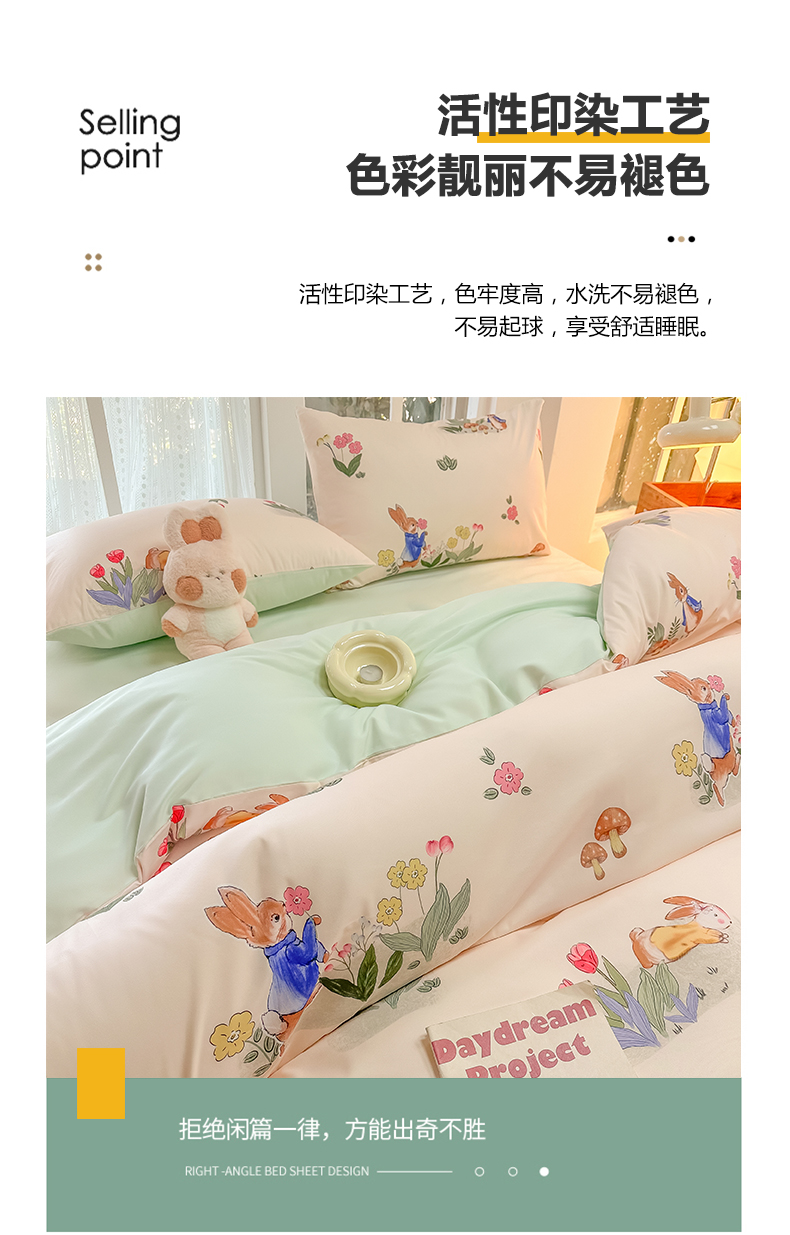 当前位置: 91家纺网 > 商品网购 > 床品套件 > 四件套 > 水洗棉四件套 > yyds网供 2024新款水洗棉印花卡通四件套花卉小清新单件被套 蘑菇与兔