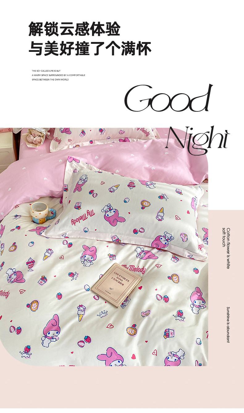 当前位置: 91家纺网 > 商品网购 > 床品套件 > 四件套 > 全棉普通四件套 > 锦润 2025新款三丽鸥正版授权系列印花全棉四件套草莓美乐蒂