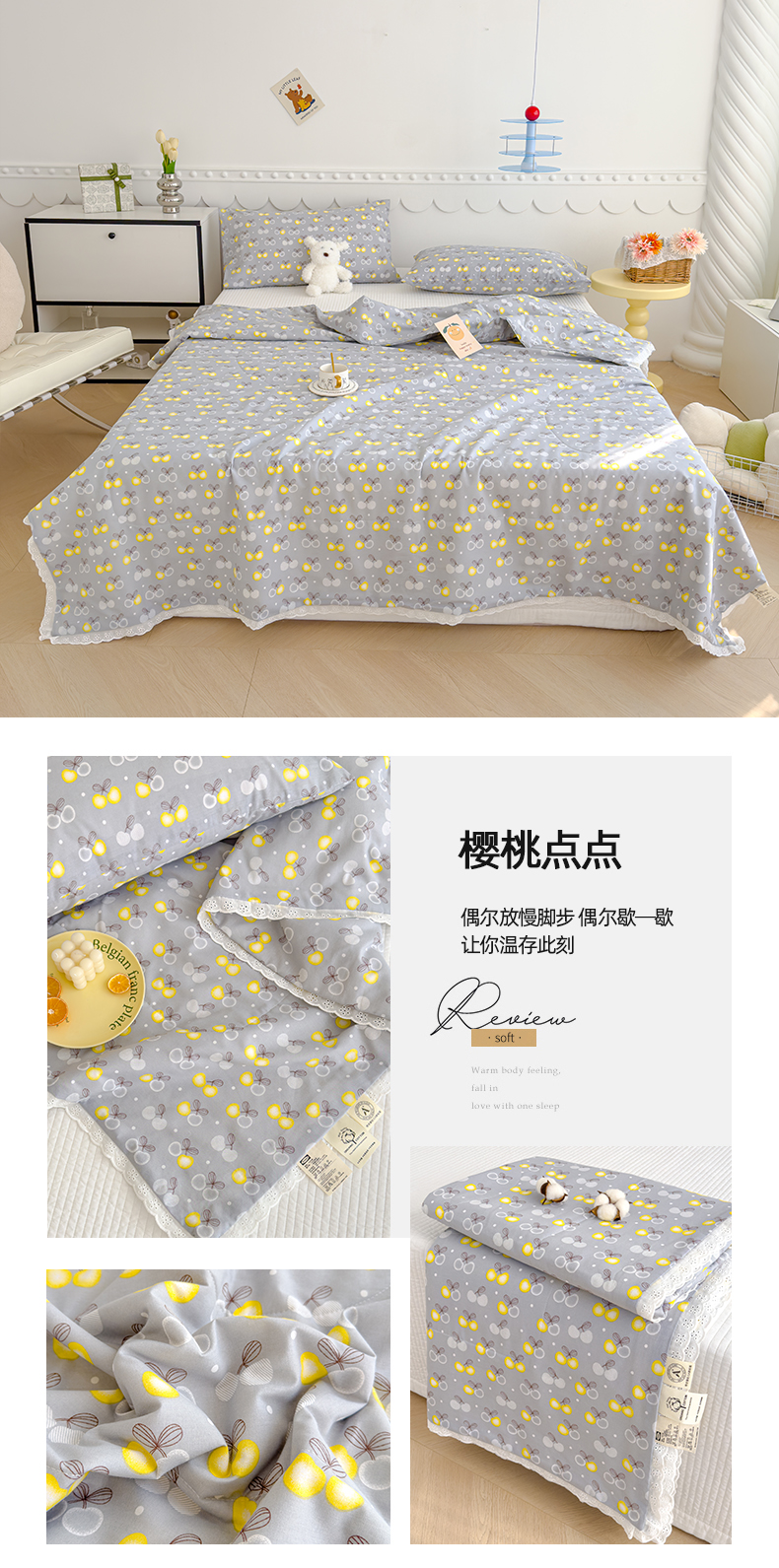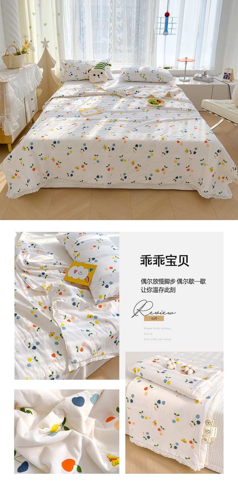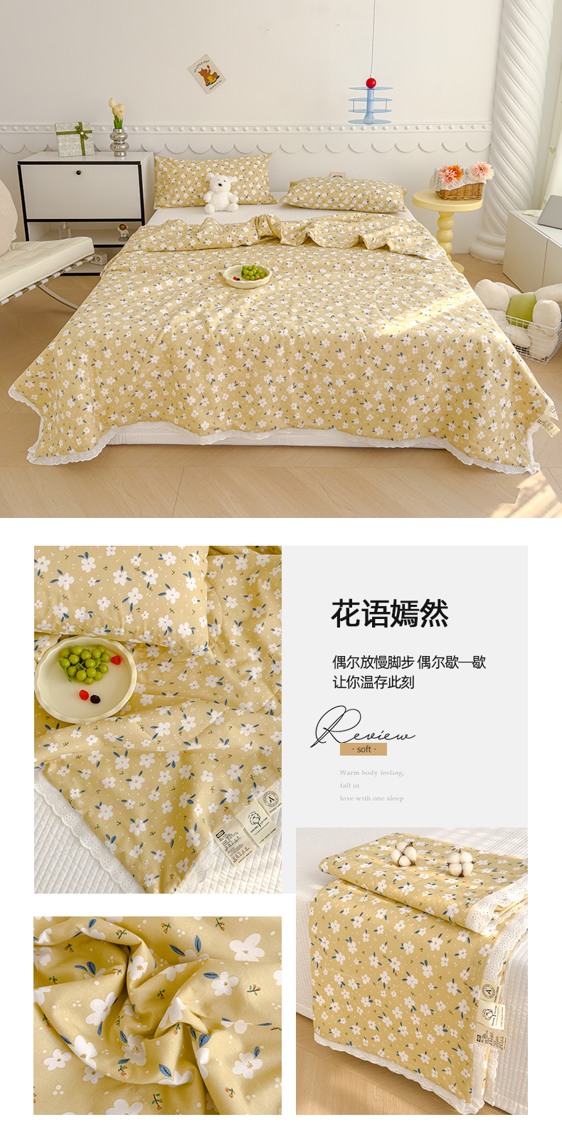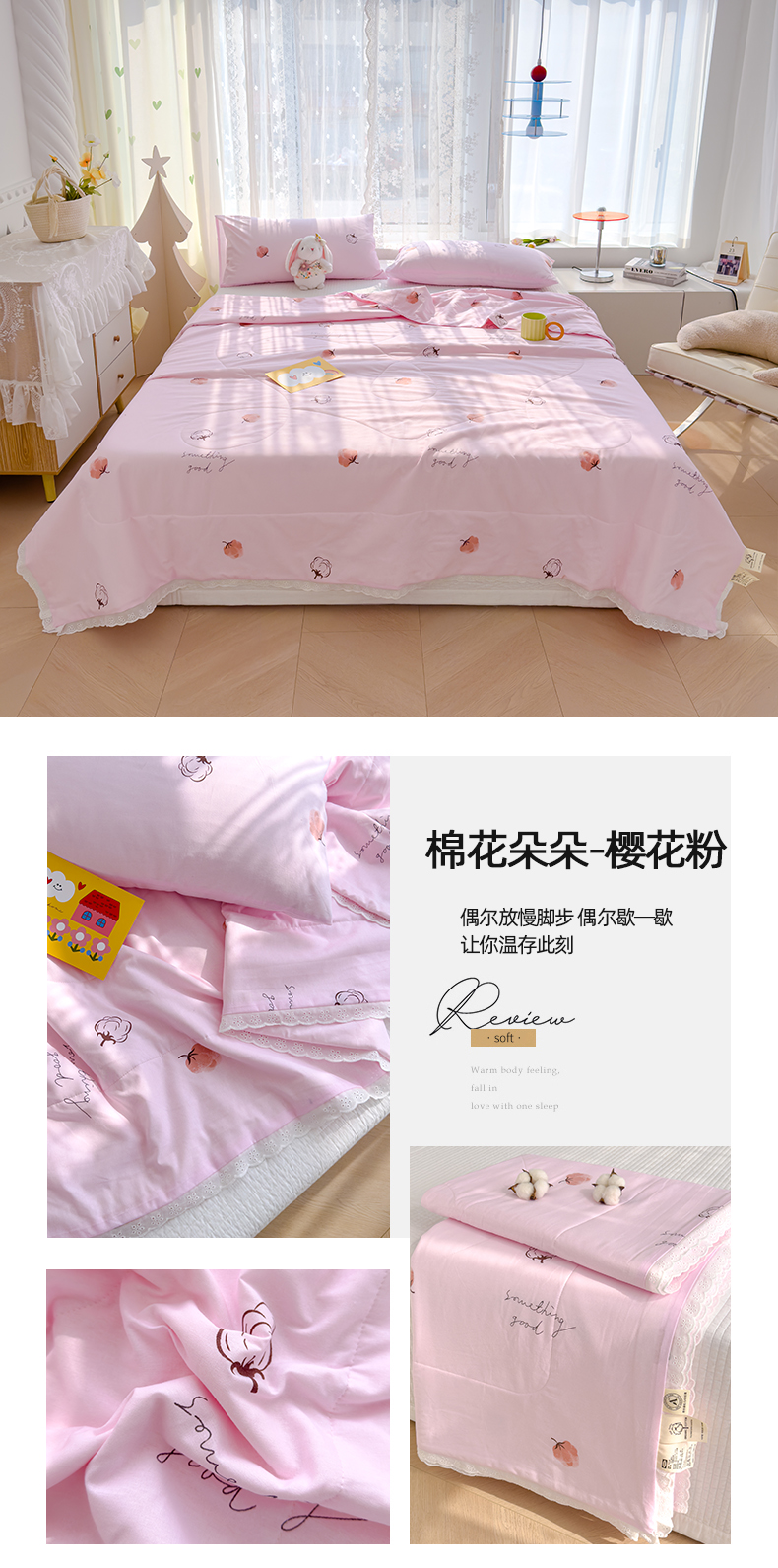 商品名称:(总)芯恋家居 2025新品全棉绣花边工艺款全棉纱布棉花夏被春秋被