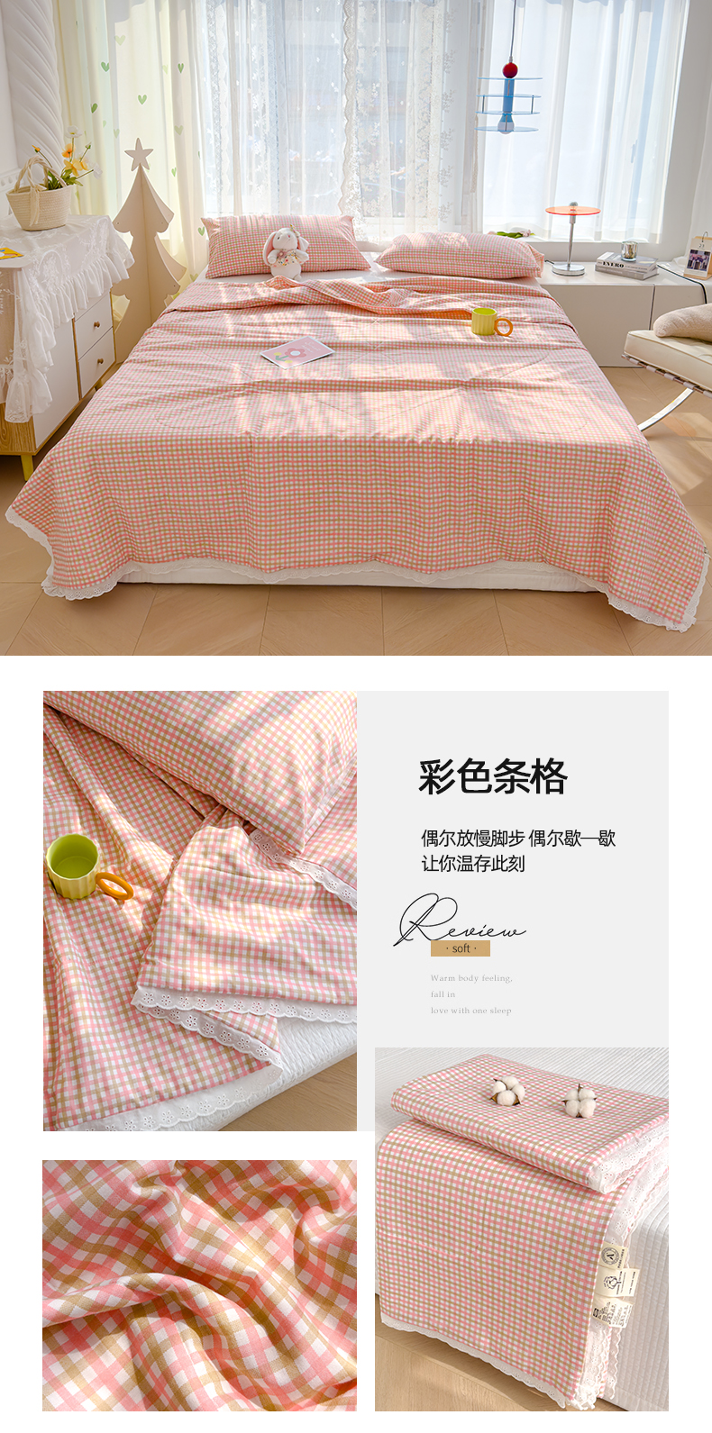 (总)芯恋家居 2025新品全棉绣花边工艺款全棉纱布棉花夏被春秋被