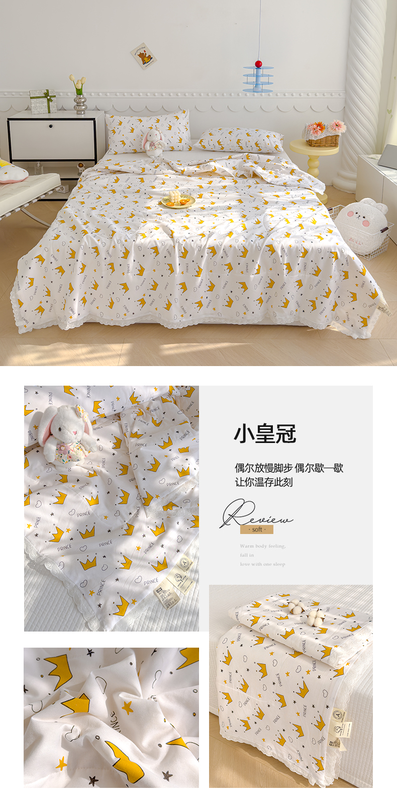 • 91家纺网 家纺一手货源 找家纺 芯恋家居 2025新品全棉绣花边工艺款全棉棉花夏被春秋被 小皇冠