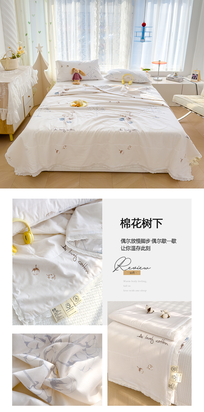 • 91家纺网 家纺一手货源 找家纺 芯恋家居 2025新品全棉绣花边工艺款全棉棉花夏被春秋被 棉花树下