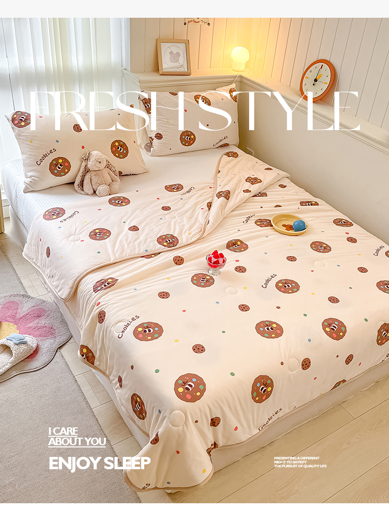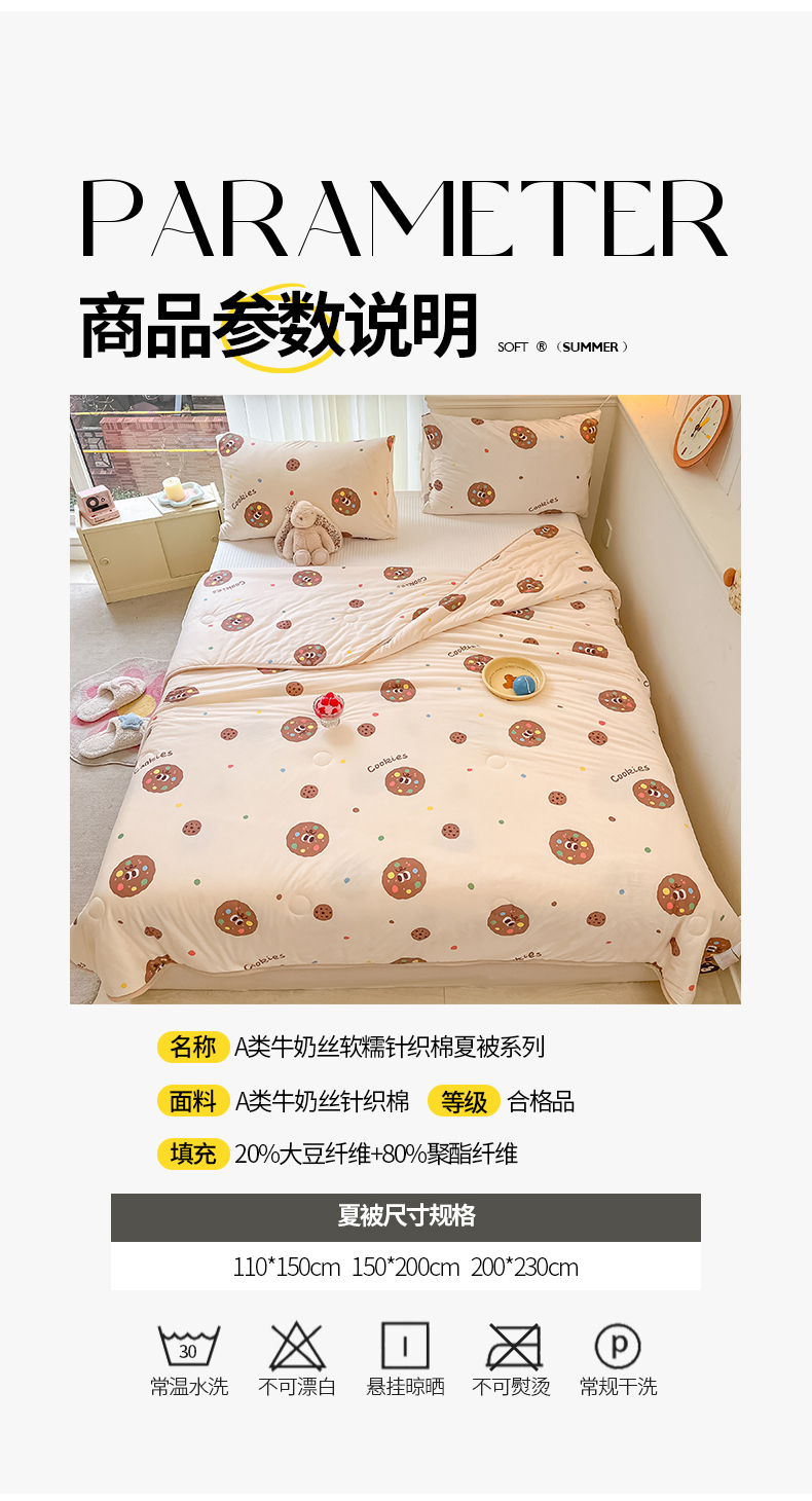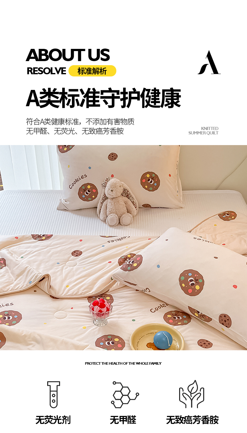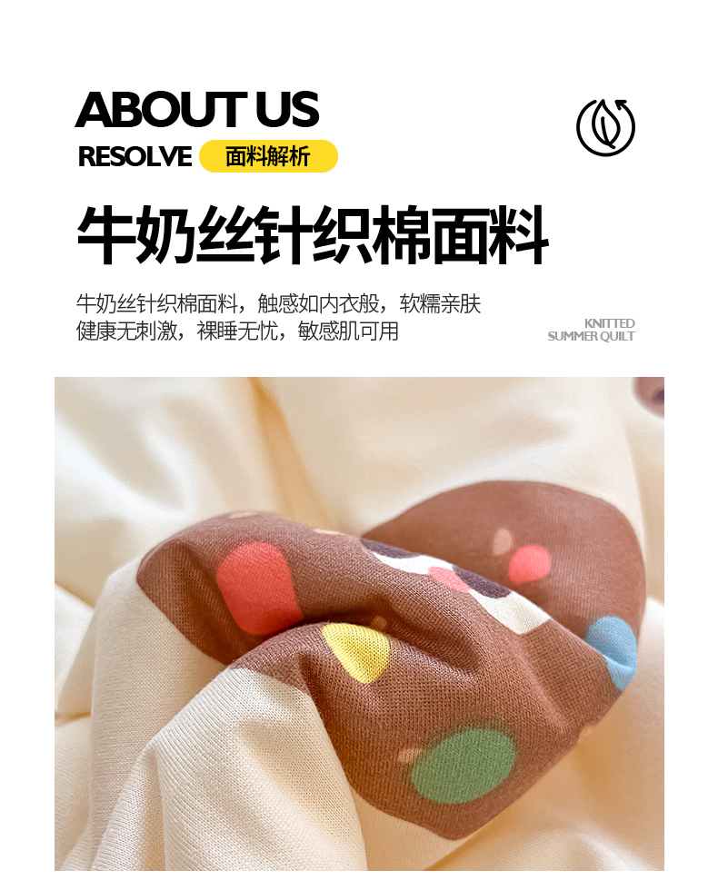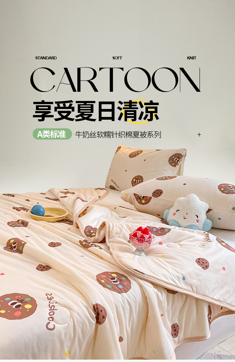商品名称:桃子家居 2024新款A类高品质牛奶丝软糯针织棉夏被 针织棉-趣多多